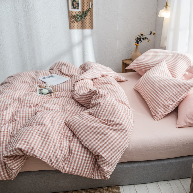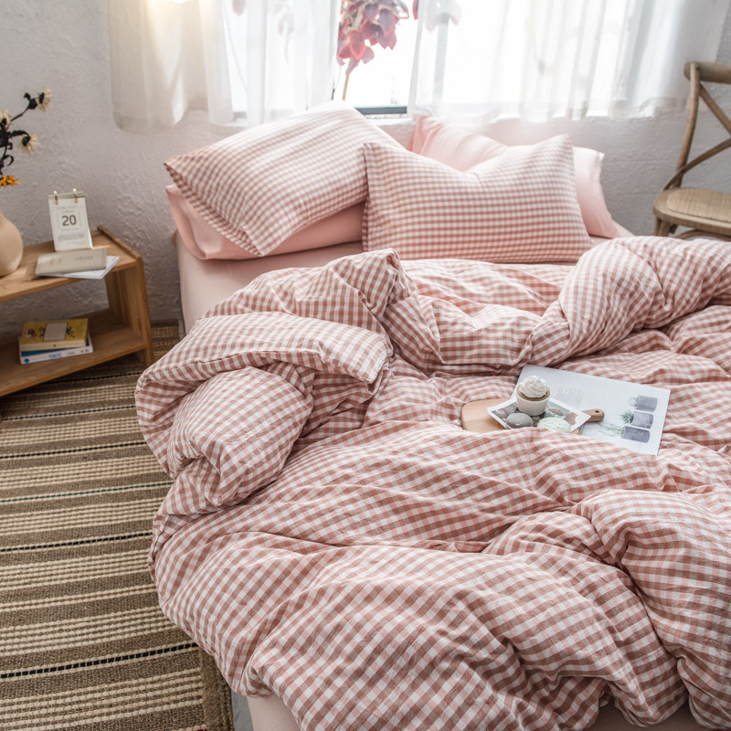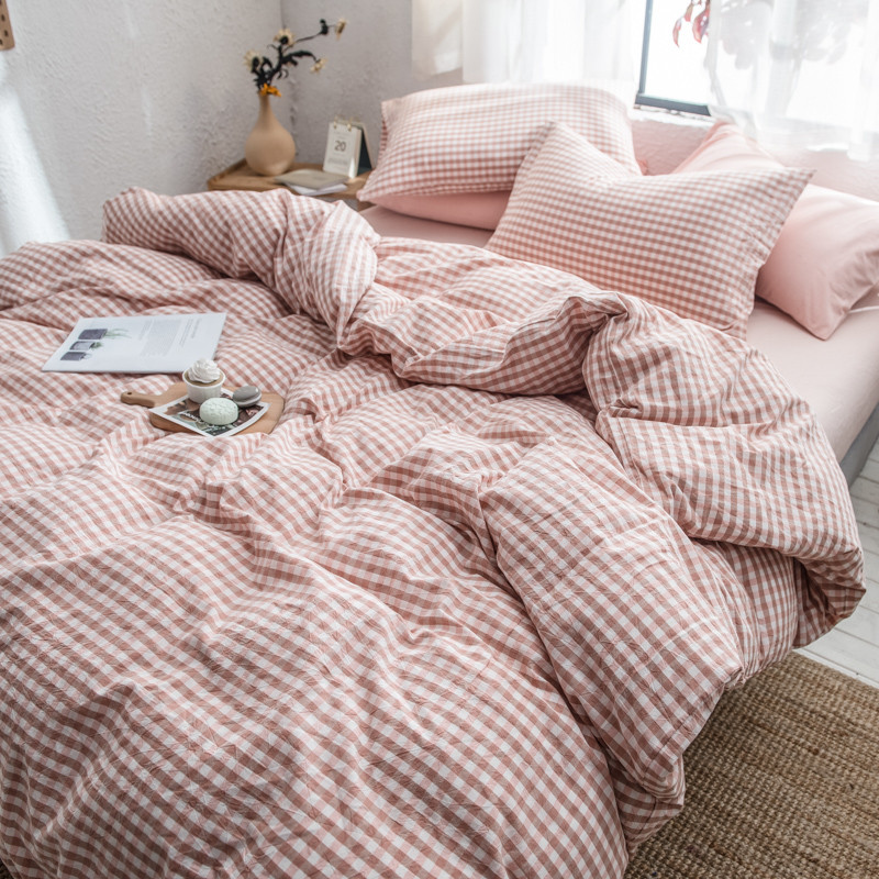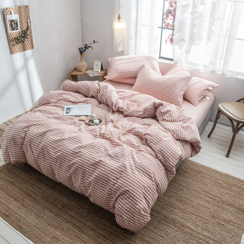 佳梦达 2020新款全色织全棉水洗双拼单床单 蜜粉小格