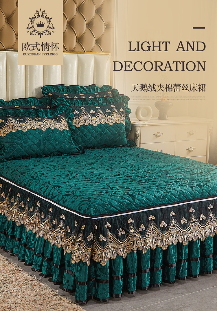 商品名称:网红馆 2025新款天鹅绒盛世佳人单品蕾丝床裙 翡翠