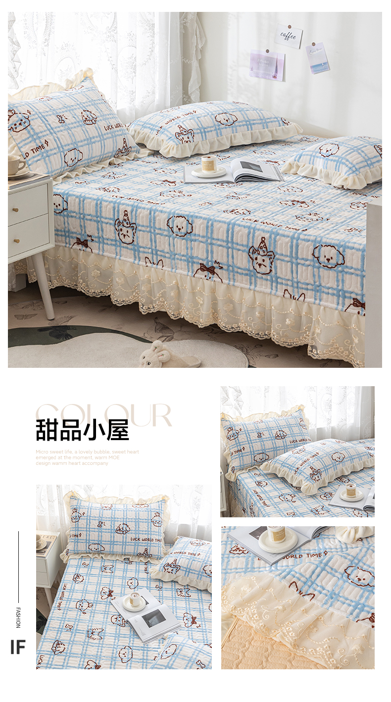 (总)美优兰 2025秋冬新款棉加绒床盖单品床盖三件套,棉加绒豆绿,棉加绒白色,棉加绒草绿,棉加绒粉色,棉加绒灰色,棉加绒蓝色,棉加绒米黄,棉加绒浅咖