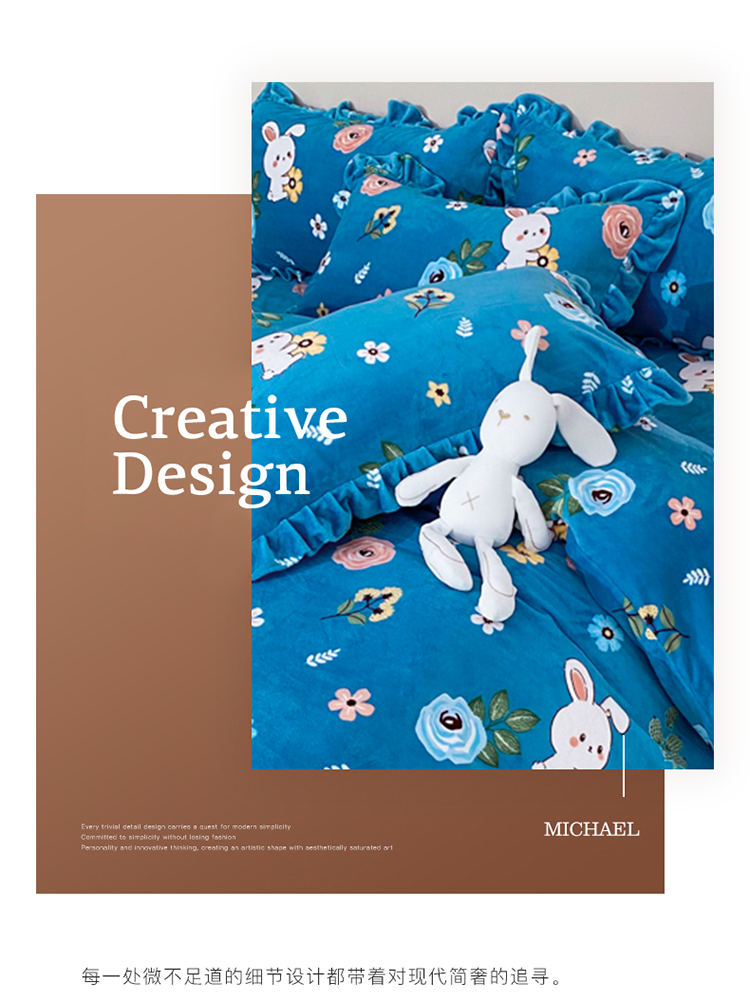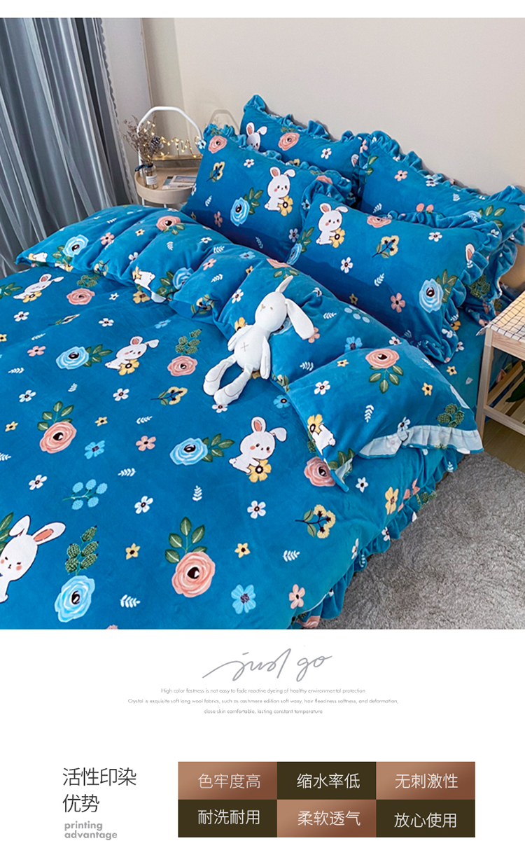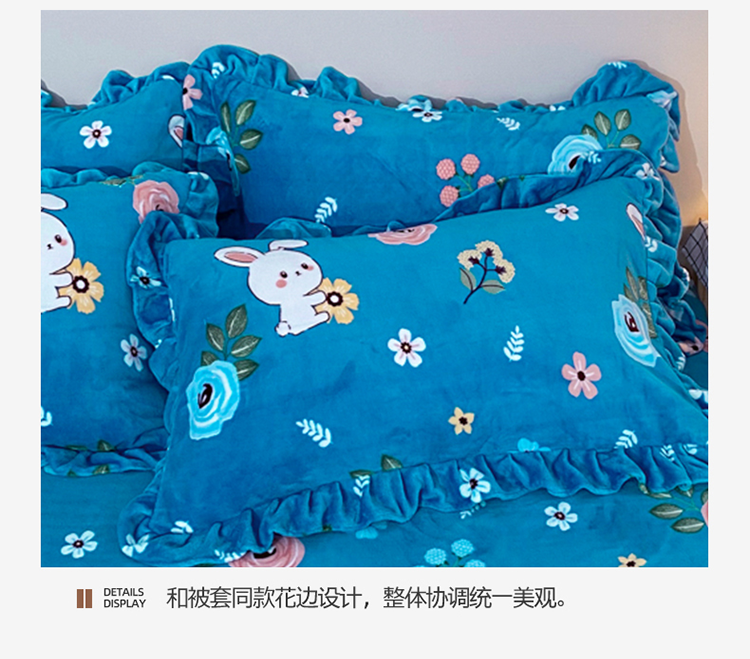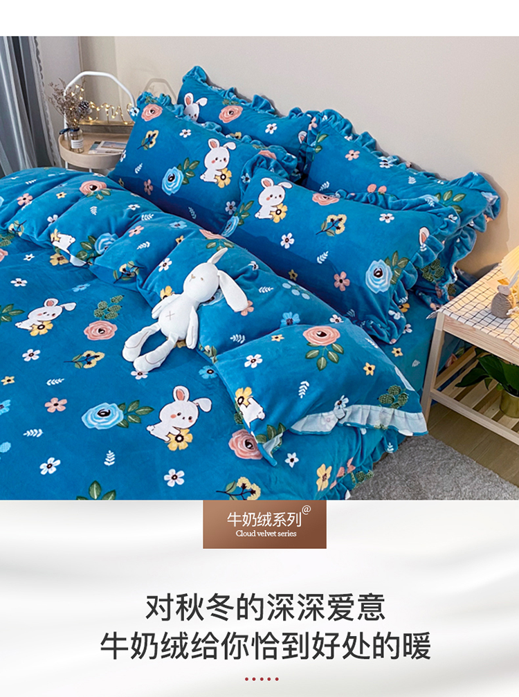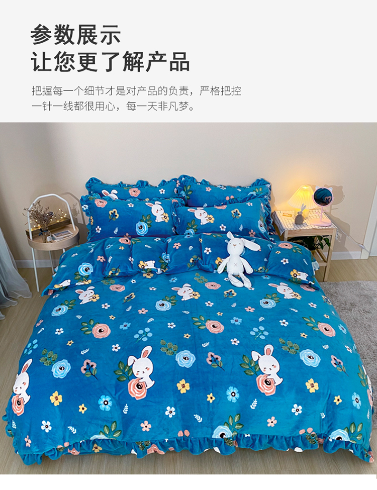商品名称:妖妖家纺 2020新款花边牛奶绒四件套 兔子蓝蓝