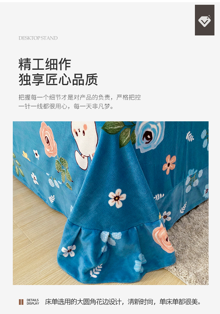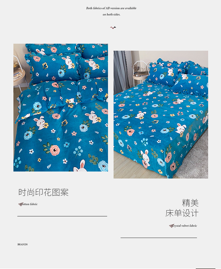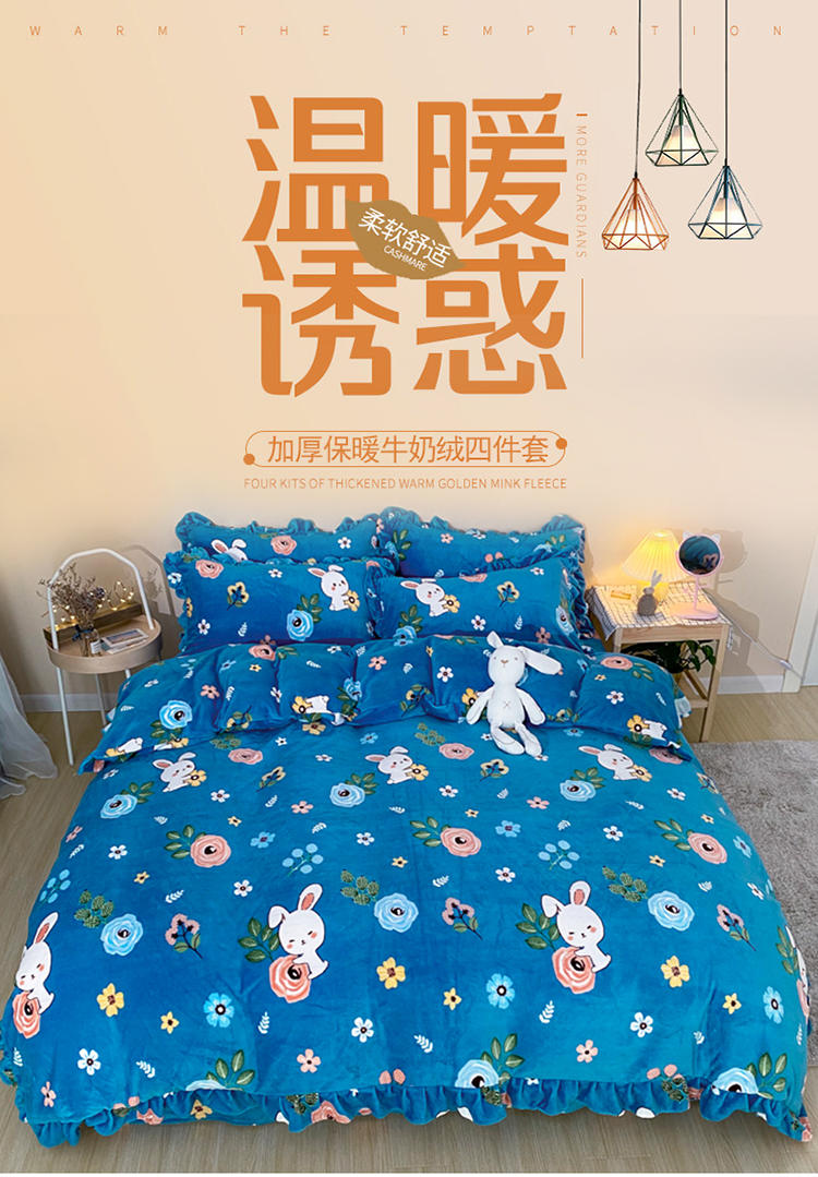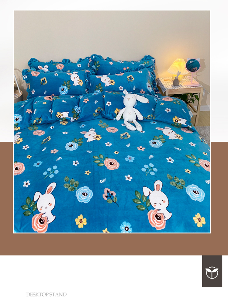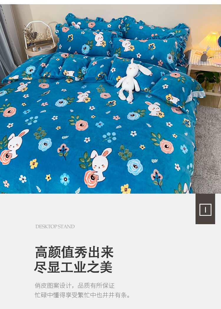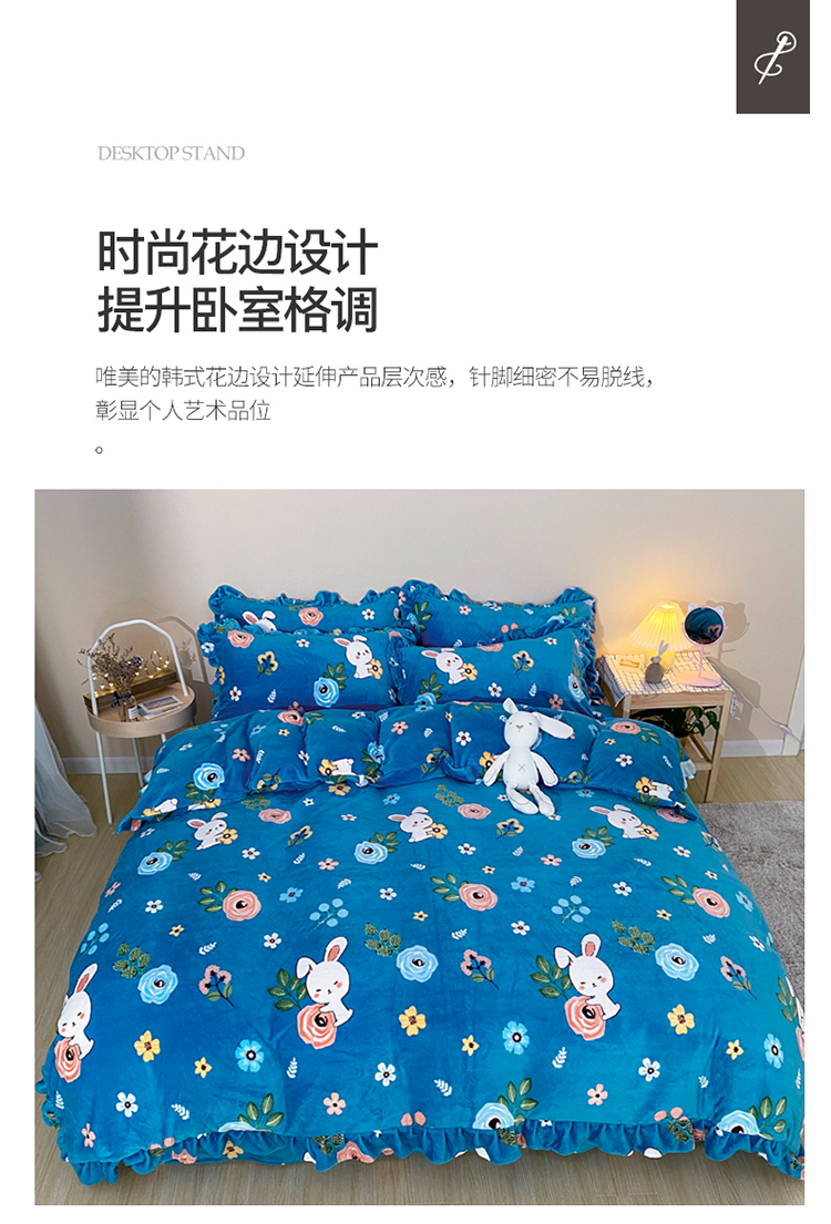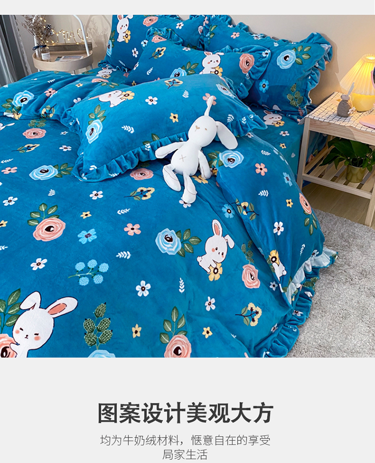 妖妖家纺 2020新款花边牛奶绒四件套 兔子蓝蓝