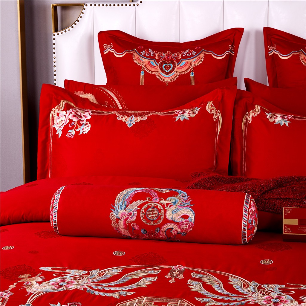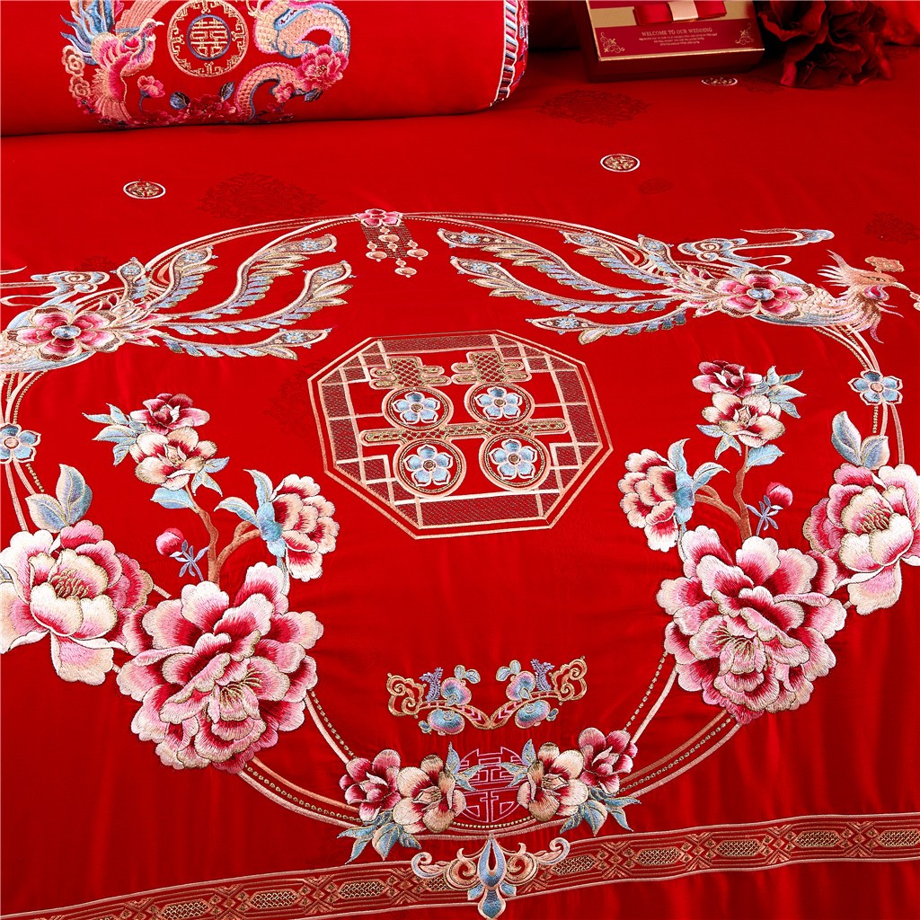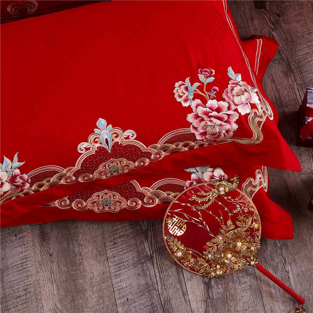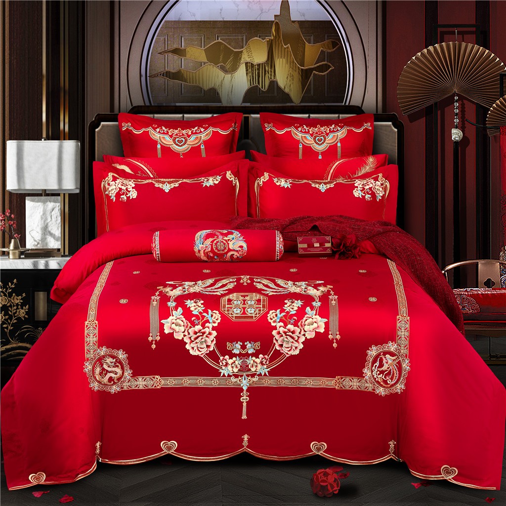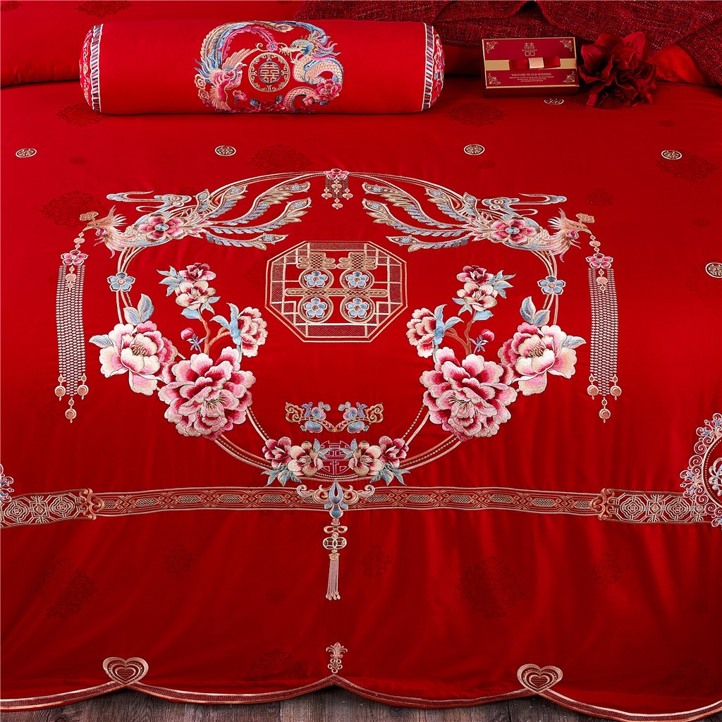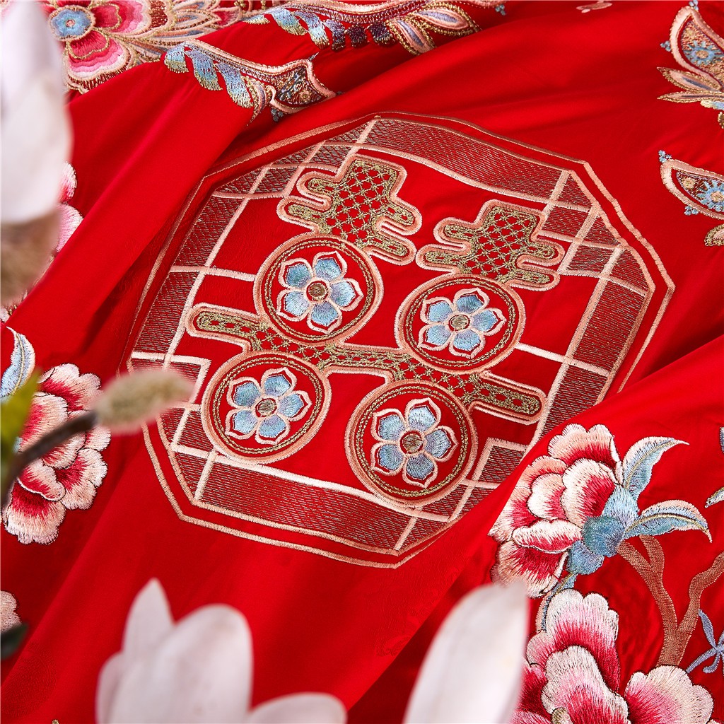 当前位置: 91家纺网 > 商品网购 > 床品套件 > 四件套 > 婚庆四件套 > 2025新120S全棉刺绣贡缎提花婚庆四件套多件套有情成眷