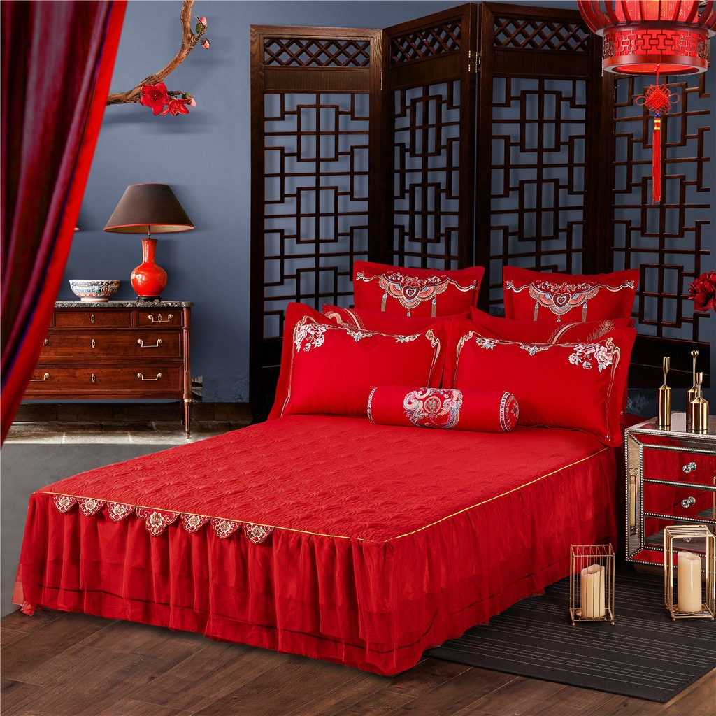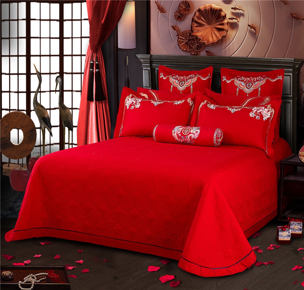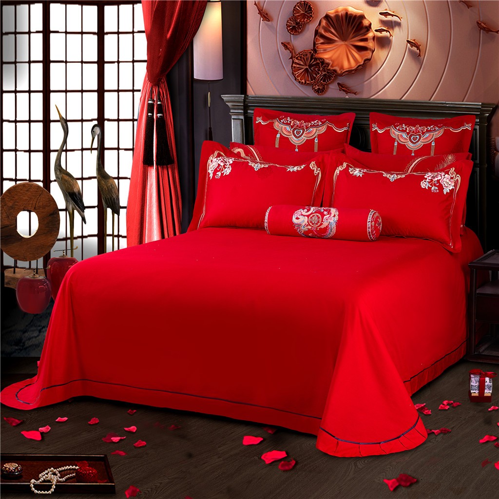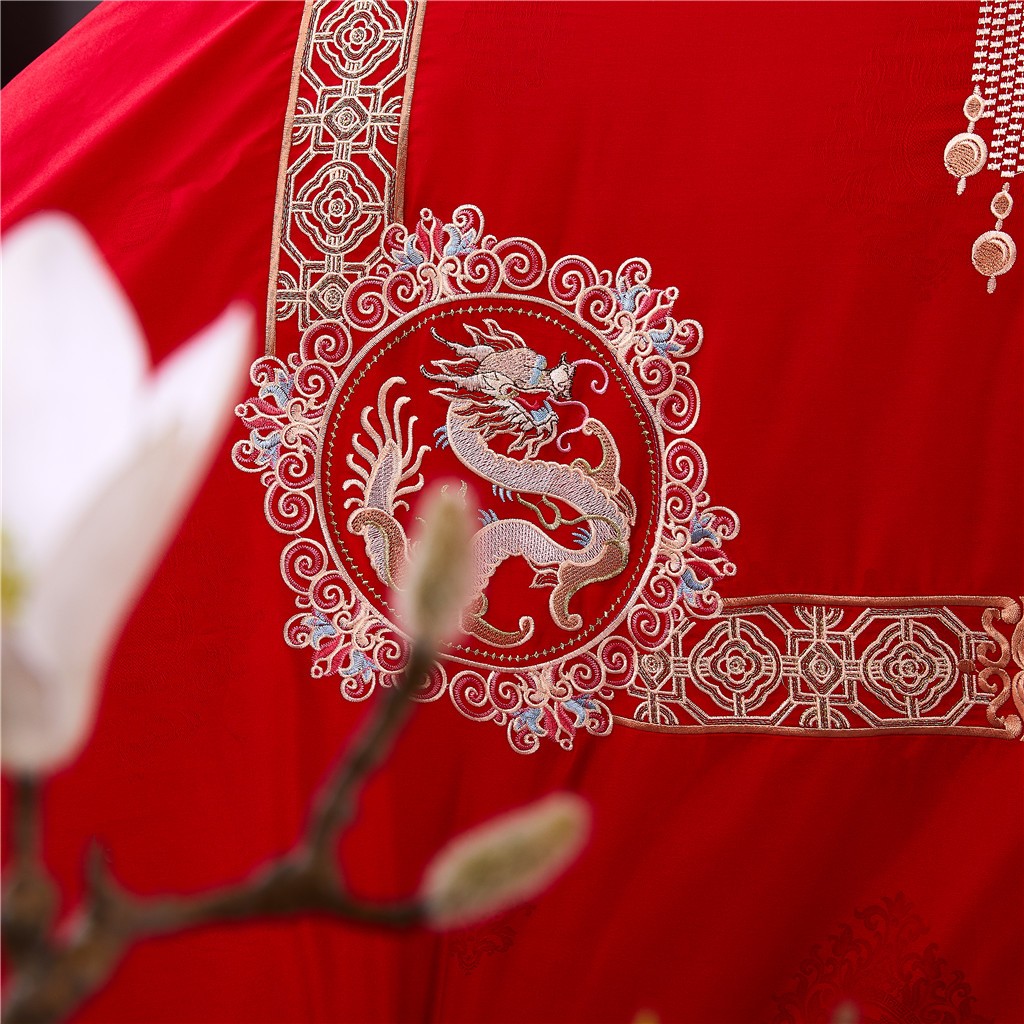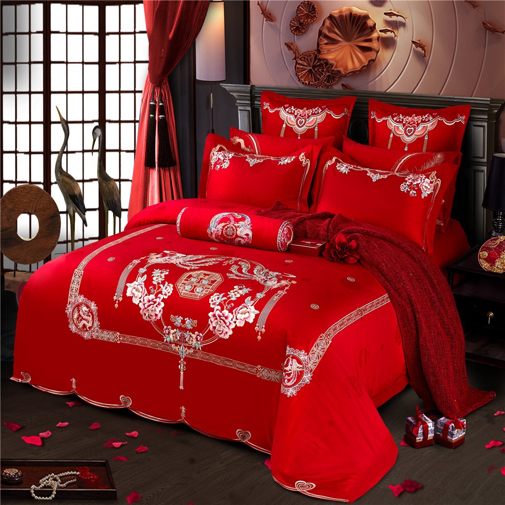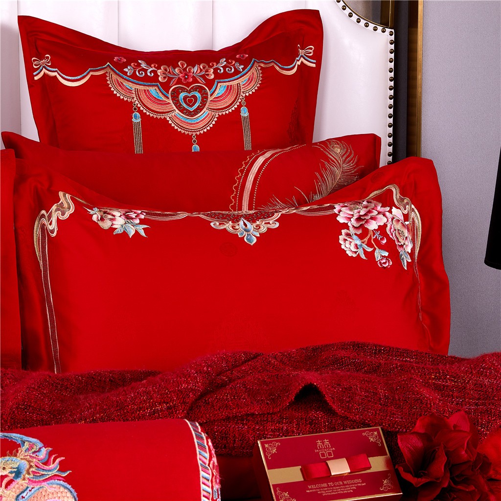 当前位置: 91家纺网 > 商品网购 > 床品套件 > 四件套 > 婚庆四件套 > 2025新120S全棉刺绣贡缎提花婚庆四件套多件套有情成眷