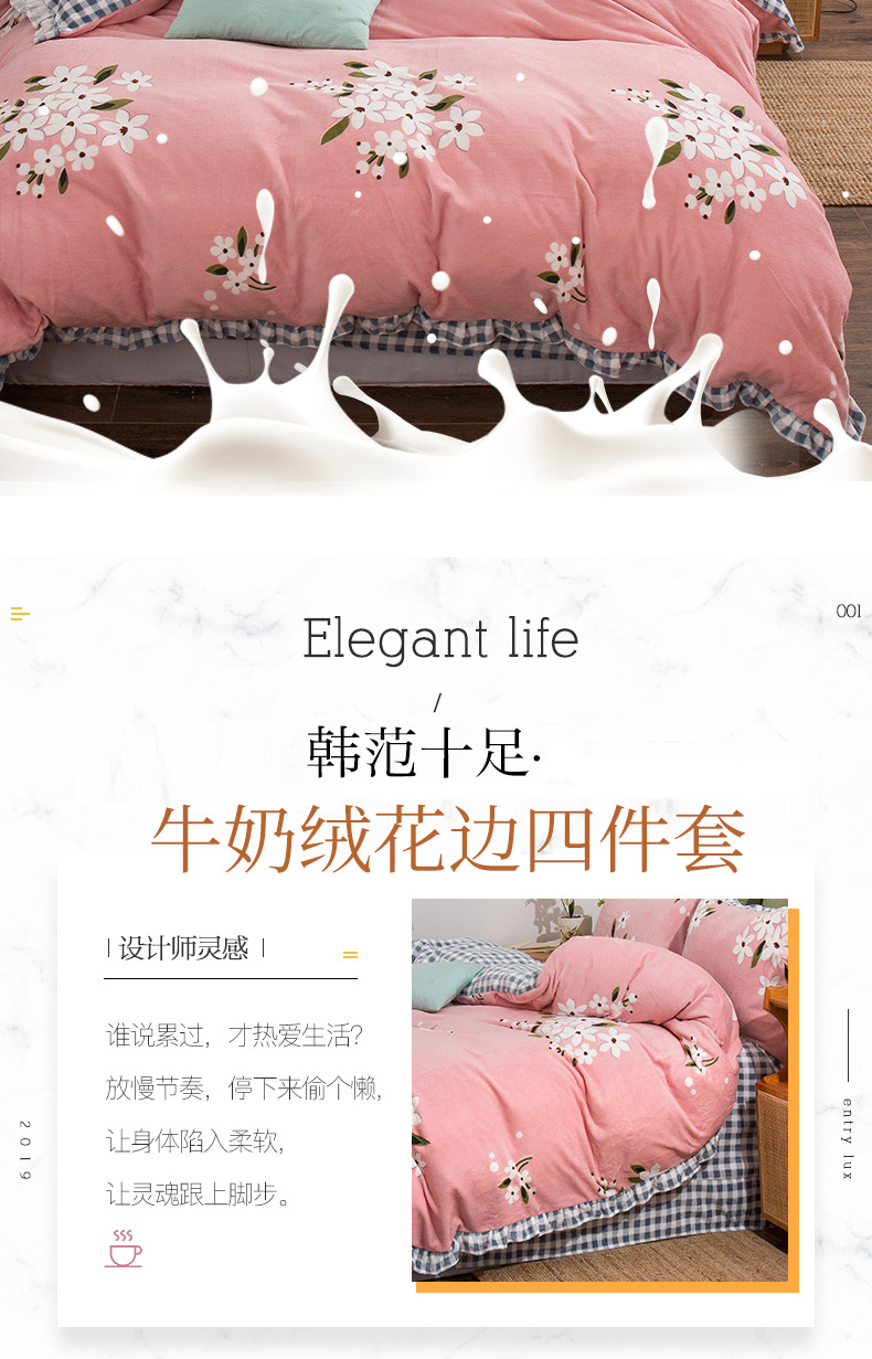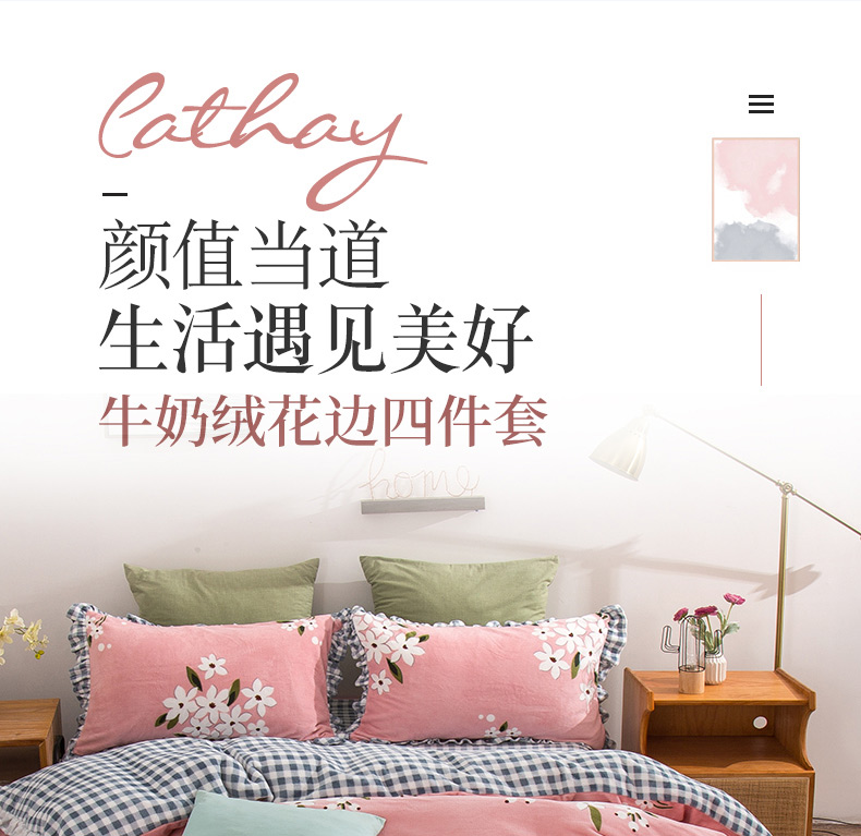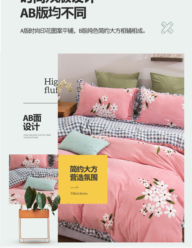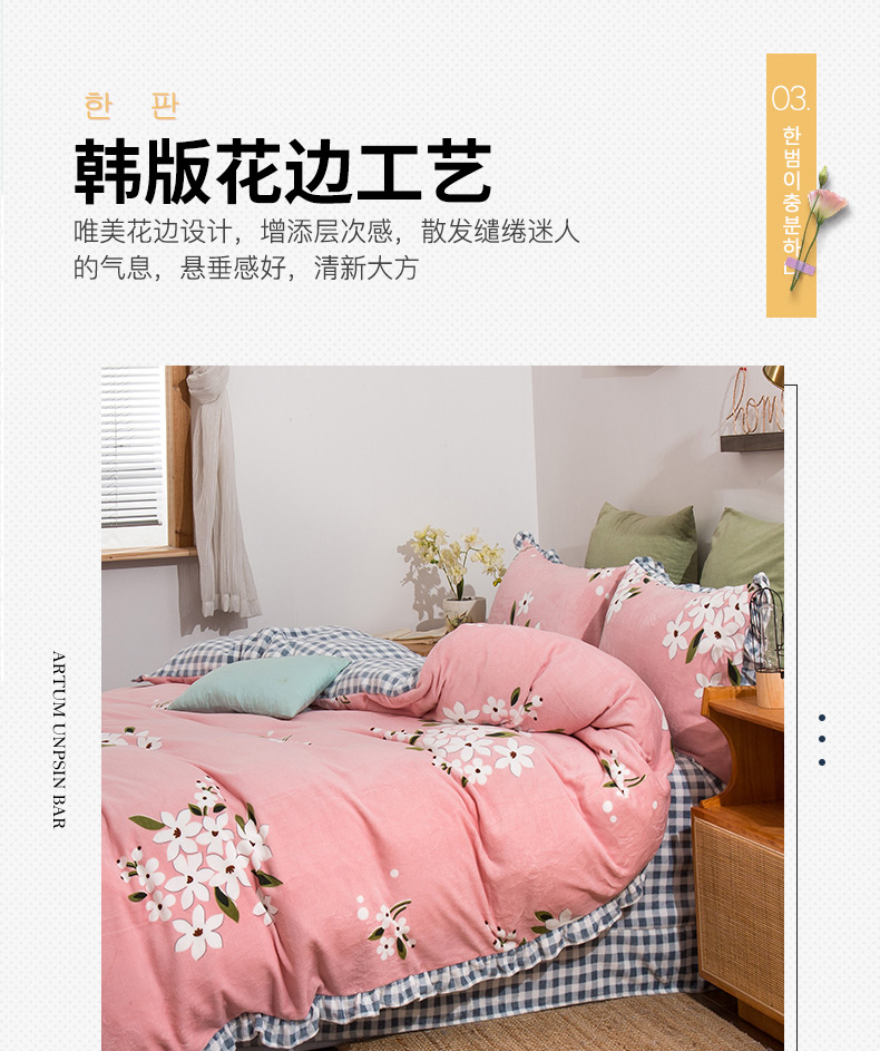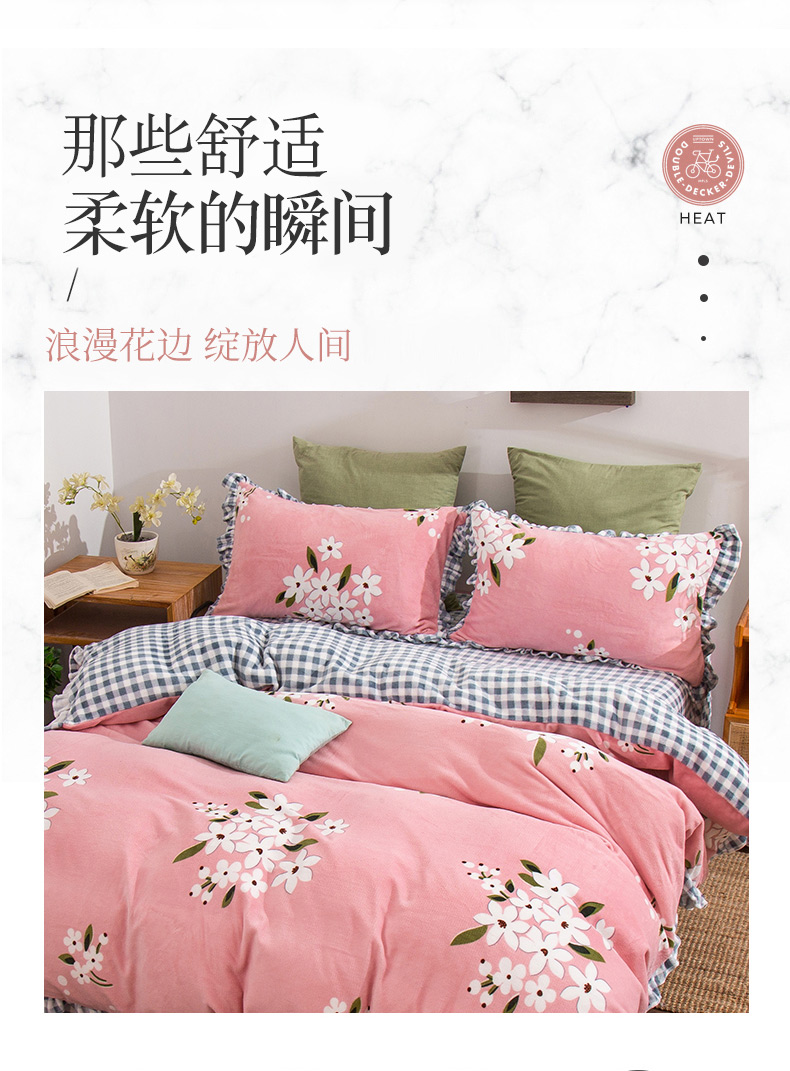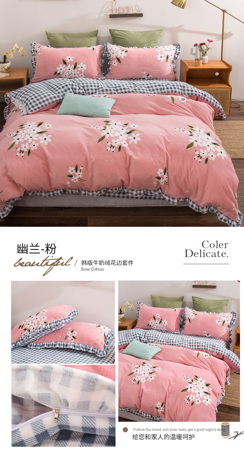 商品名称:青竹苑韩版牛奶绒四件套法莱绒水晶雕花绒加厚保暖 幽兰-粉