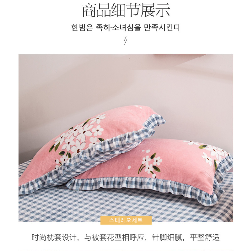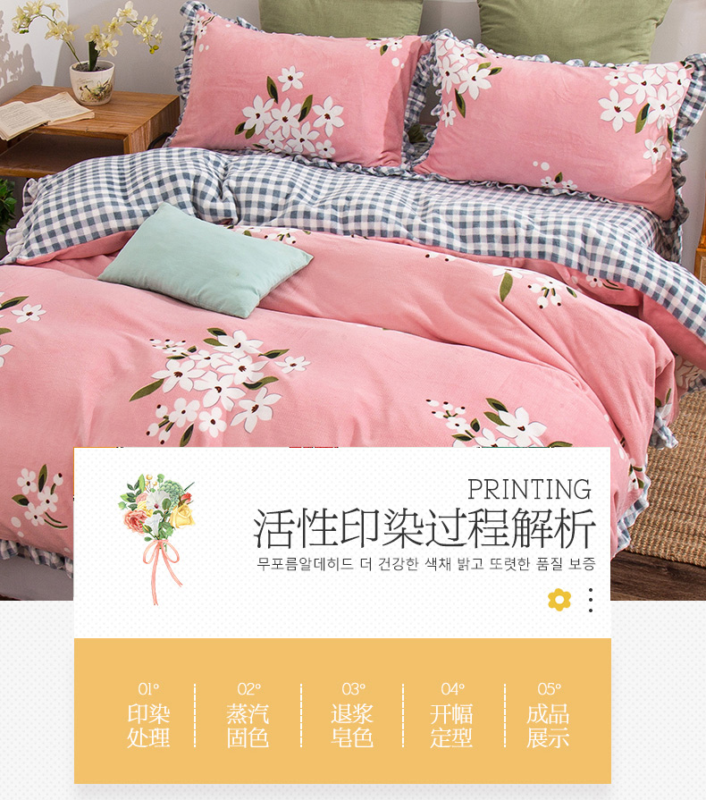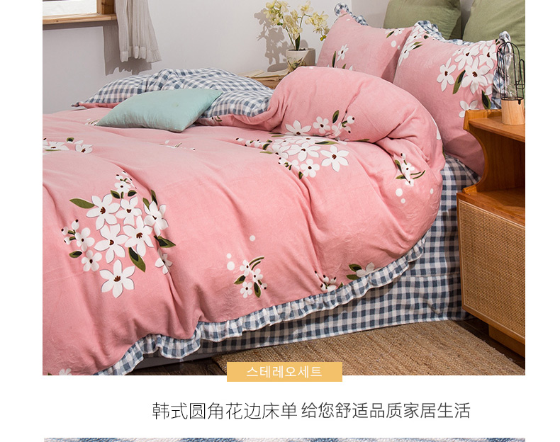 青竹苑韩版牛奶绒四件套法莱绒水晶雕花绒加厚保暖 幽兰-粉