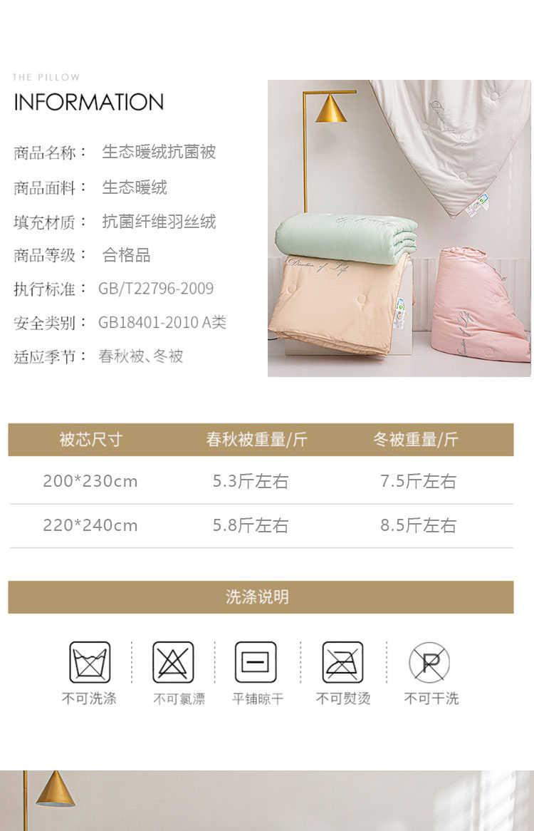 商品名称:久典 2020新款生态暖绒抗菌被 奥利—粉色