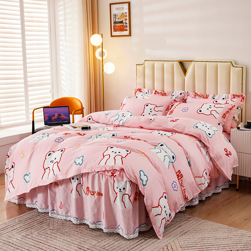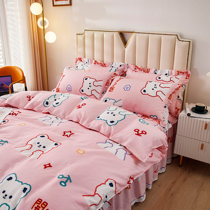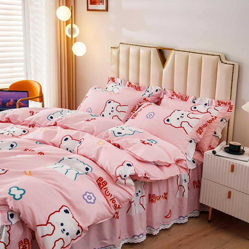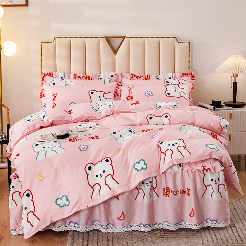 纽缦 2021新款上下边床裙四件套 萌萌熊
