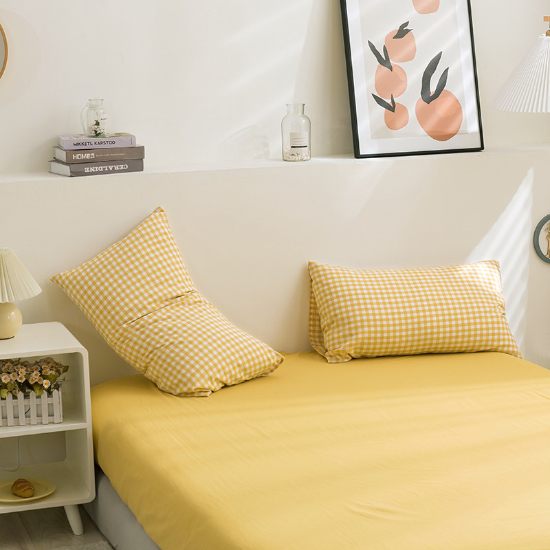 商品名称:简色坊 2023新款全棉水洗棉单品枕套一只 黄小格