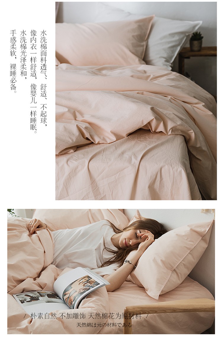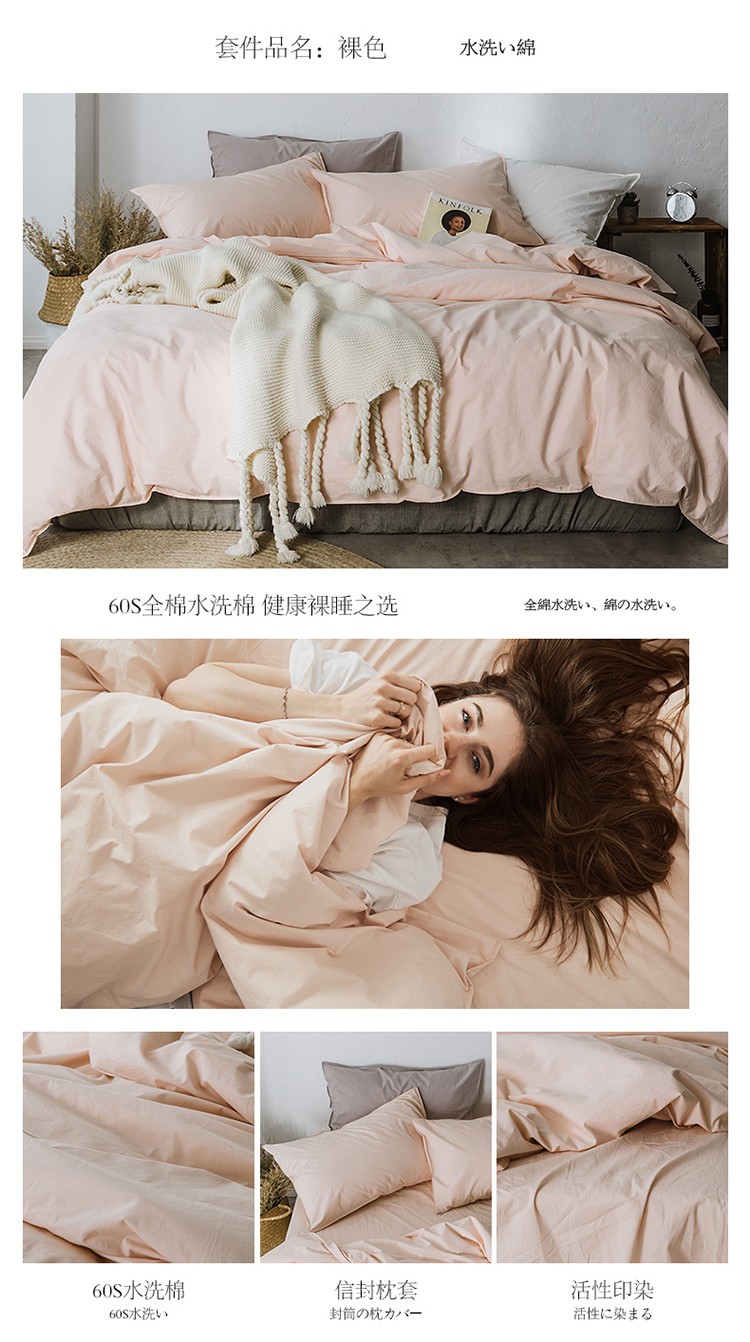 涞澳家纺 2021新款60s水洗棉素色四件套 裸色