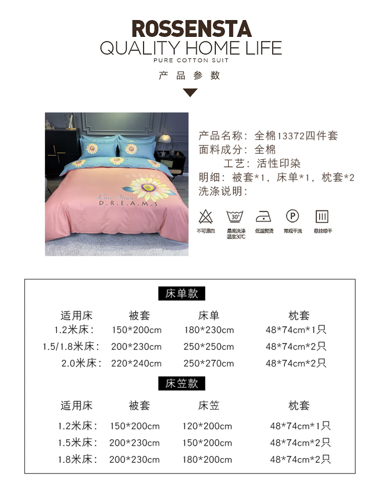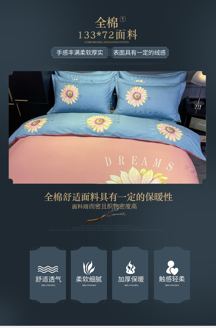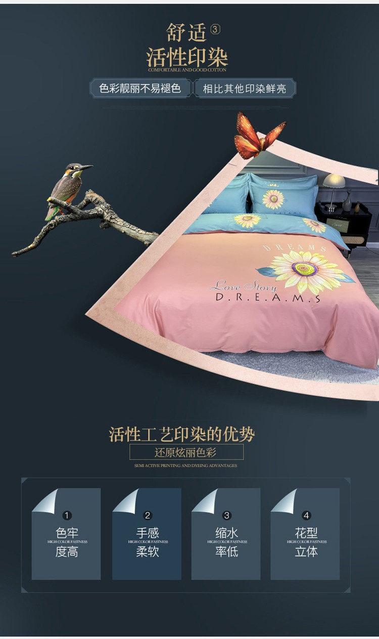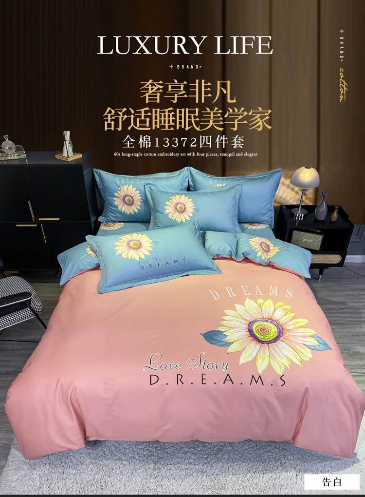 当前位置: 91家纺网 > 商品网购 > 床品套件 > 四件套 > 全棉活性四件套 > 金爱家 2021新款全棉活性花卉系列四件套 告白