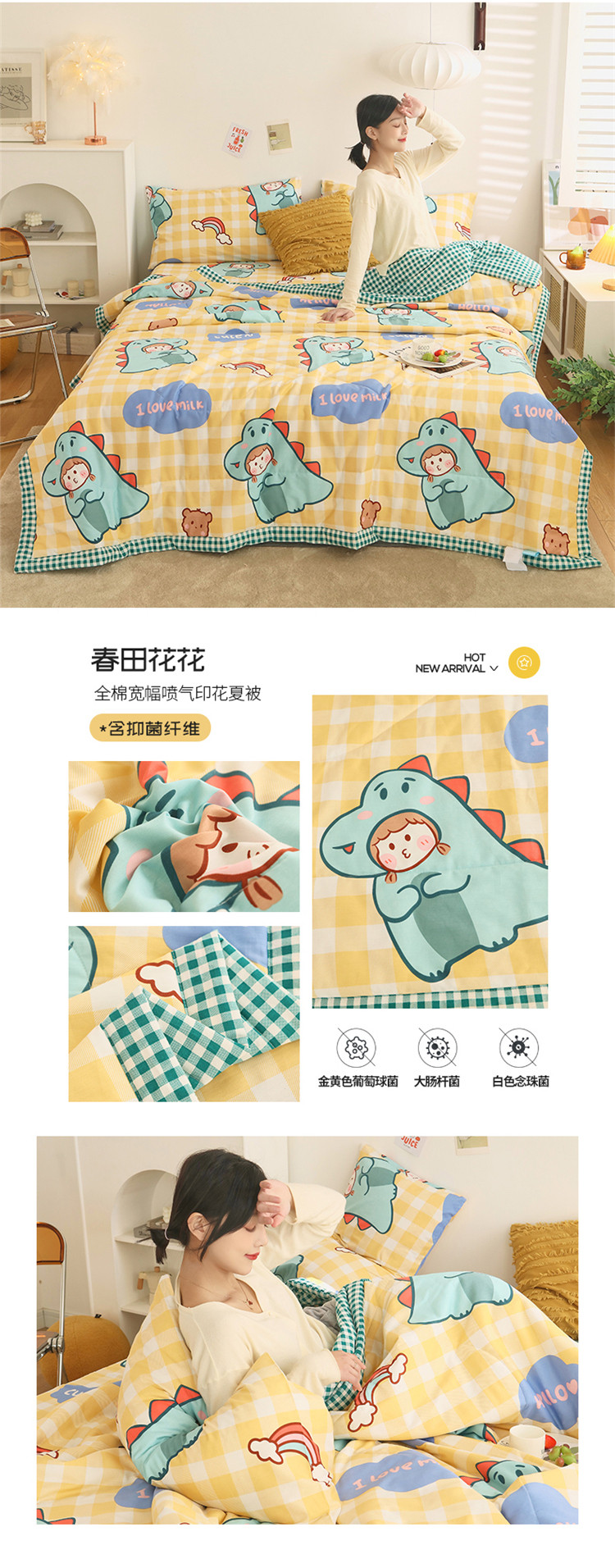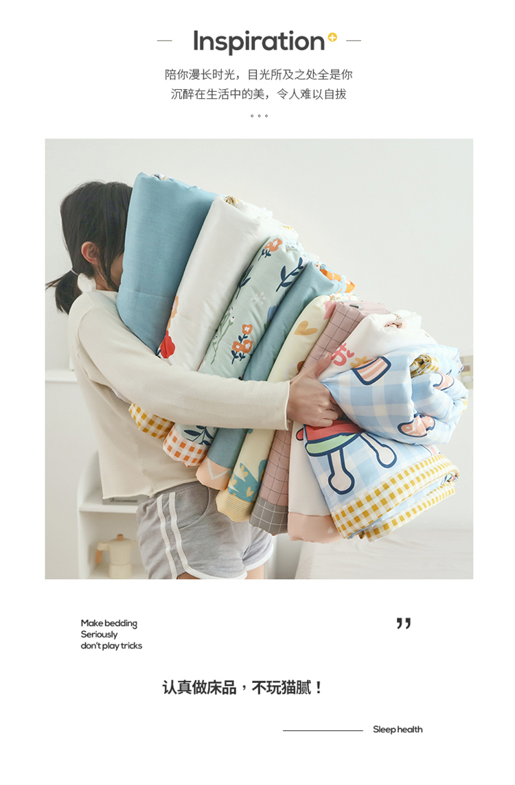 • 91家纺网 家纺一手货源 找家纺 莱宁被业 2022新款纯棉抗菌夏凉被全棉夏被四件套 春田花花