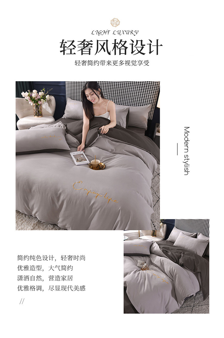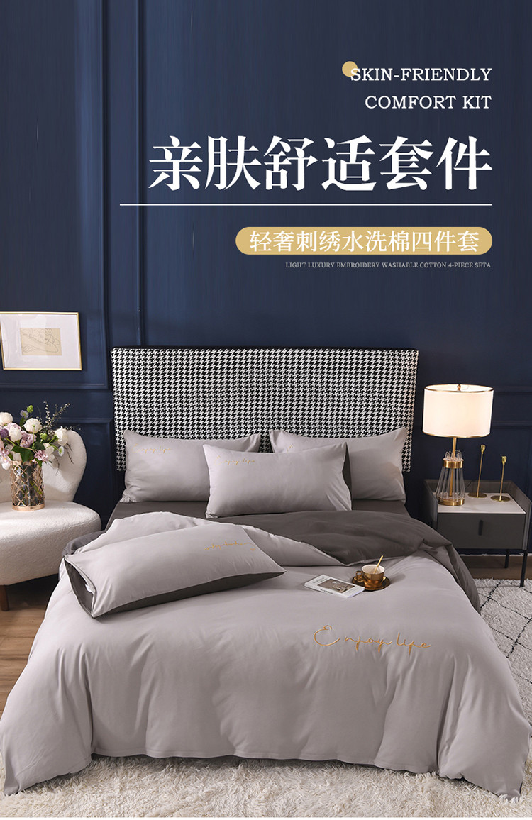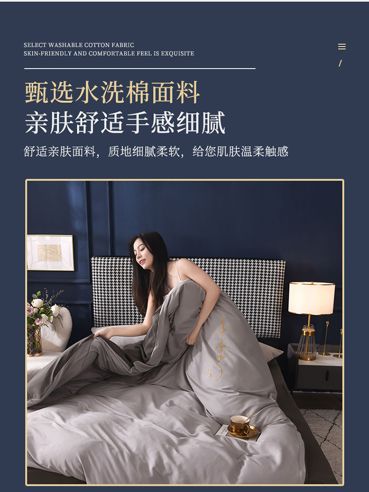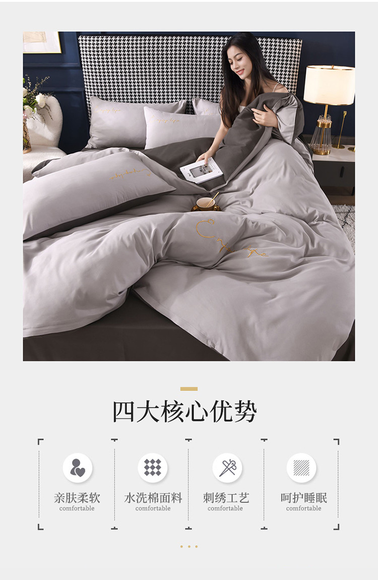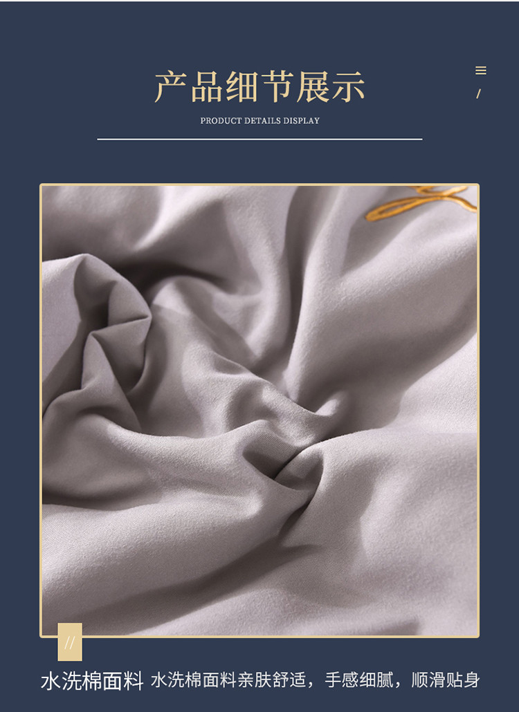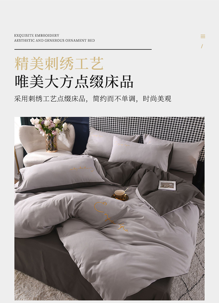 商品名称:大米家居2023新款轻奢刺绣水洗棉四件套 星耀系列银灰+深灰