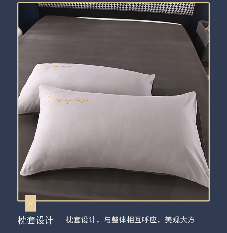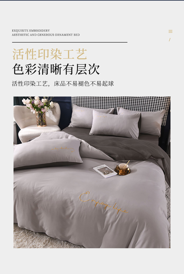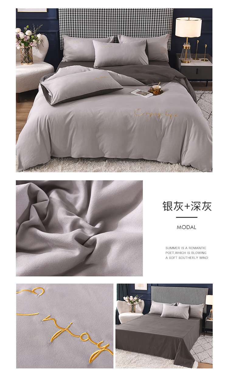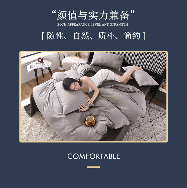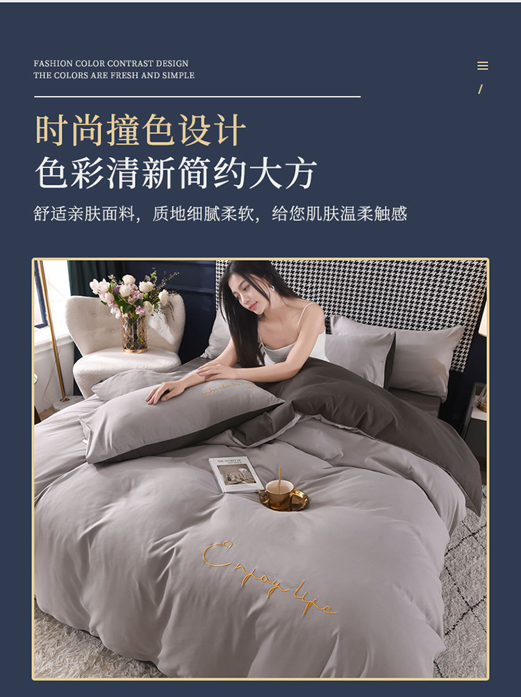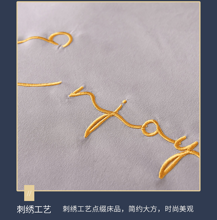 商品名称:大米家居2023新款轻奢刺绣水洗棉四件套 星耀系列银灰+深灰