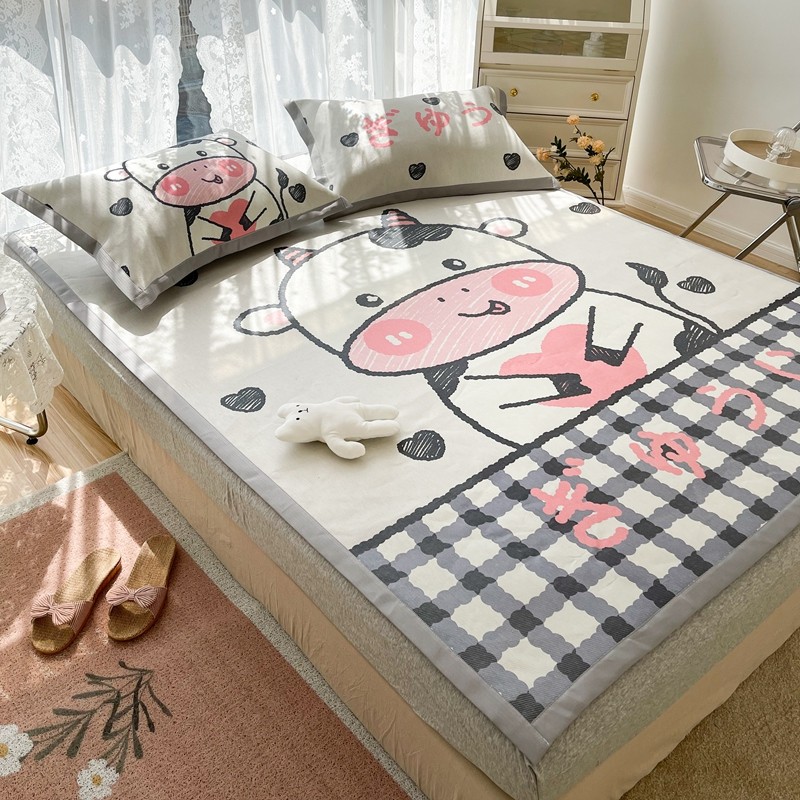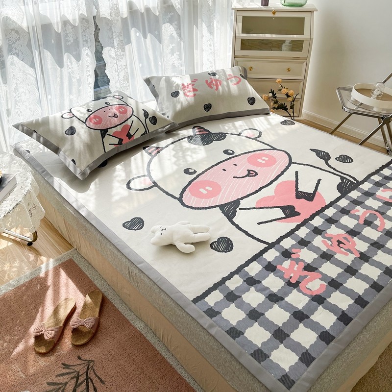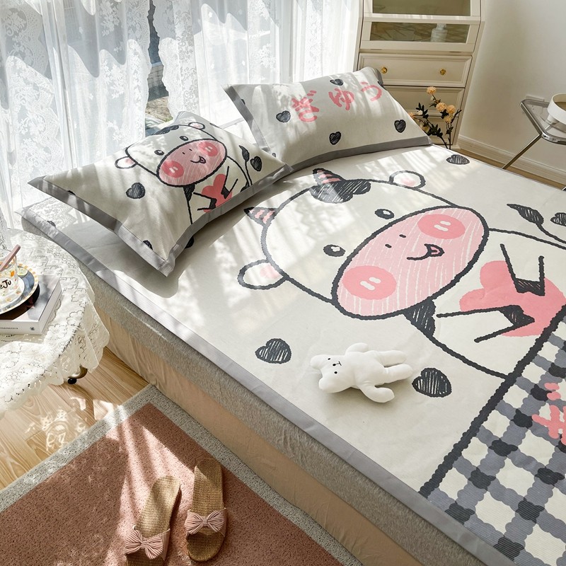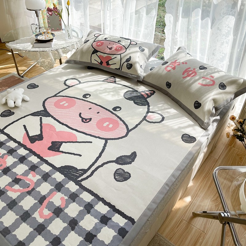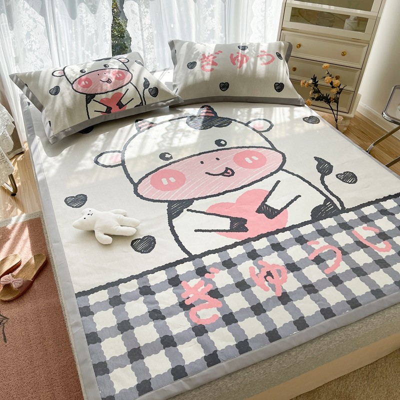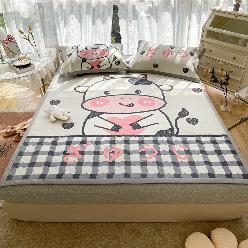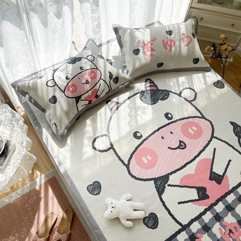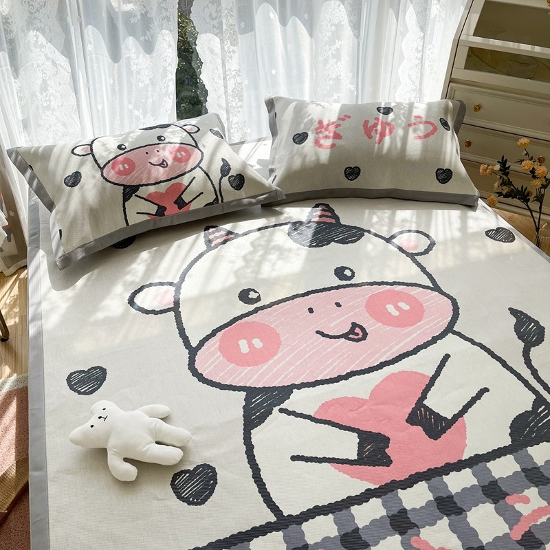 商品名称:慕尚 2025新款卡通宽边大版冰丝席 顽皮小牛
