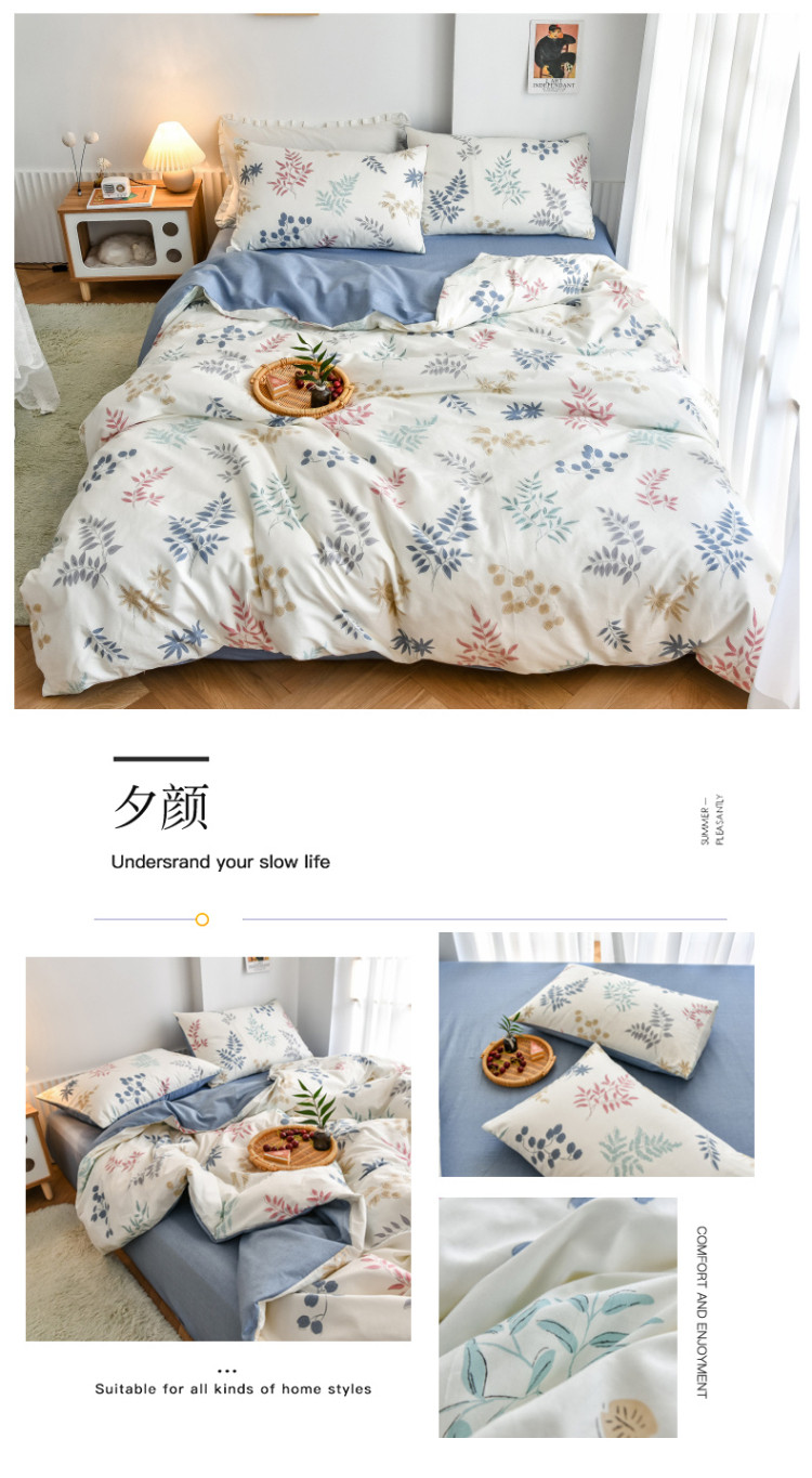 商品名称:捌月 2021新款13372喷气全棉浅夏四件套 夕颜