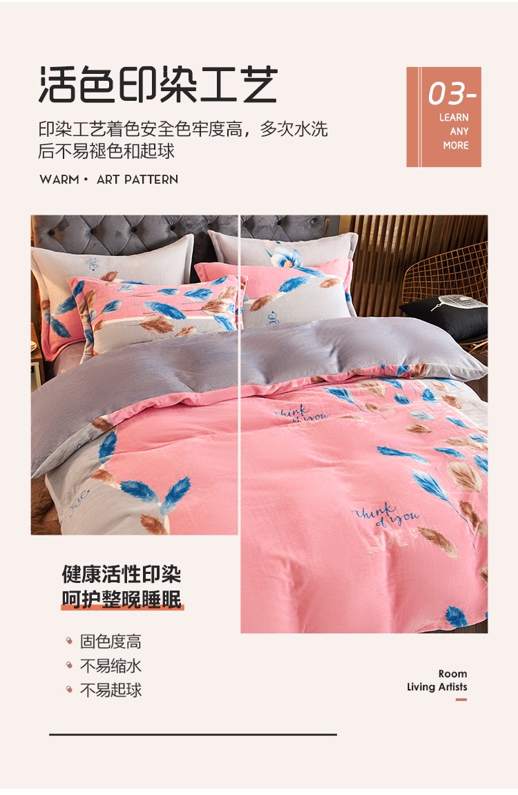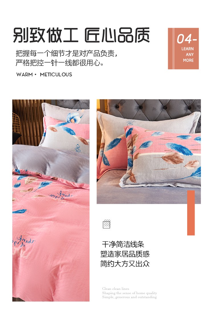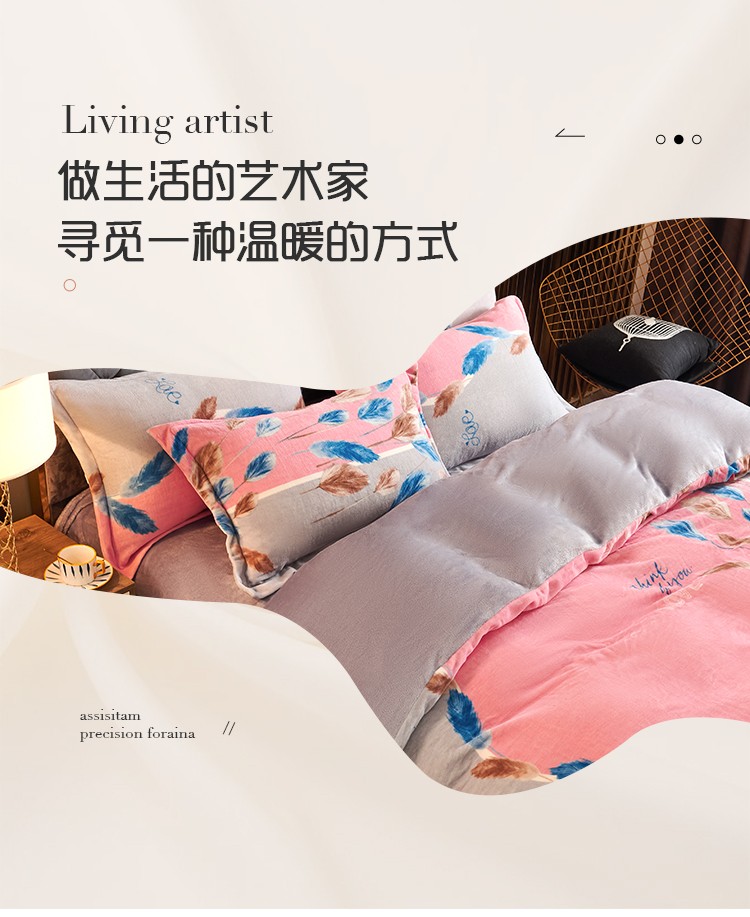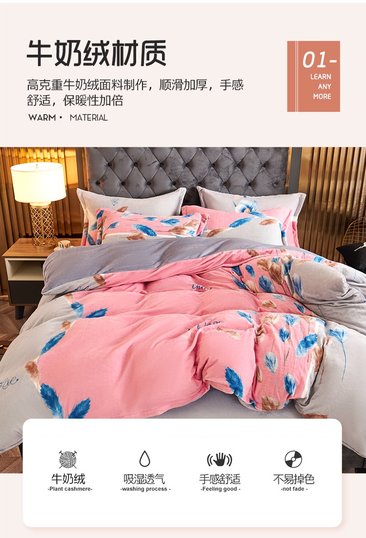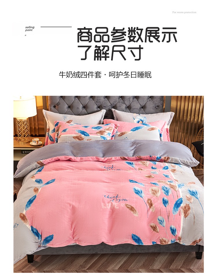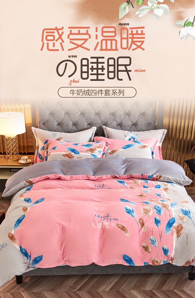 青竹苑 2021新款牛奶绒印花四件套 思羽情怀