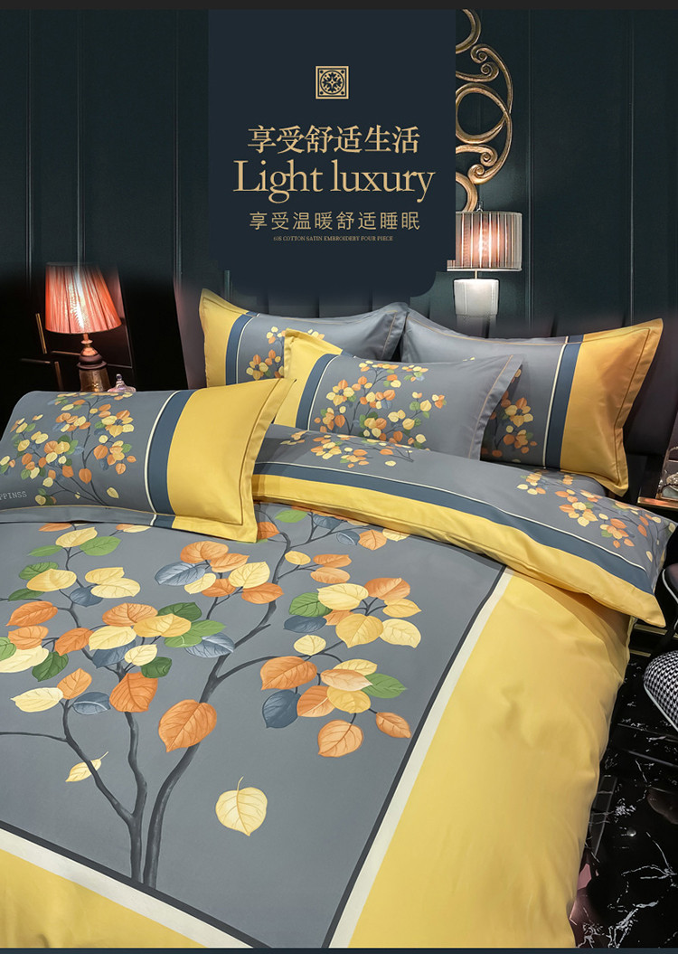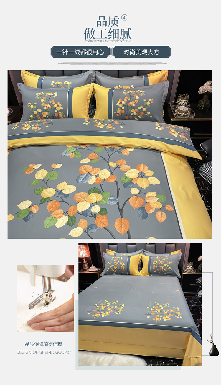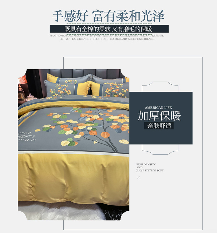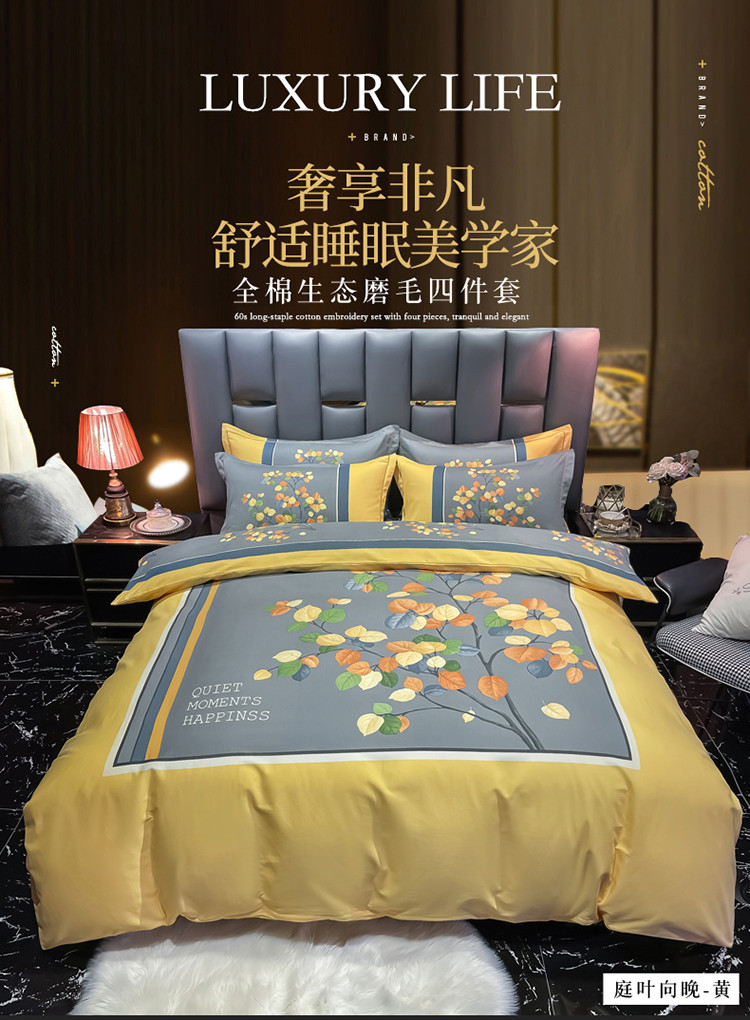 当前位置: 91家纺网 > 商品网购 > 床品套件 > 四件套 > 普通磨毛四件套 > 金爱家 2021新款大版磨毛条格简约四件套庭叶向晚-黄