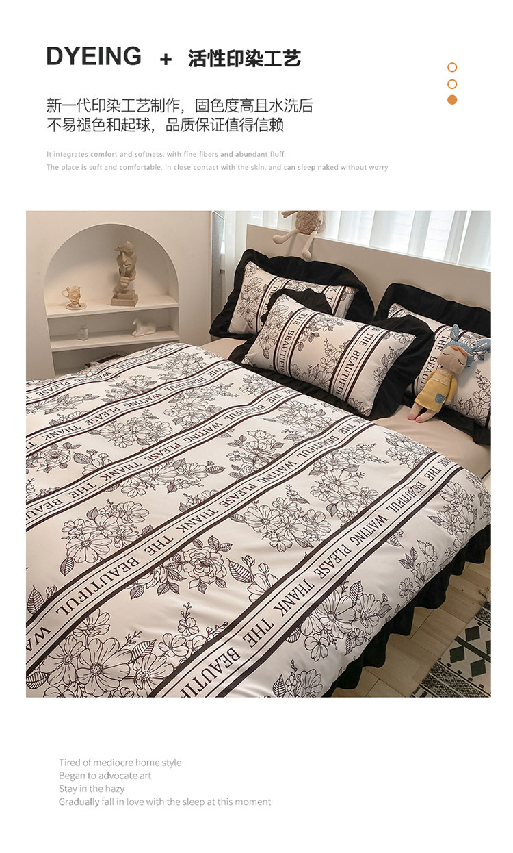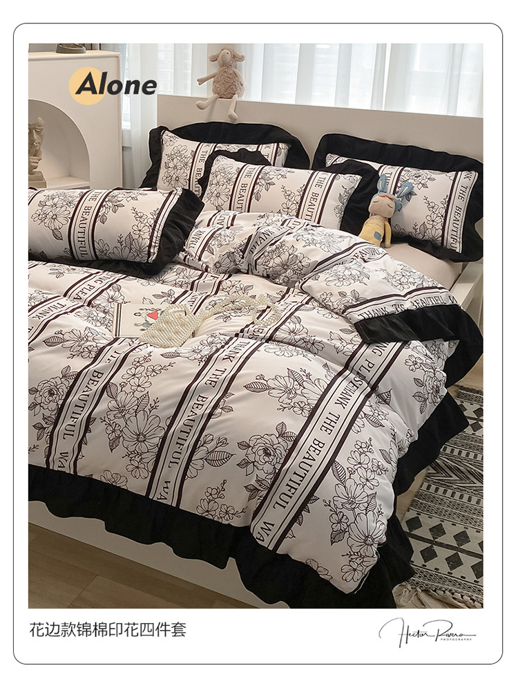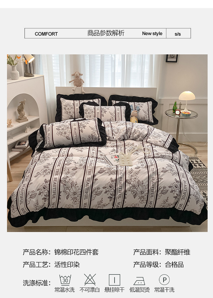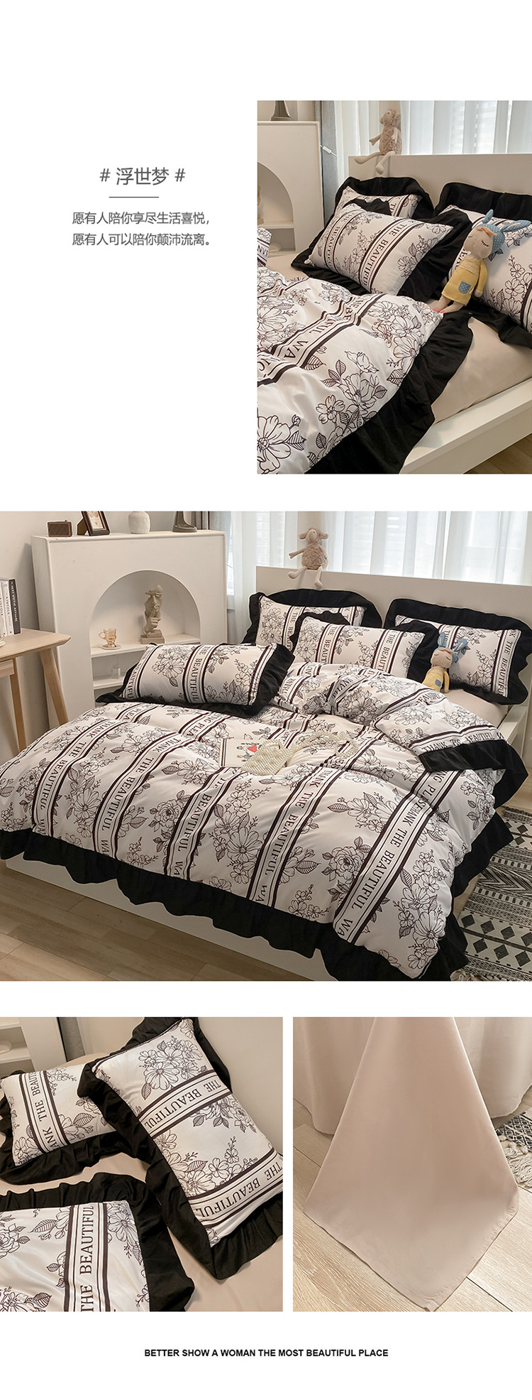 当前位置: 91家纺网 > 商品网购 > 床品套件 > 四件套 > 化纤普通四件套 > 花伞家居 2021新款韩版赫本风格子系列锦棉四件套 浮世梦