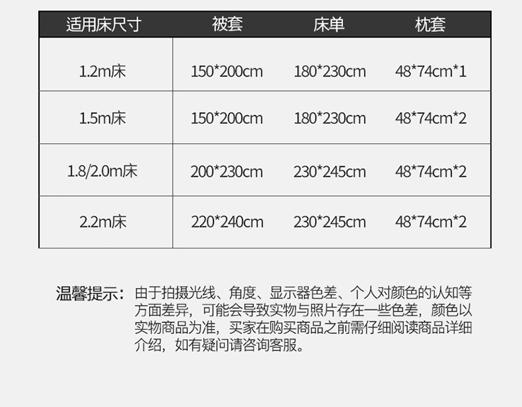 1.2m(被套150*200床单180*230)三件套 | ¥45.00 |