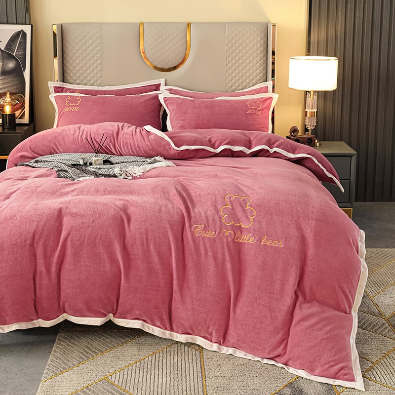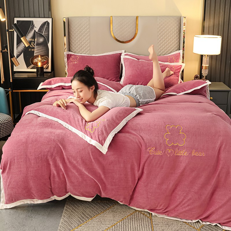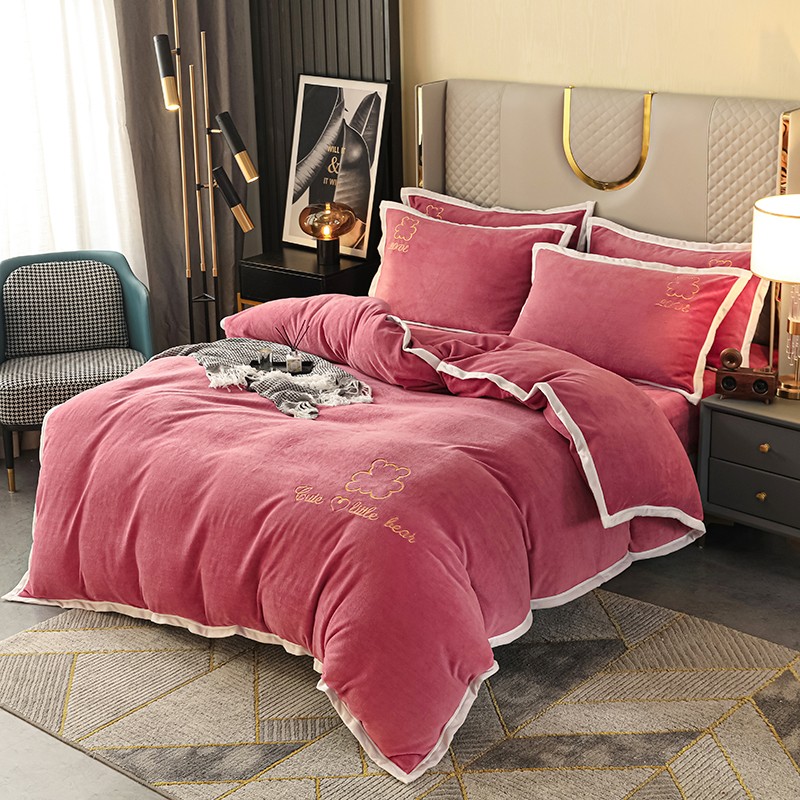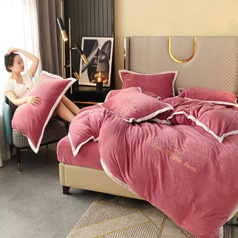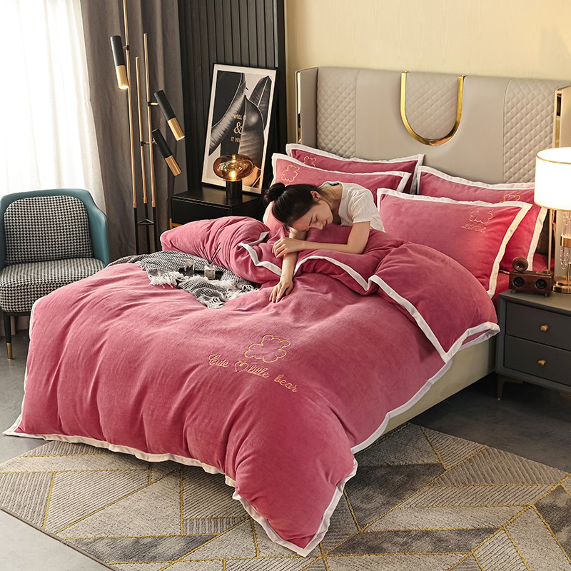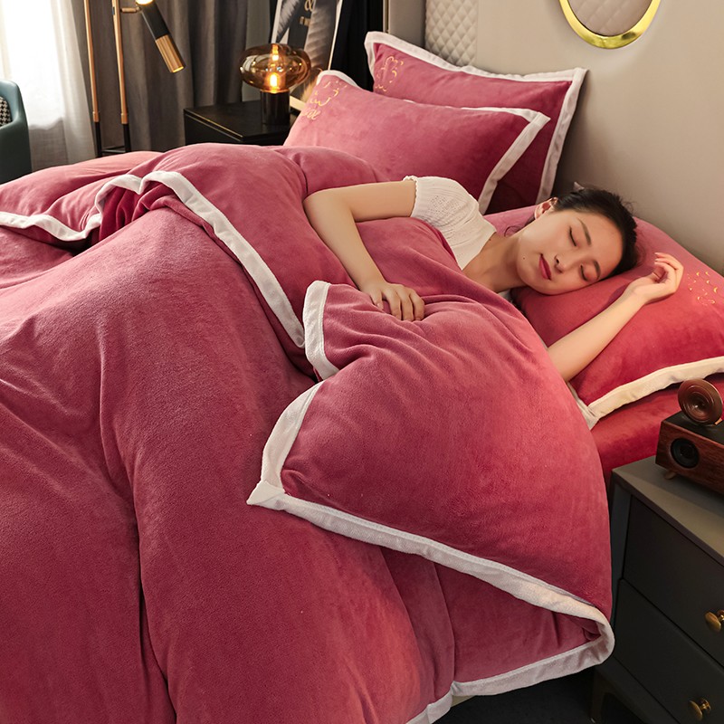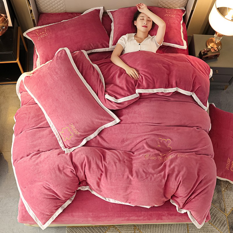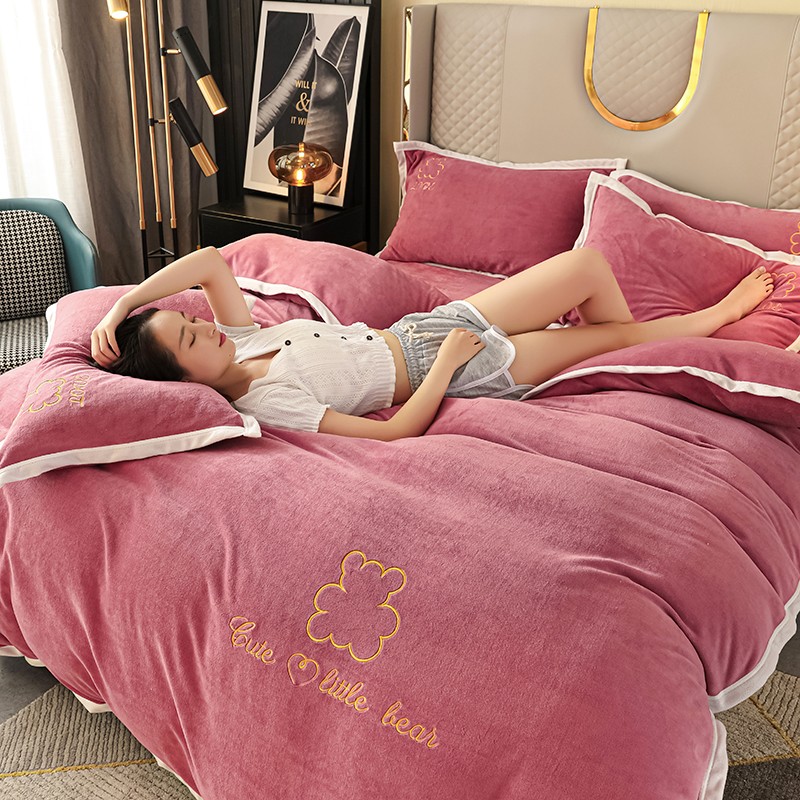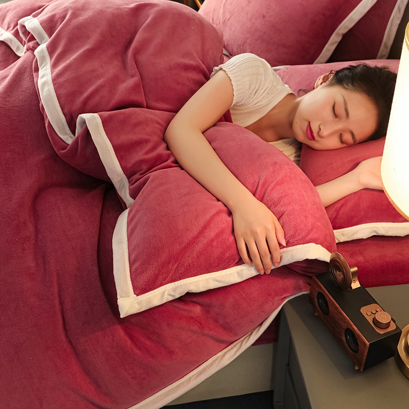 爱洛家纺2021新款牛奶绒四件套 红豆沙