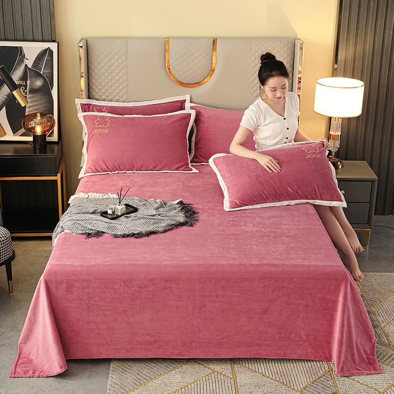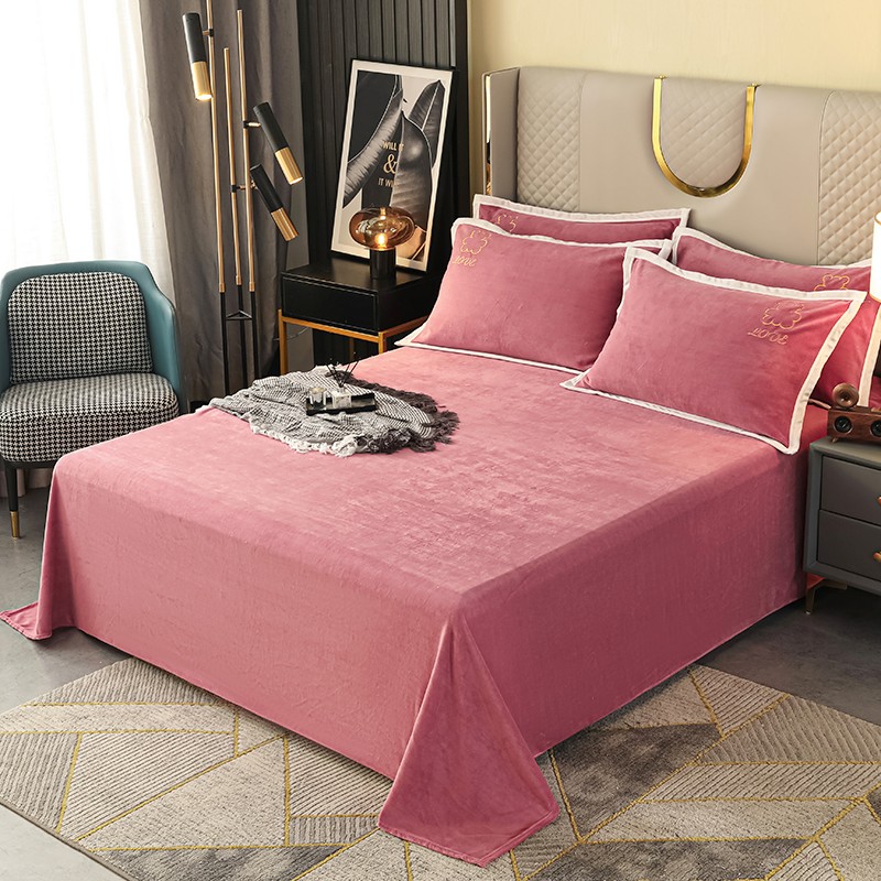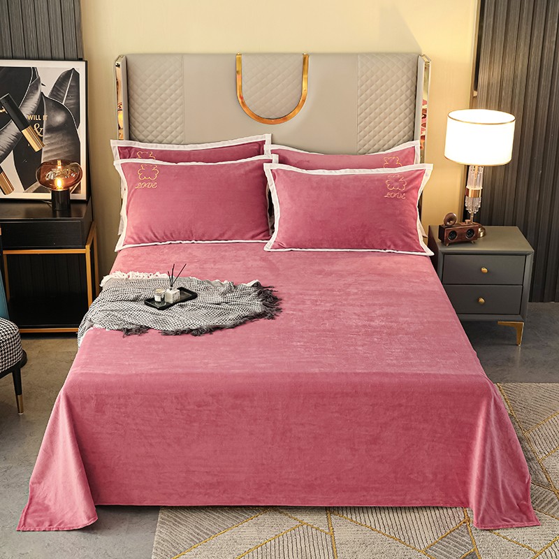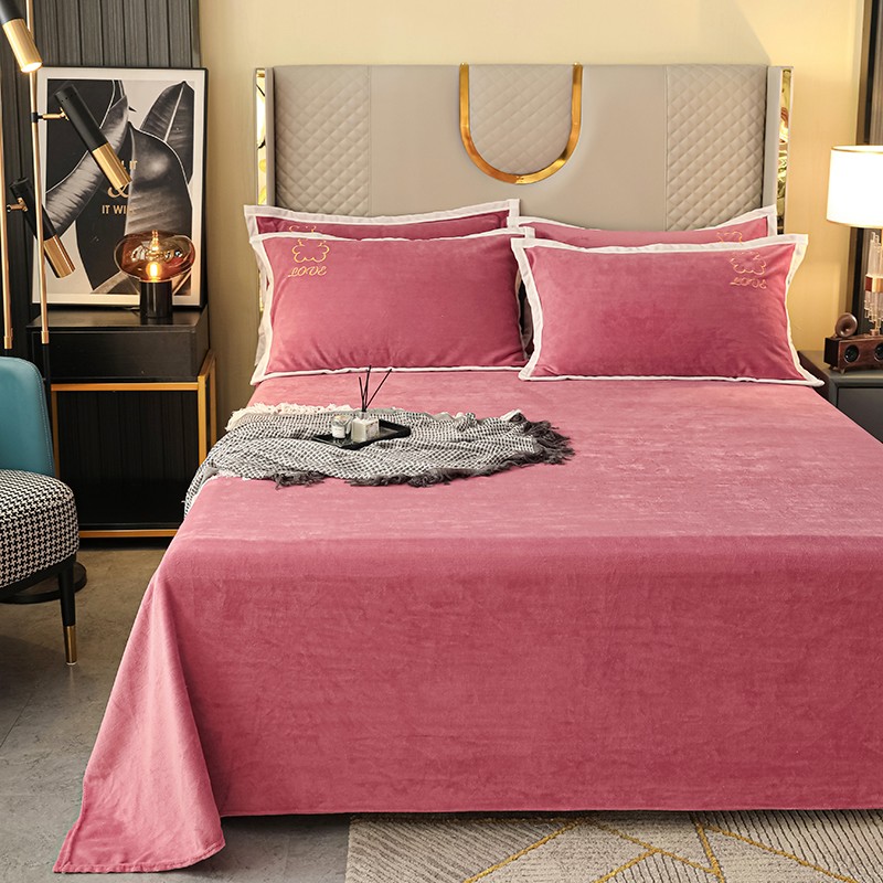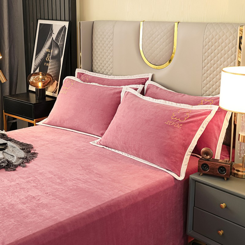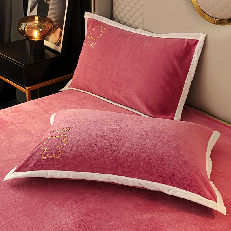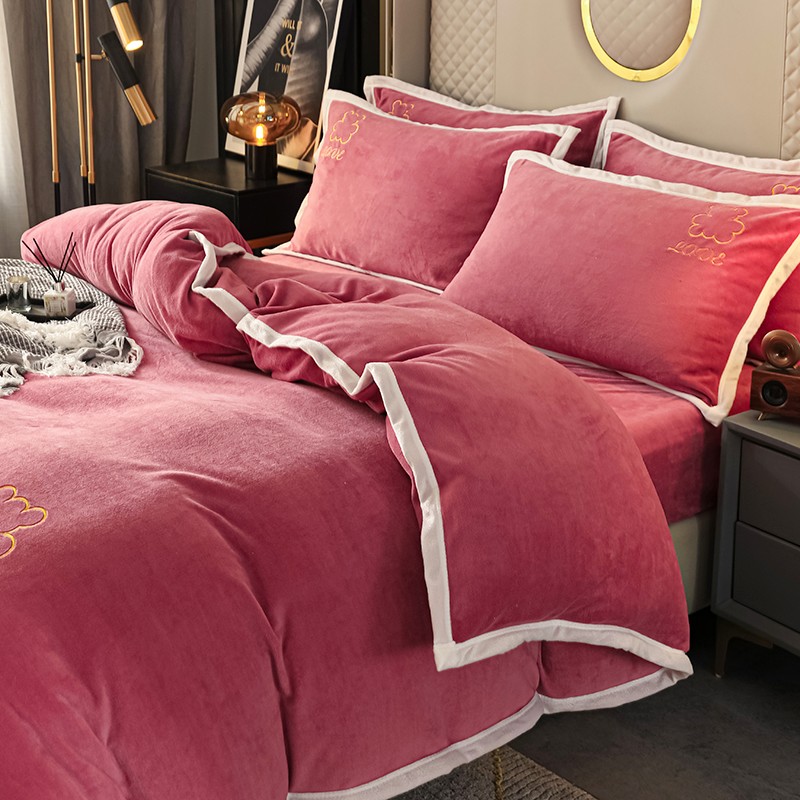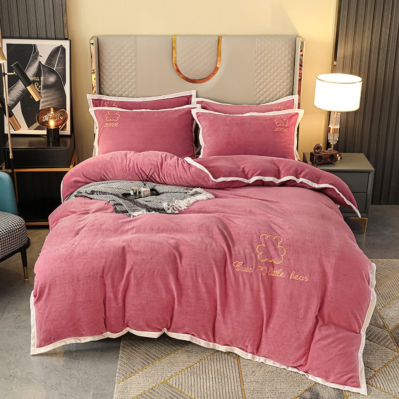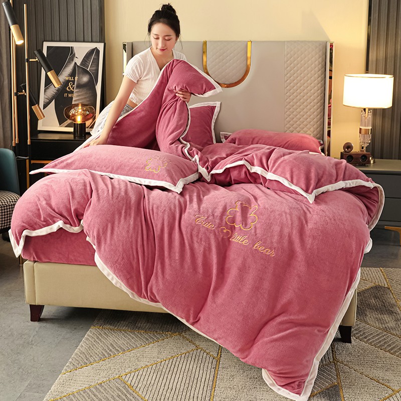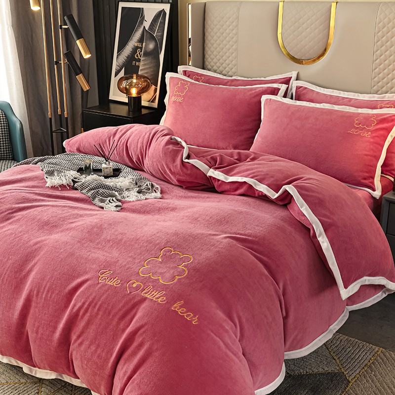 爱洛家纺2021新款牛奶绒四件套 红豆沙