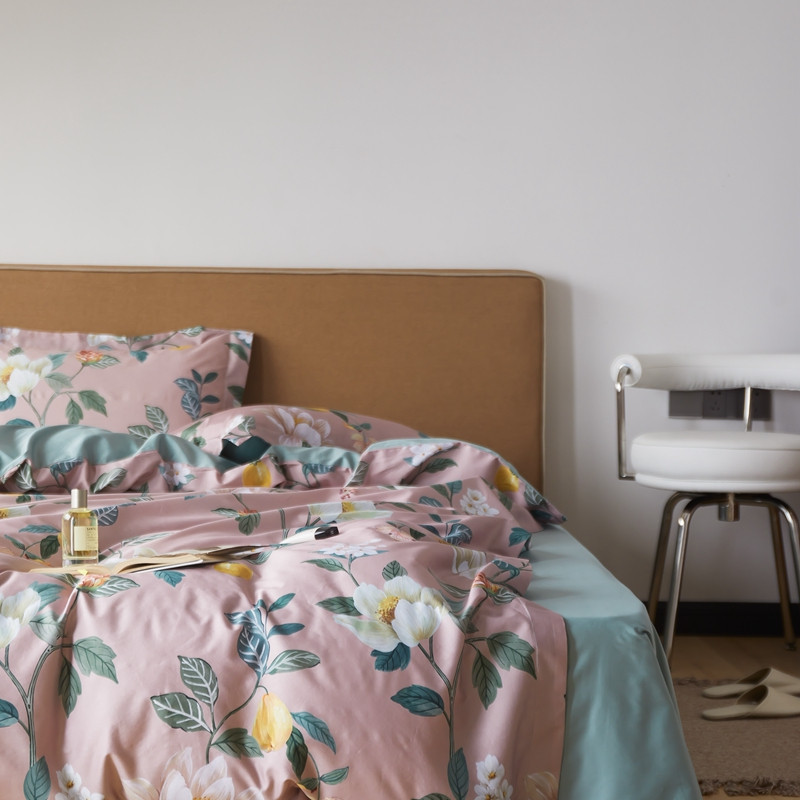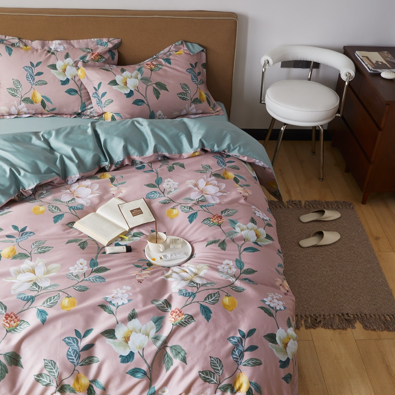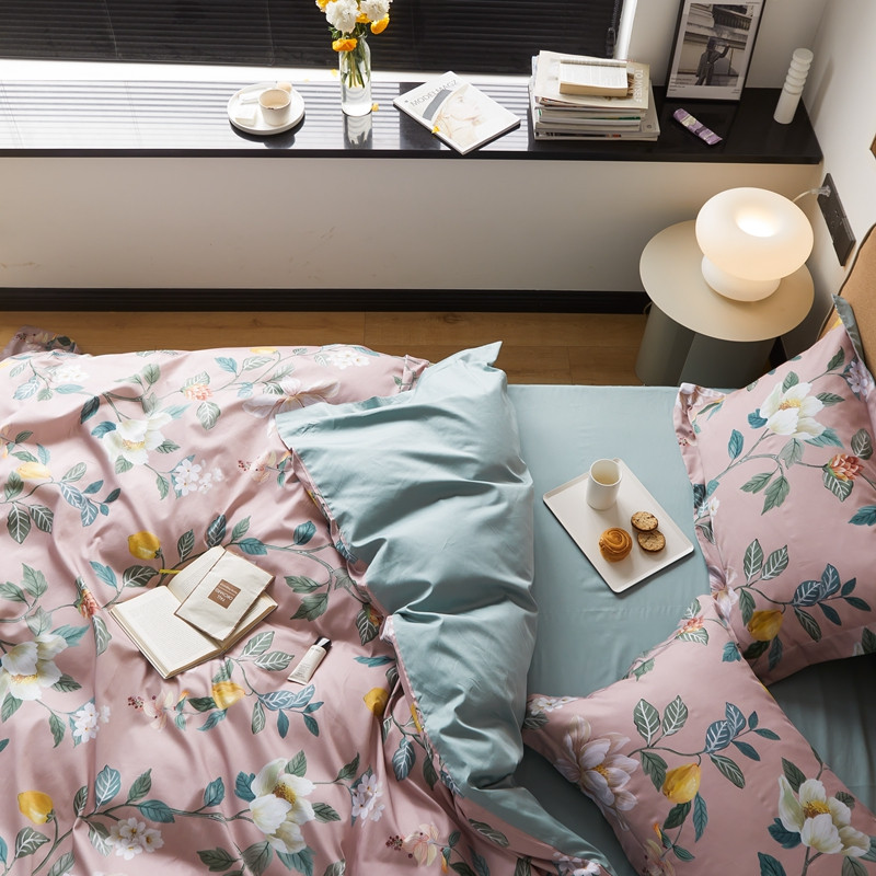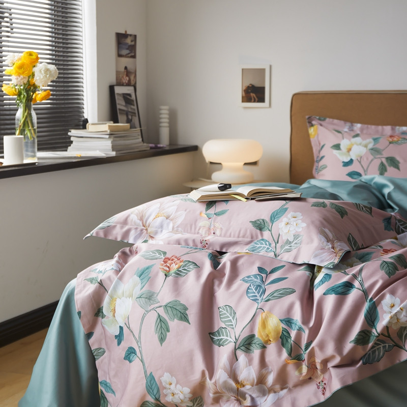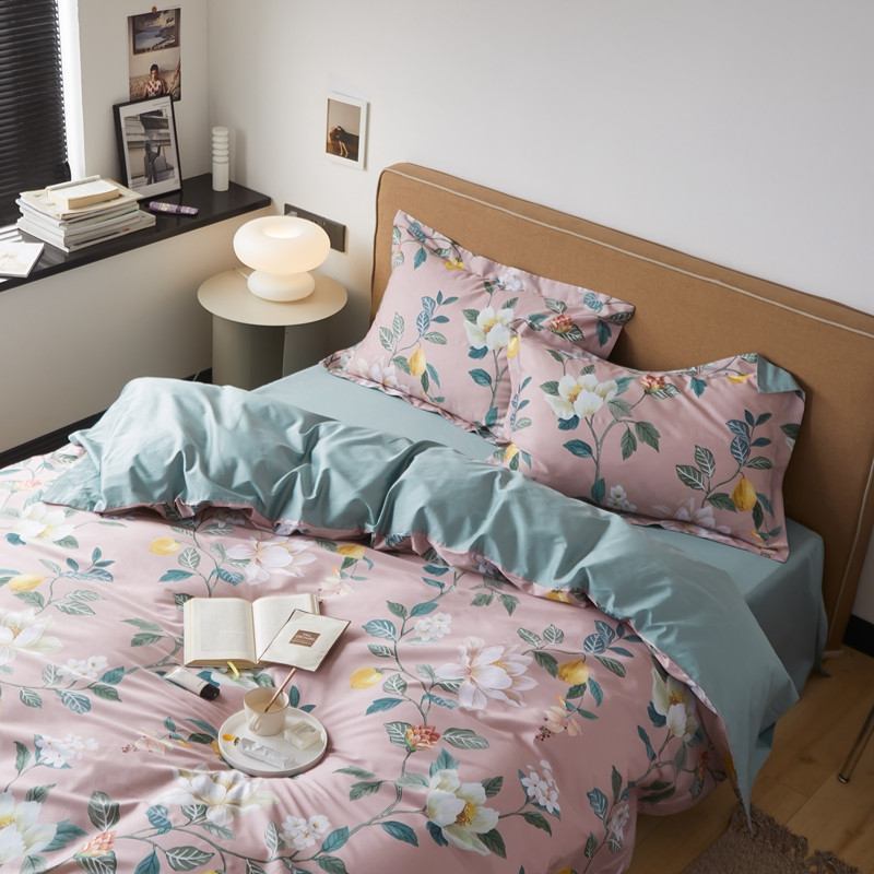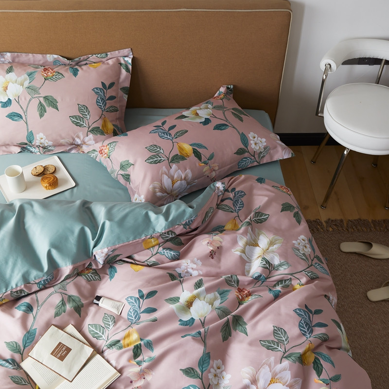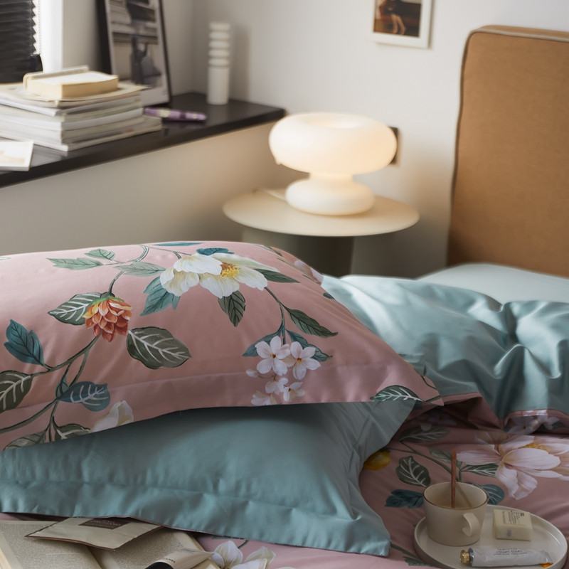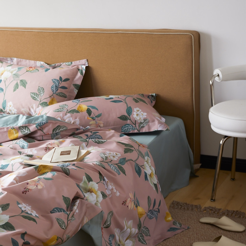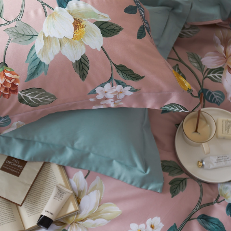 优然居 2021新款60支数码印花宽边四件套 格蕾丝粉
