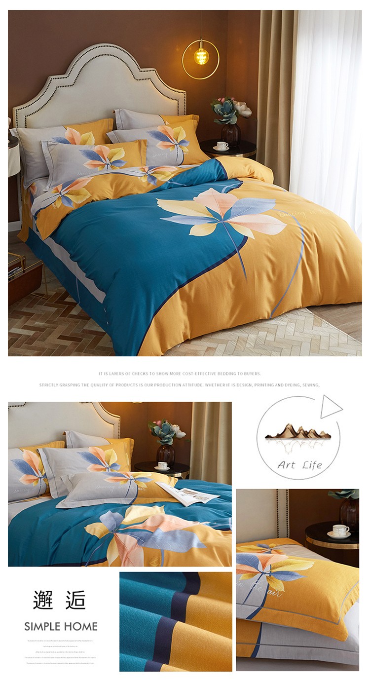 • 91家纺网 家纺一手货源 找家纺 (总)惠居家 2022大版全棉磨毛四件套中国风花卉
