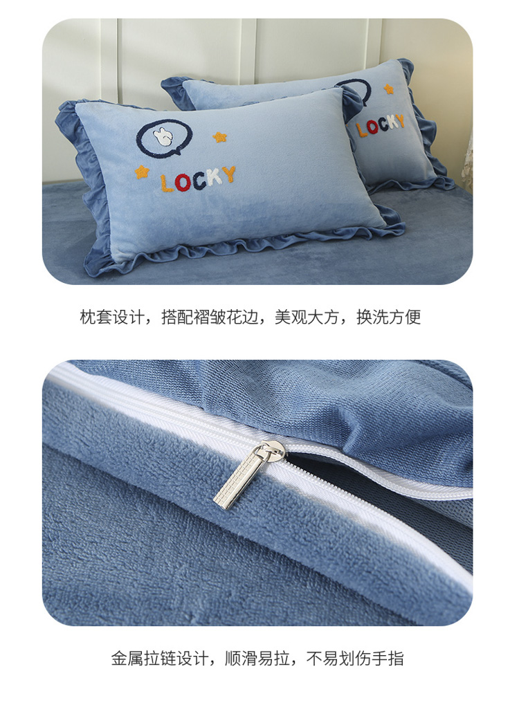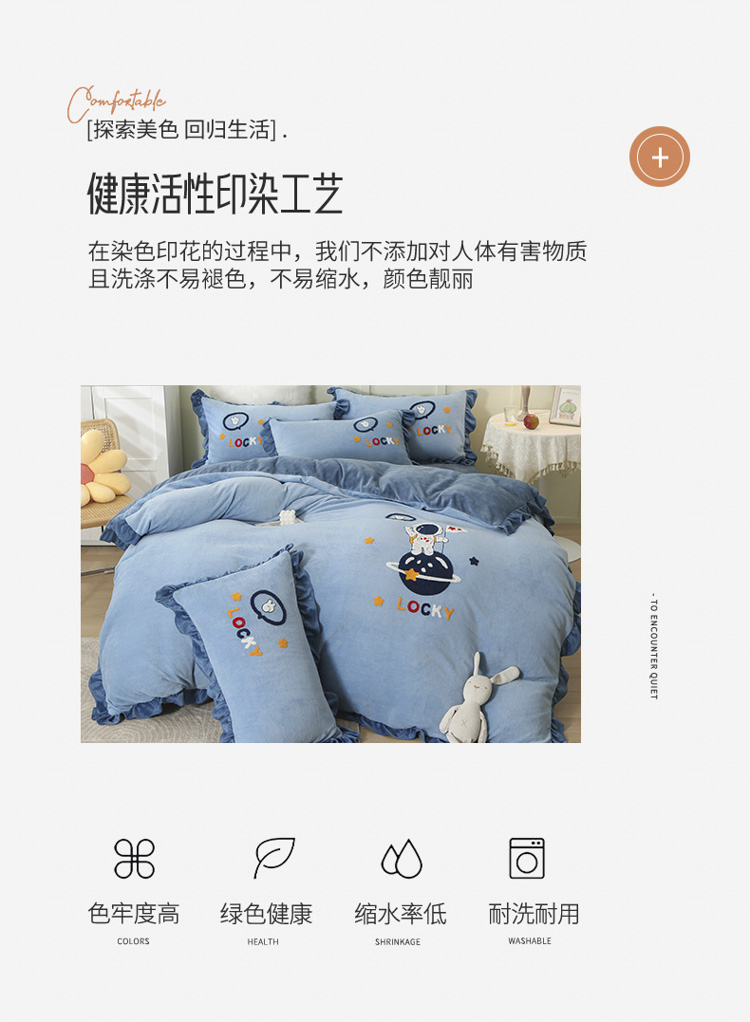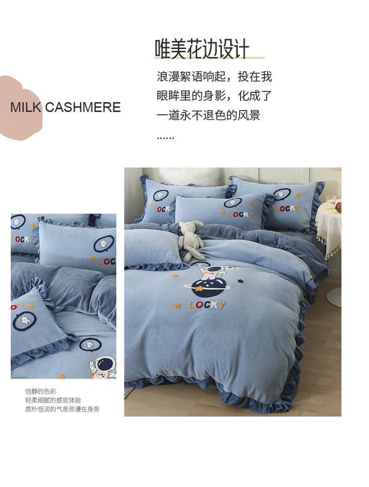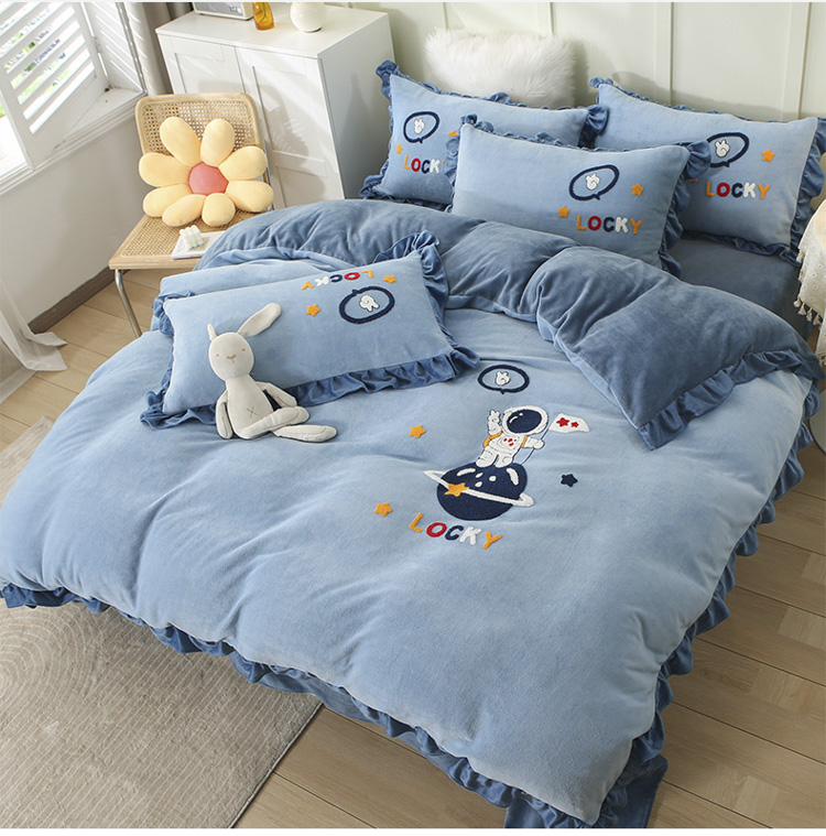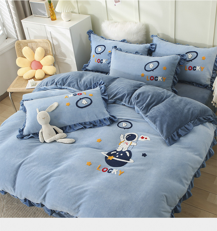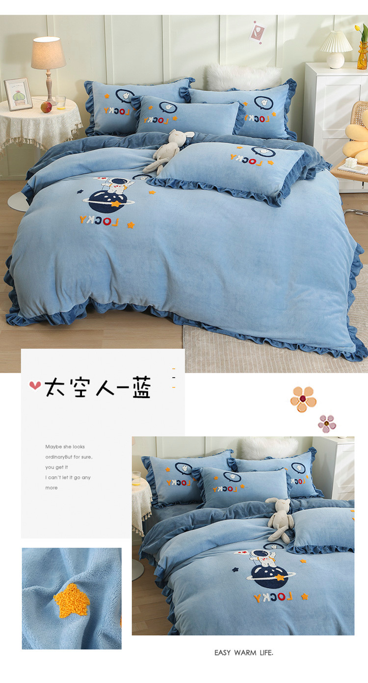 商品名称:沐辰 2021新款韩版毛巾绣加厚牛奶绒四件套 太空人-蓝