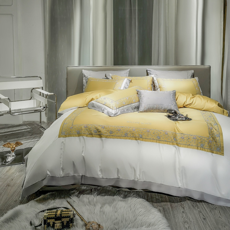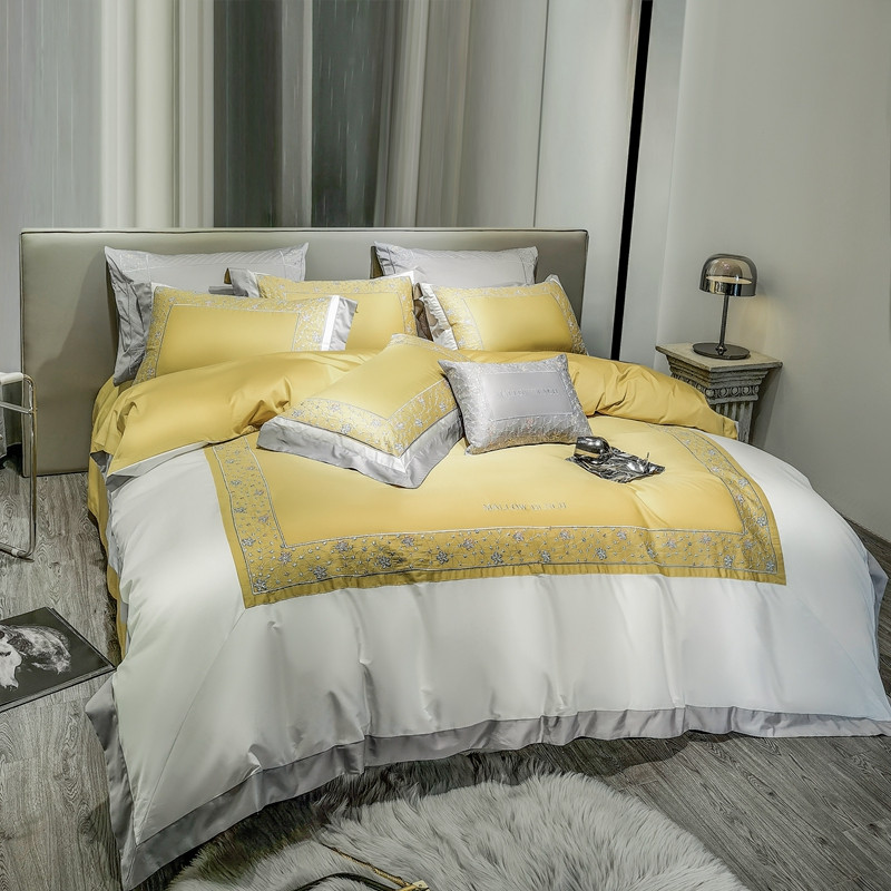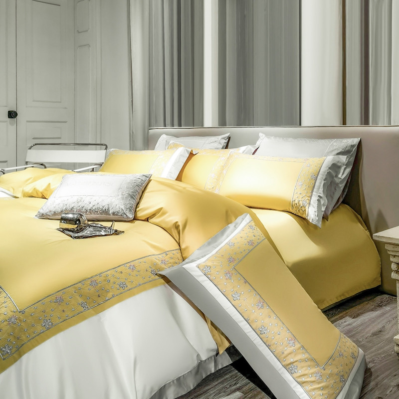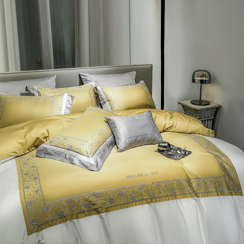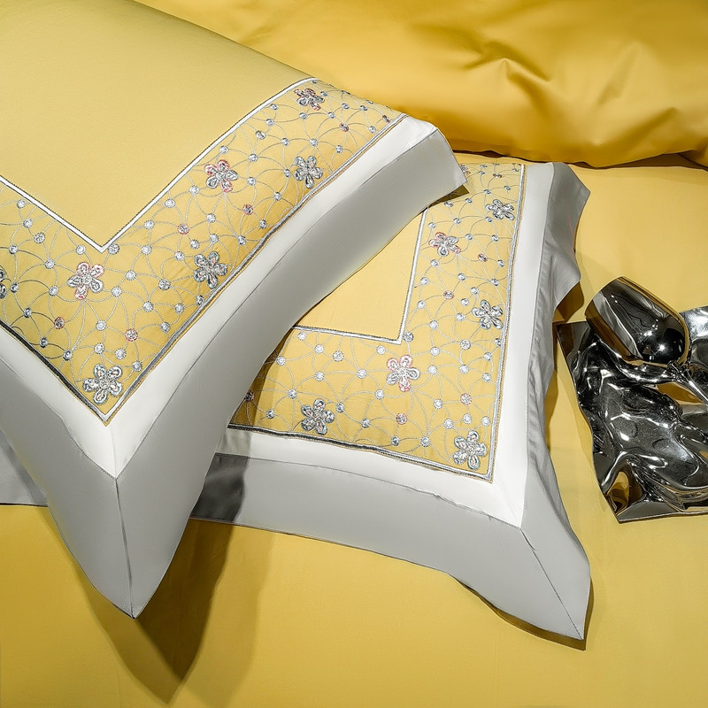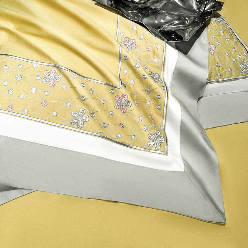 缔缦家纺 2022新款100s澳棉刺绣系列四件套-花钻 琥珀黄