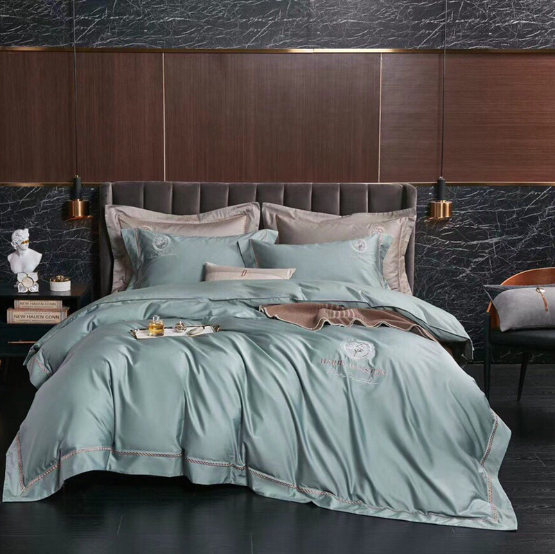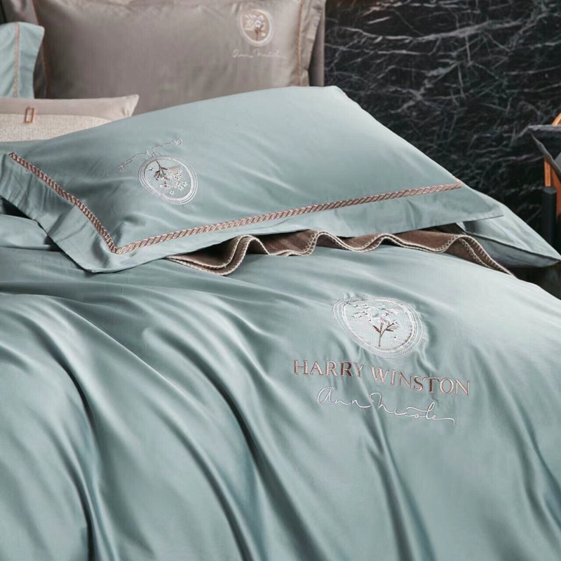 玖玖爱家纺 2022新款120支长绒棉全棉贡缎绣花四件套 浅绿