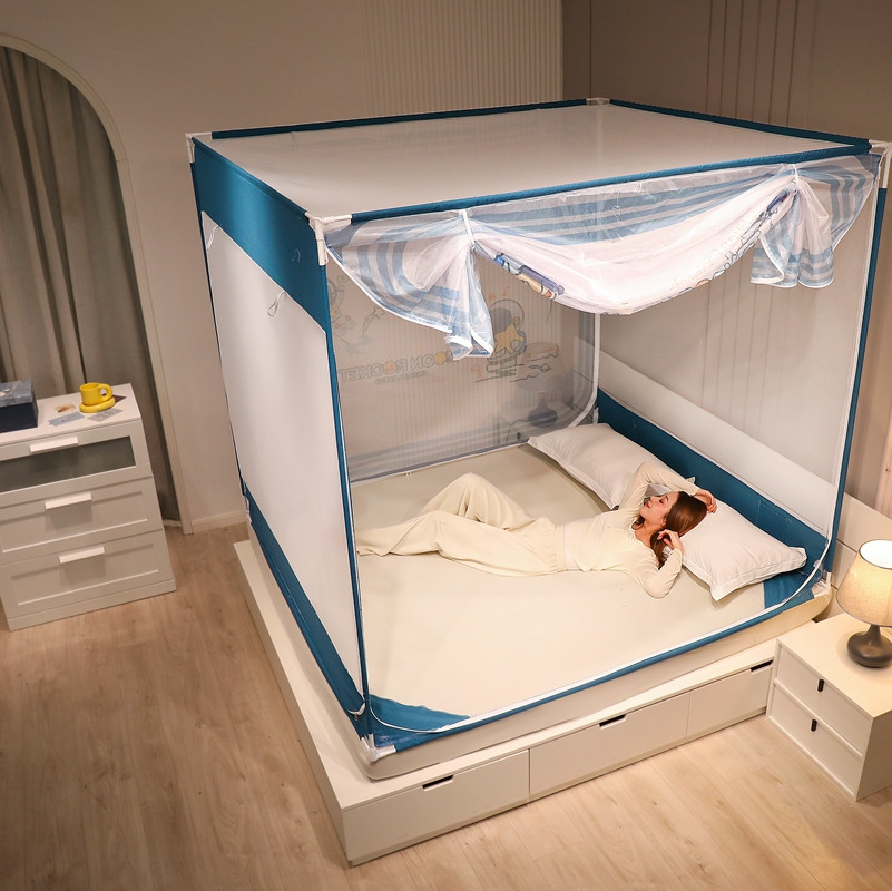 (总)卓尔居 2025新款坐床保暖罩夹棉一体式保暖蚊帐,夹棉蚊帐,冬季蚊帐,黄色,蓝灰,浅蓝,深绿,枣红