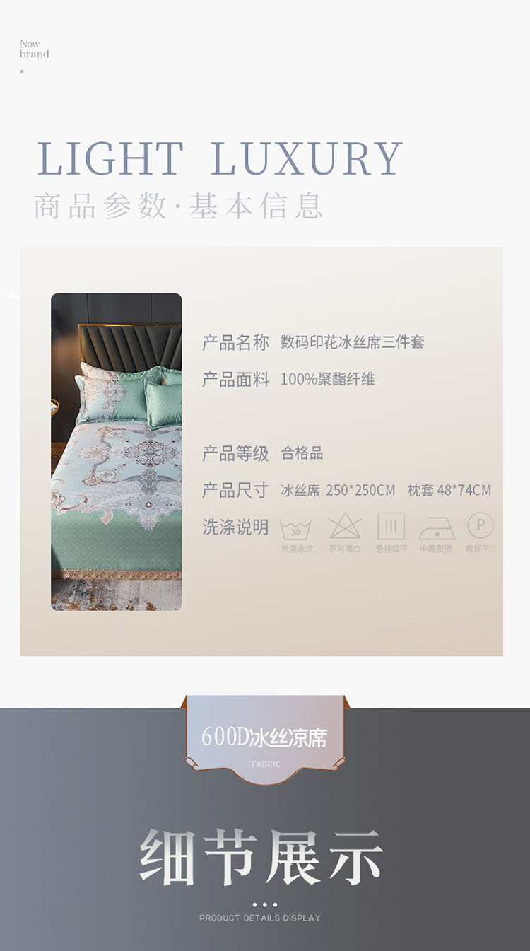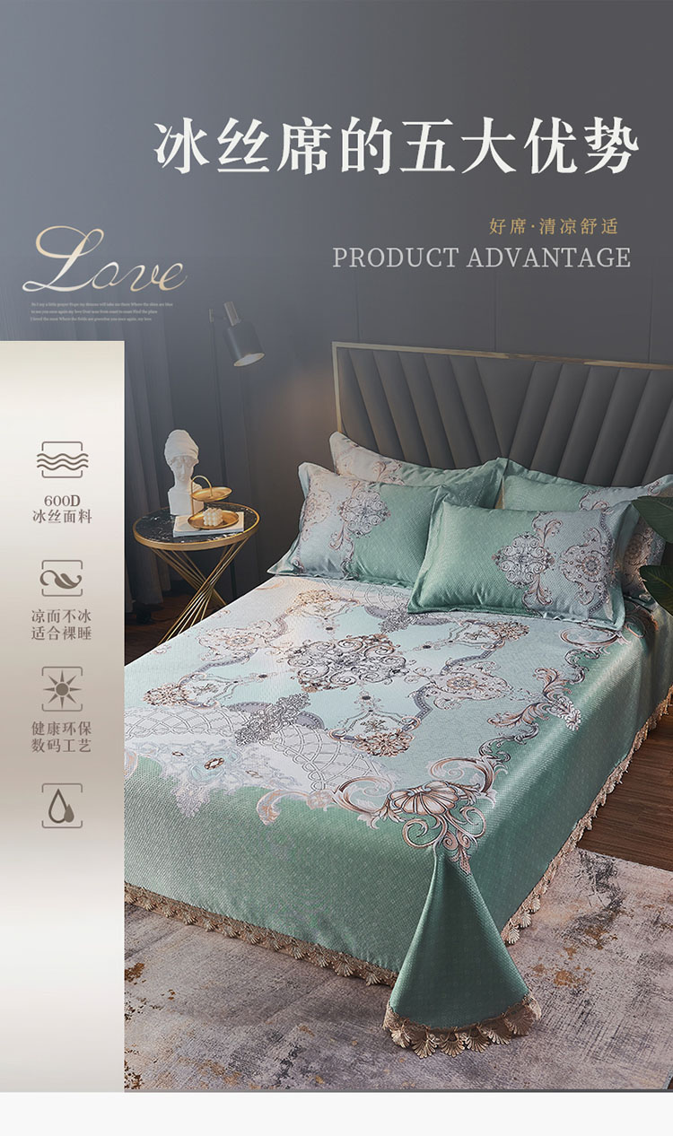商品名称:其奥 2025数码大版冰丝席三件套凉席空调席软席 欧式风情