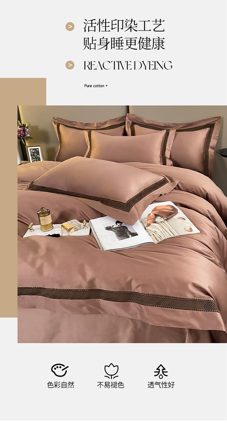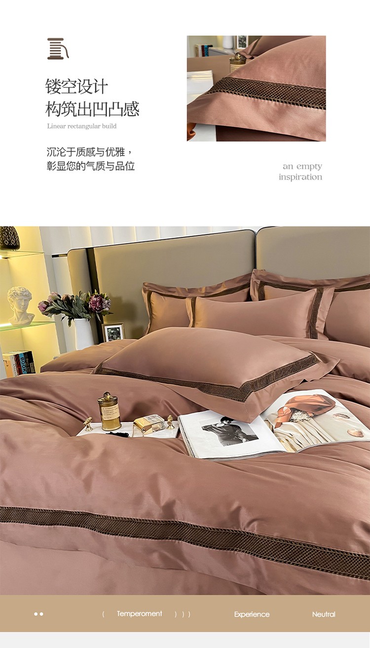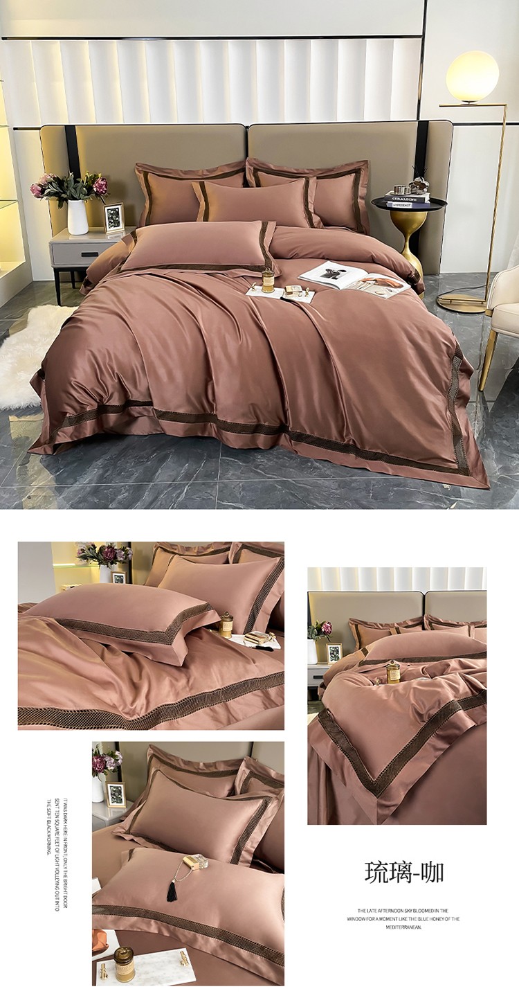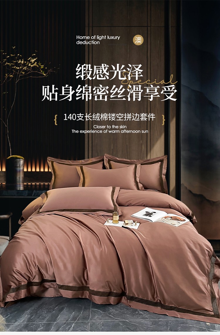 商品名称:帅露家纺 2022新款140s镂空拼边四件套 琉璃-咖