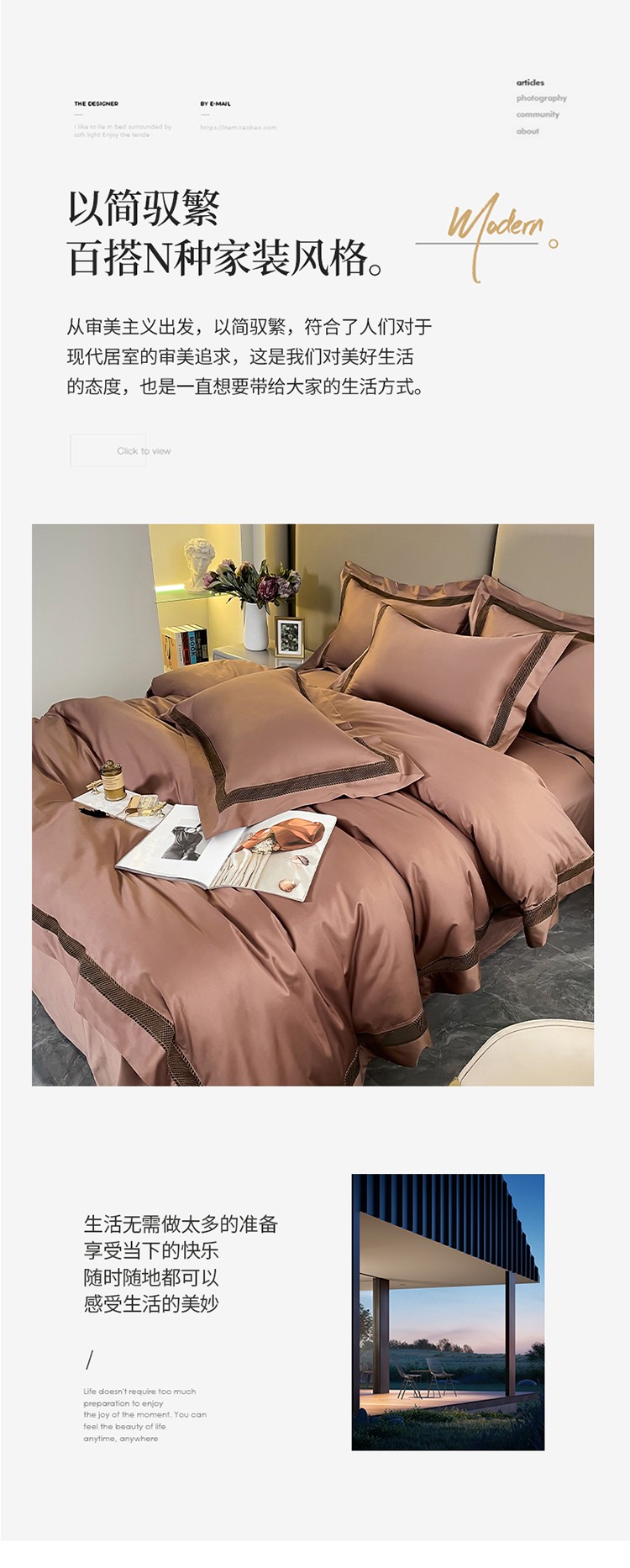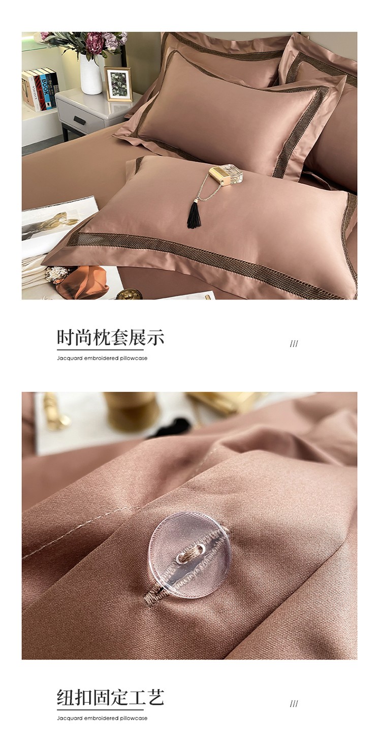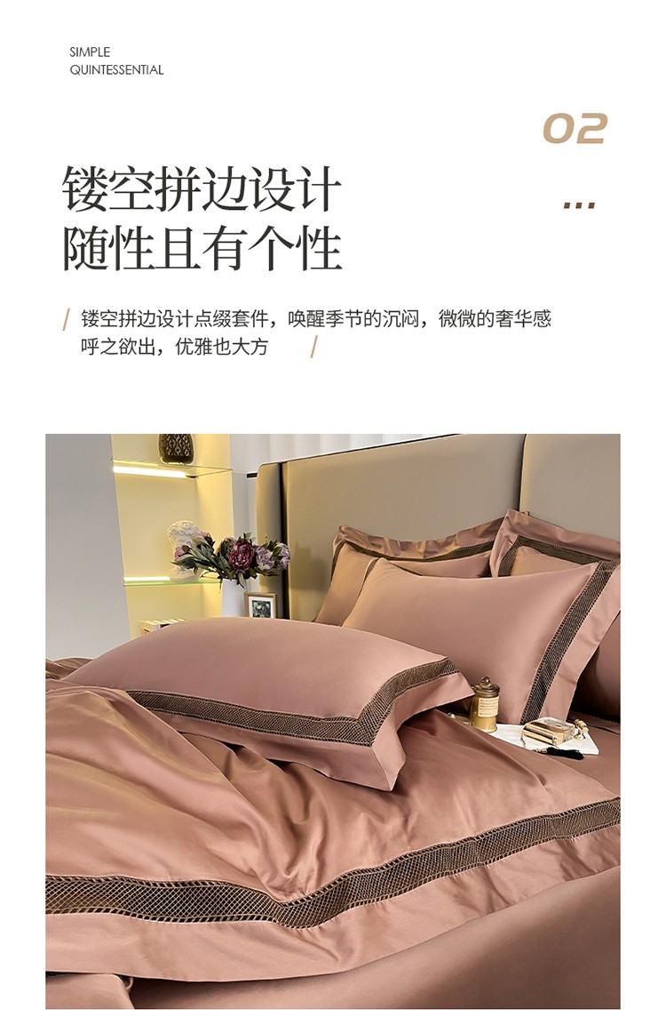 商品名称:帅露家纺 2022新款140s镂空拼边四件套 琉璃-咖
