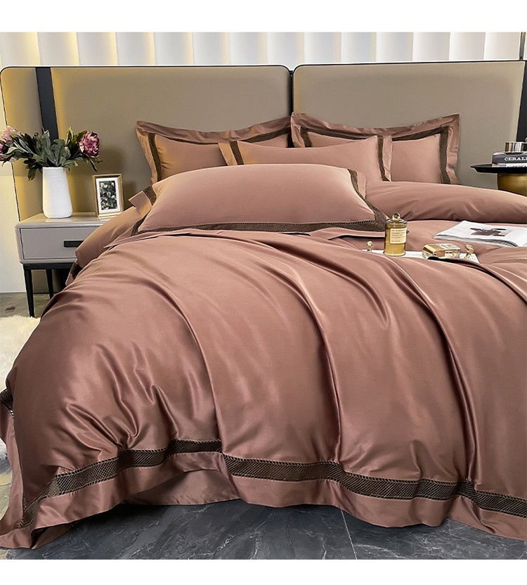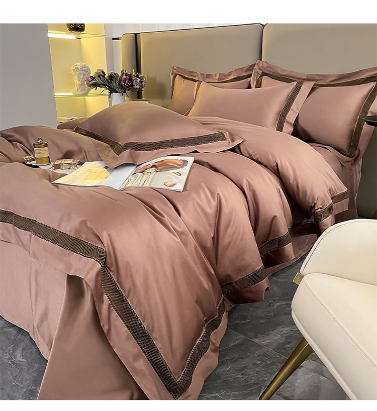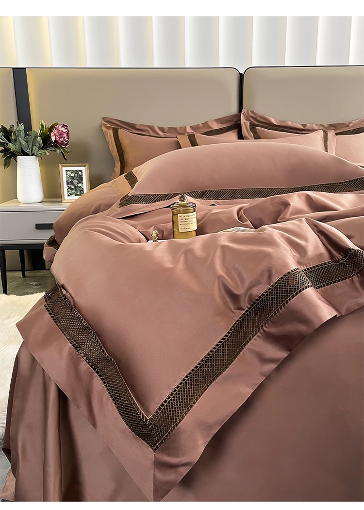 帅露家纺 2022新款140s镂空拼边四件套 琉璃-咖