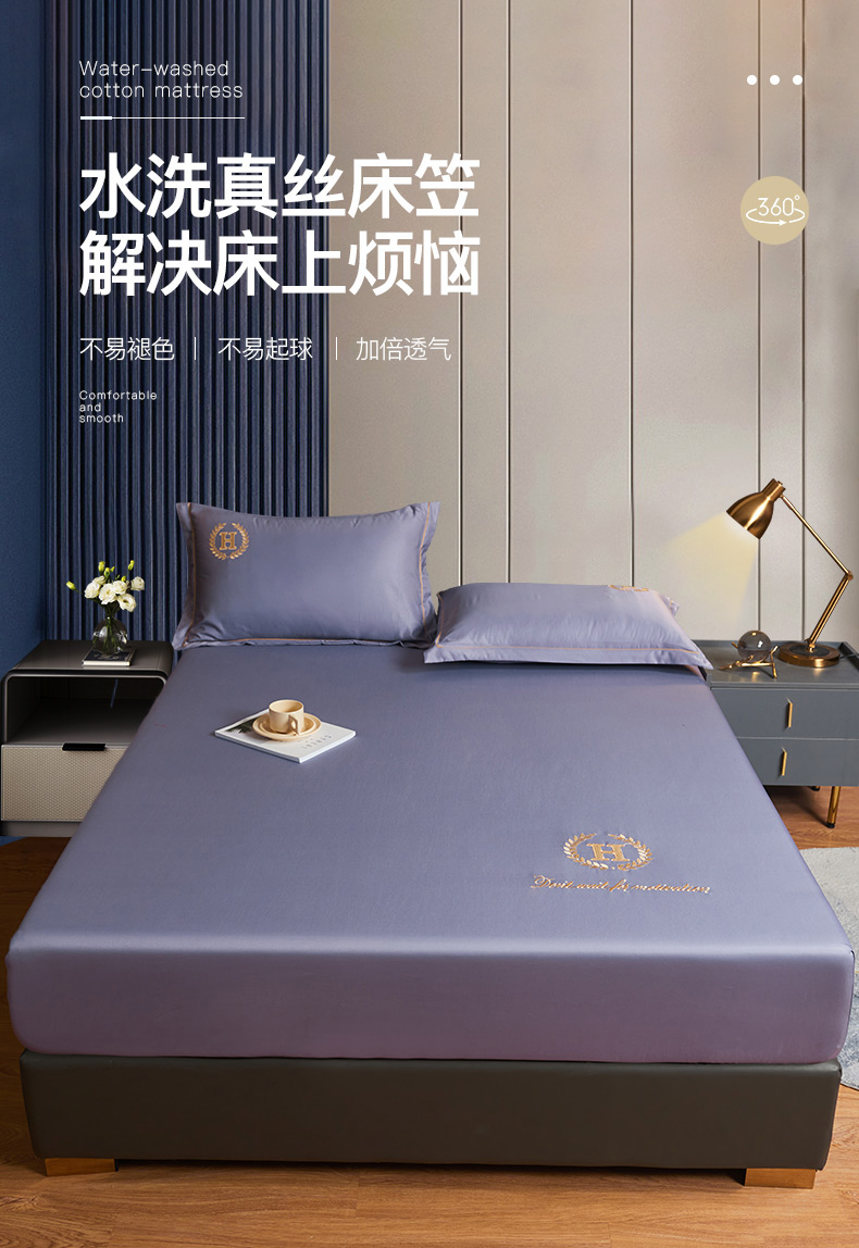 商品名称:冰丝床笠单件可水洗夏天床罩防尘罩轻奢床套罩床垫套罩全包三件套