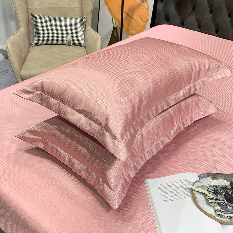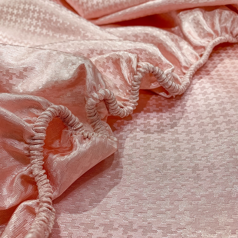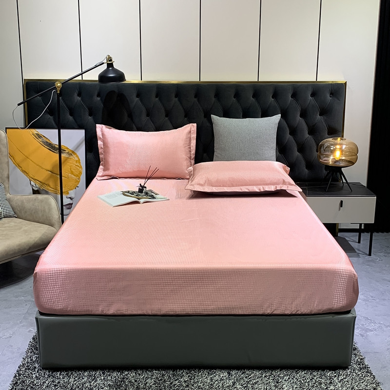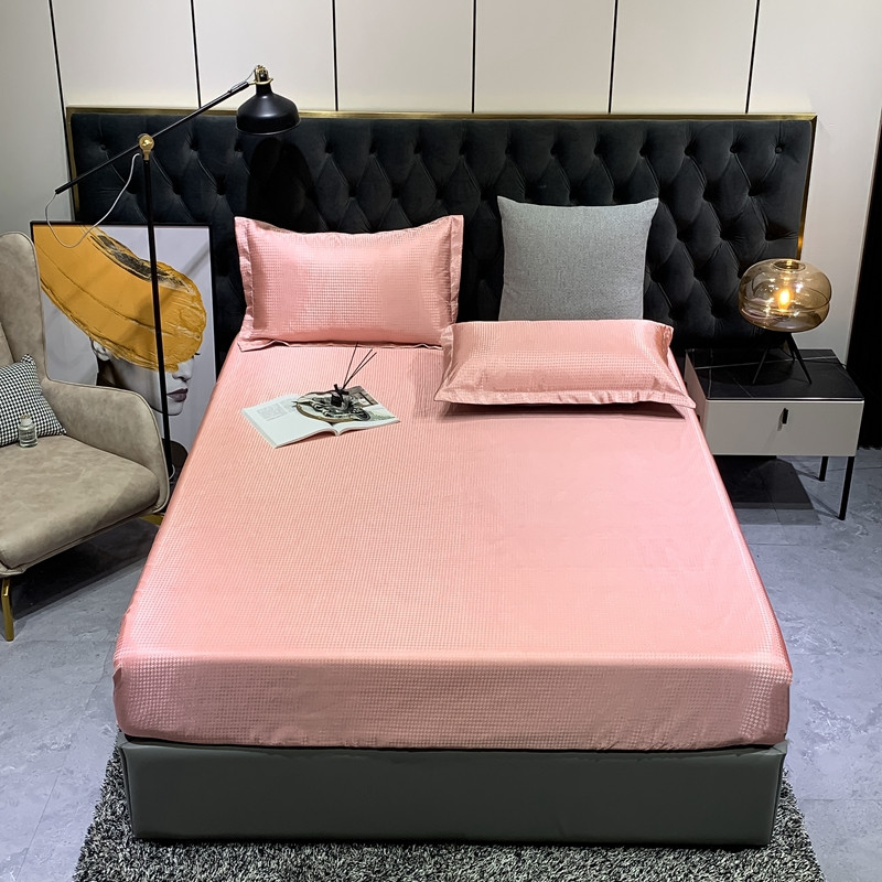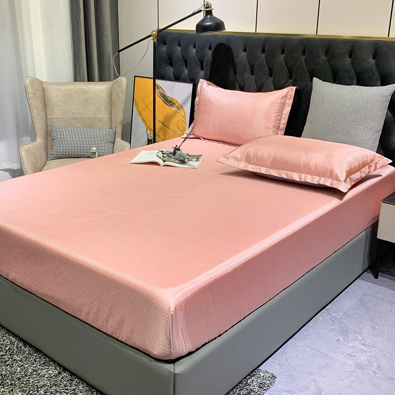 商品名称:春寻 2022新款千鸟格床笠款凉席三件套 千鸟格-粉豆沙