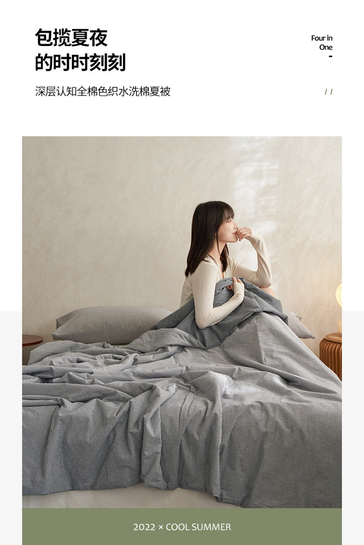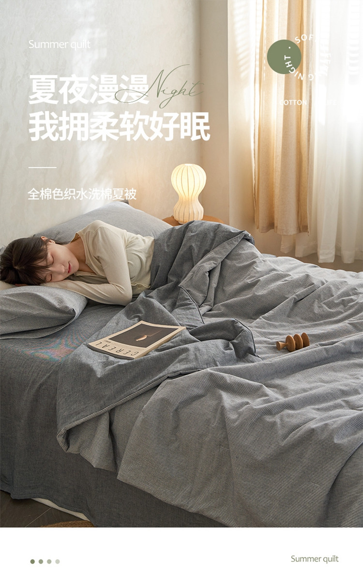 商品名称:风向标家纺 2022新款全棉色织水洗棉夏被 色织-绅蓝