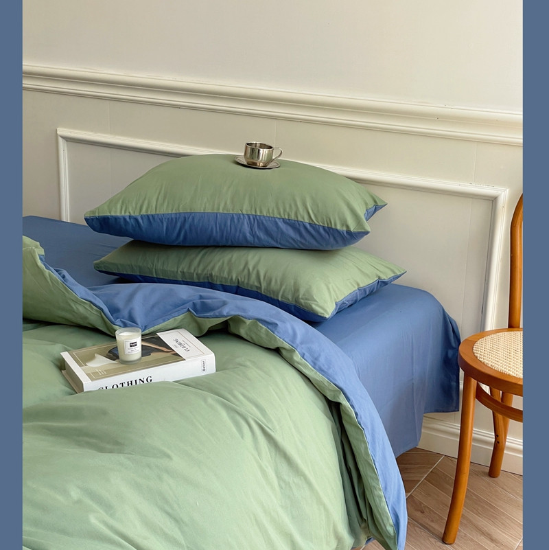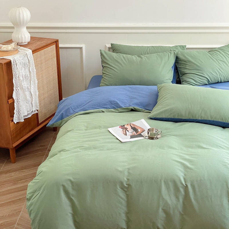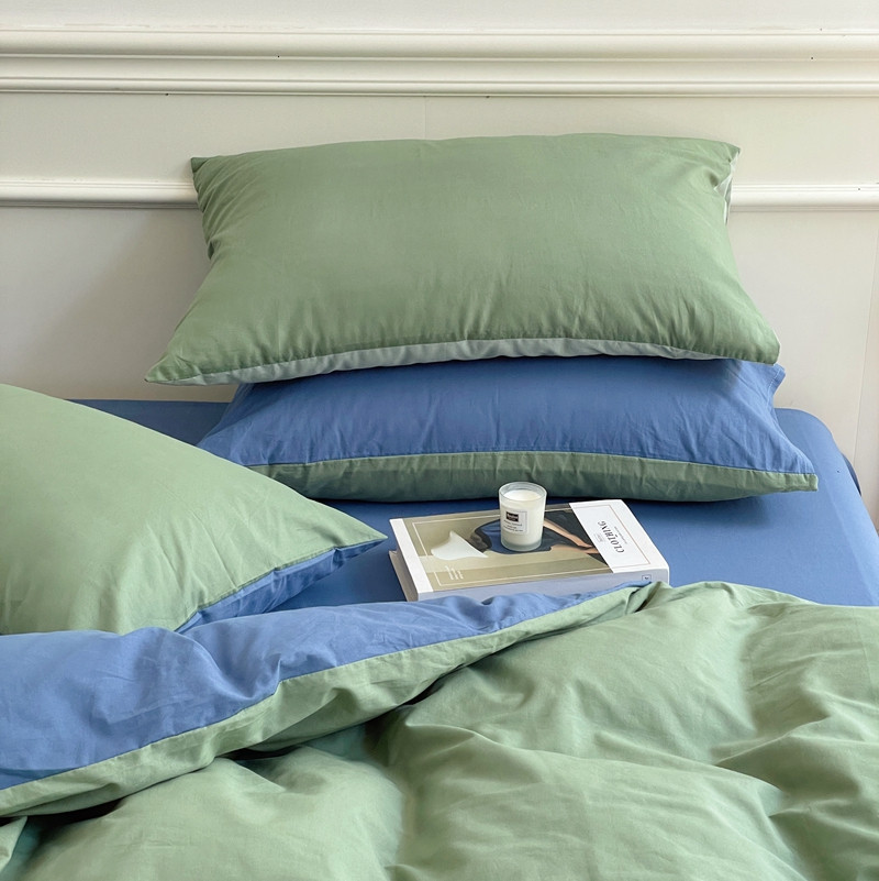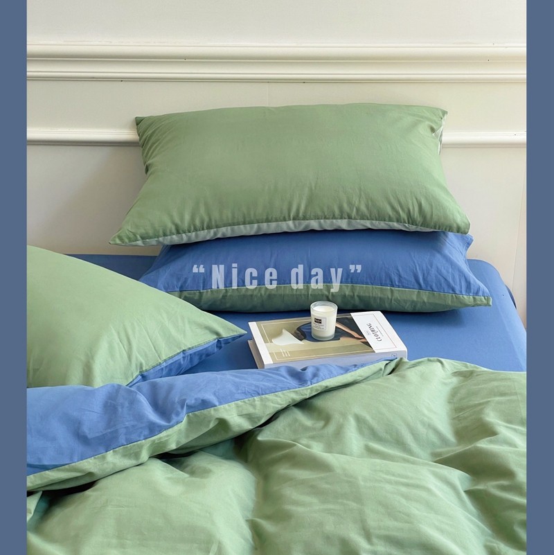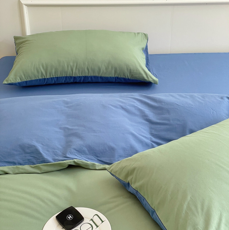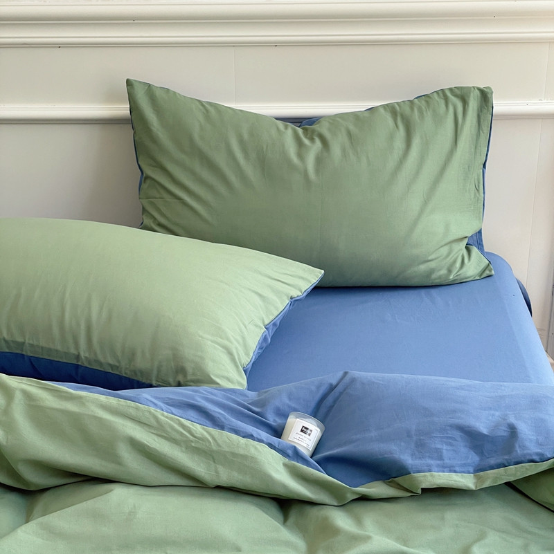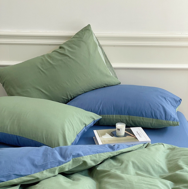 当前位置: 91家纺网 > 商品网购 > 床品套件 > 四件套 > 水洗棉四件套 > 窝米 2022夏季新品素色双拼水洗棉四件套 绿云双拼