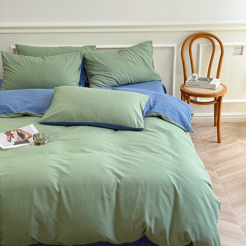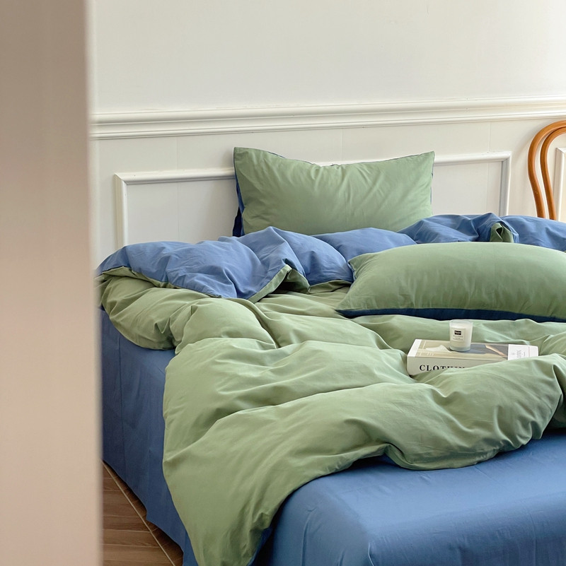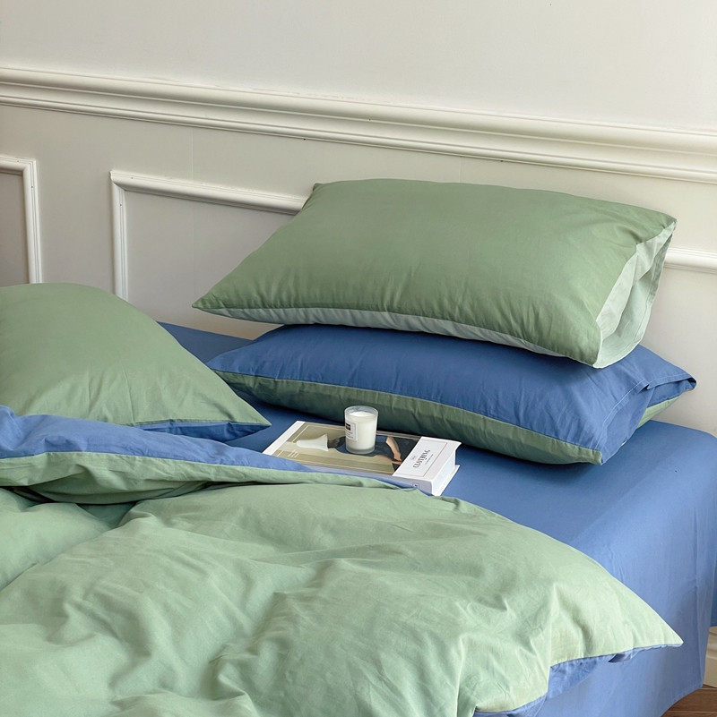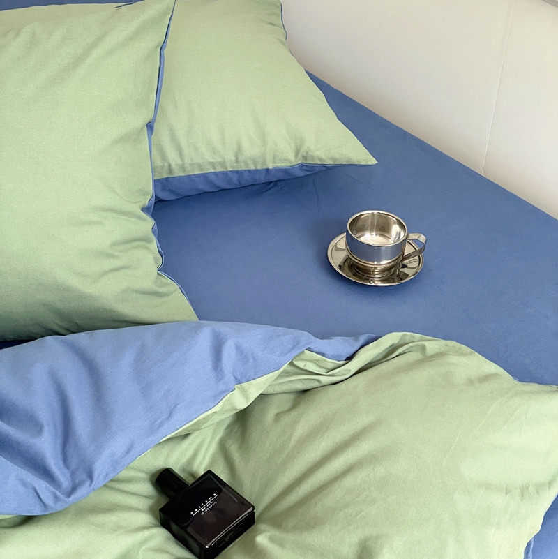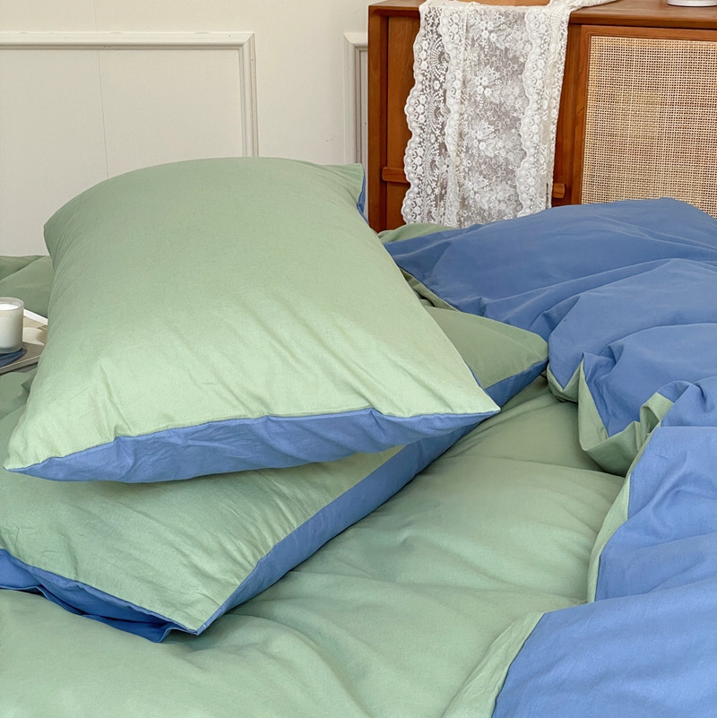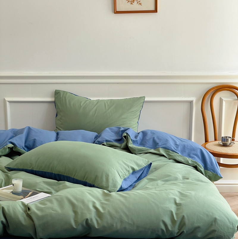 当前位置: 91家纺网 > 商品网购 > 床品套件 > 四件套 > 水洗棉四件套 > 窝米 2022夏季新品素色双拼水洗棉四件套 绿云双拼