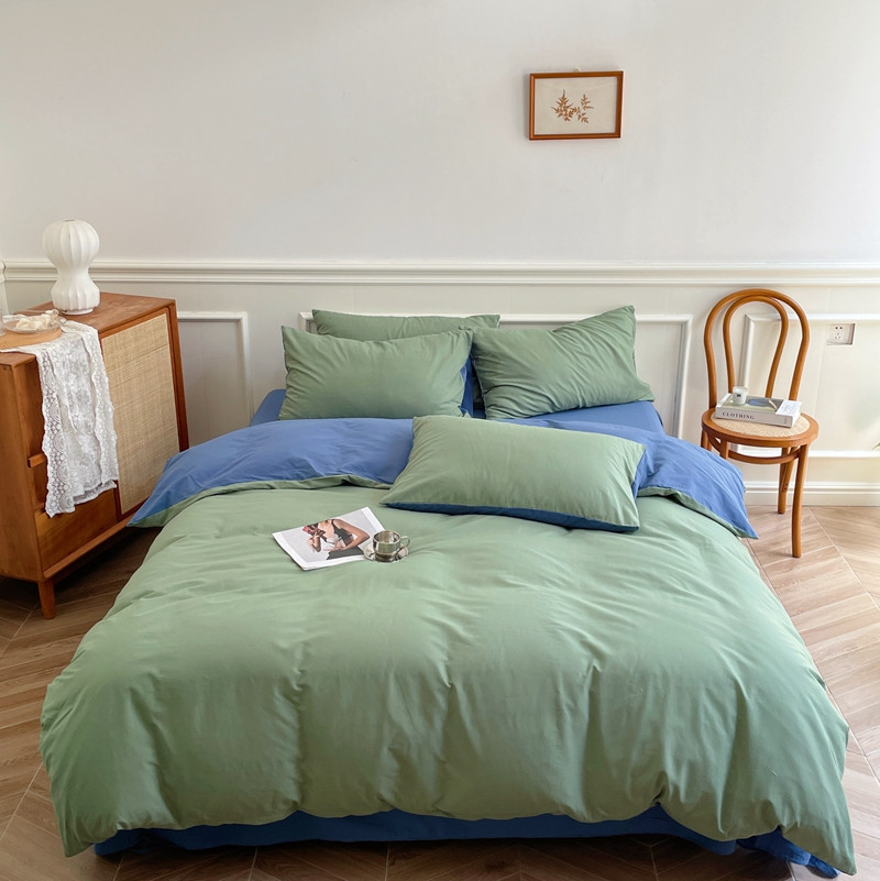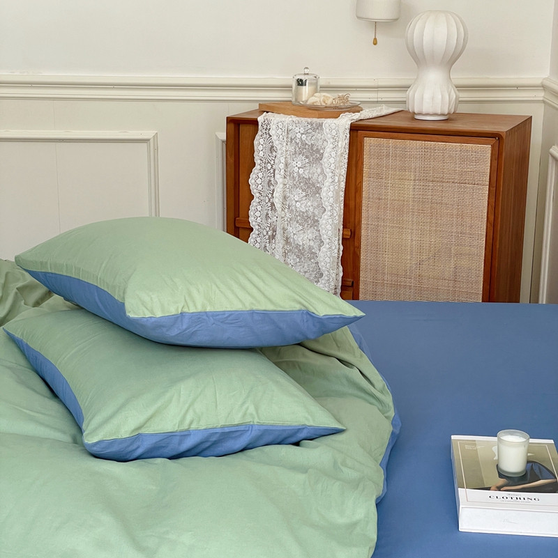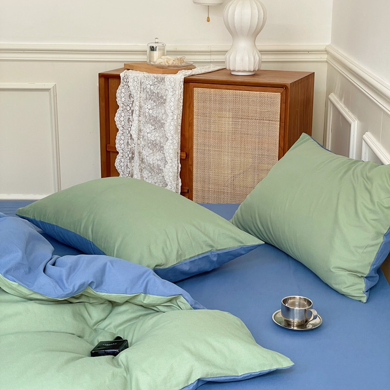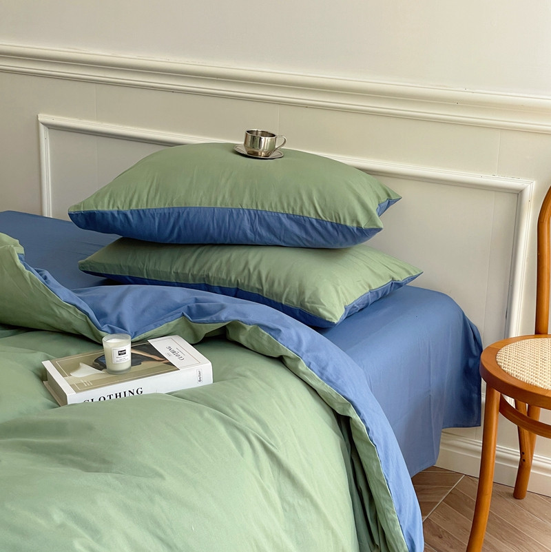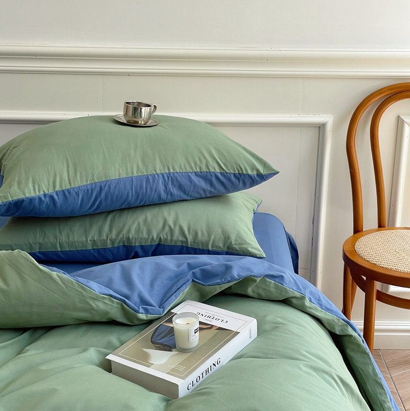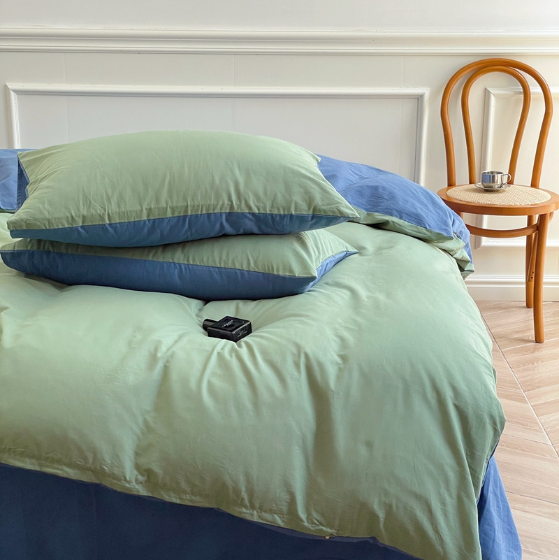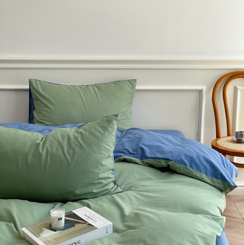 当前位置: 91家纺网 > 商品网购 > 床品套件 > 四件套 > 水洗棉四件套 > 窝米 2022夏季新品素色双拼水洗棉四件套 绿云双拼