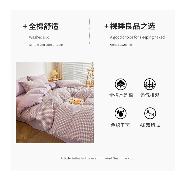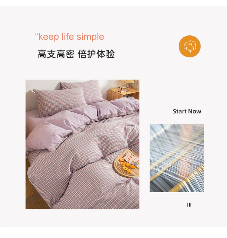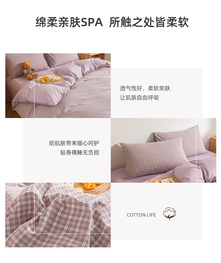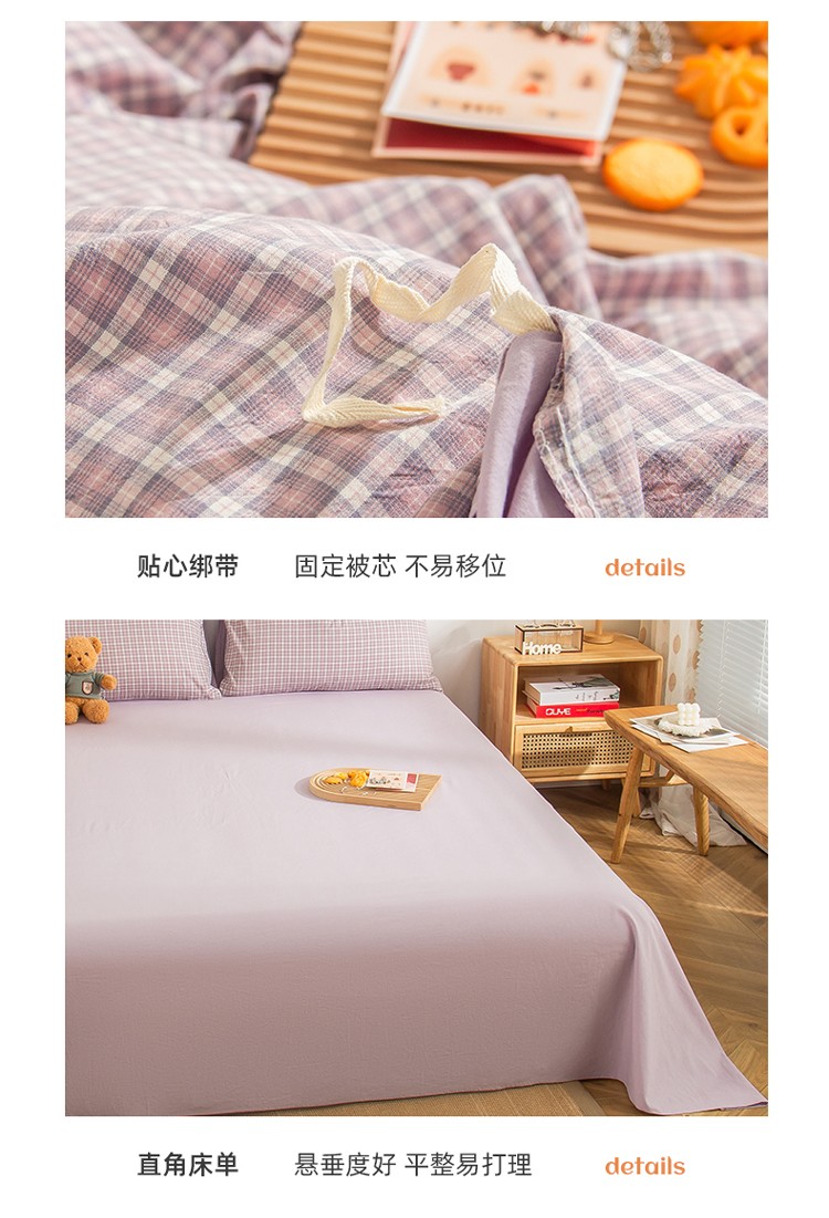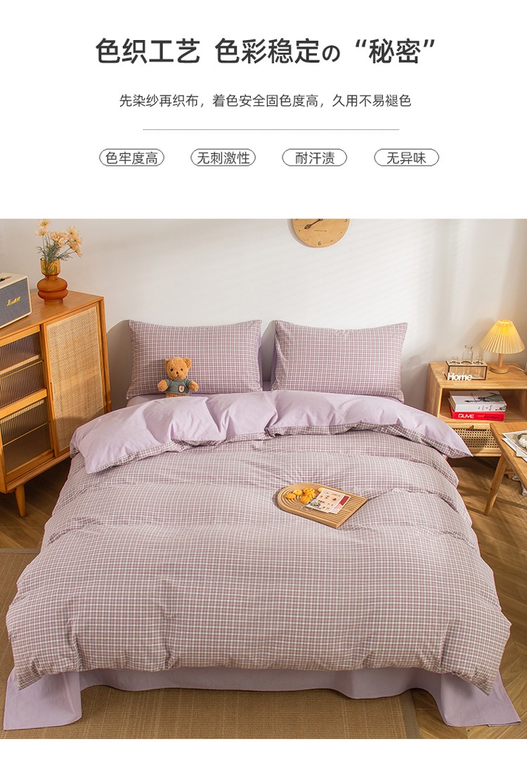 当前位置: 91家纺网 > 商品网购 > 床品套件 > 四件套 > 水洗棉四件套 > 柠萌家居 2022新A类全棉色织水洗棉无印风格四件套 半夏紫