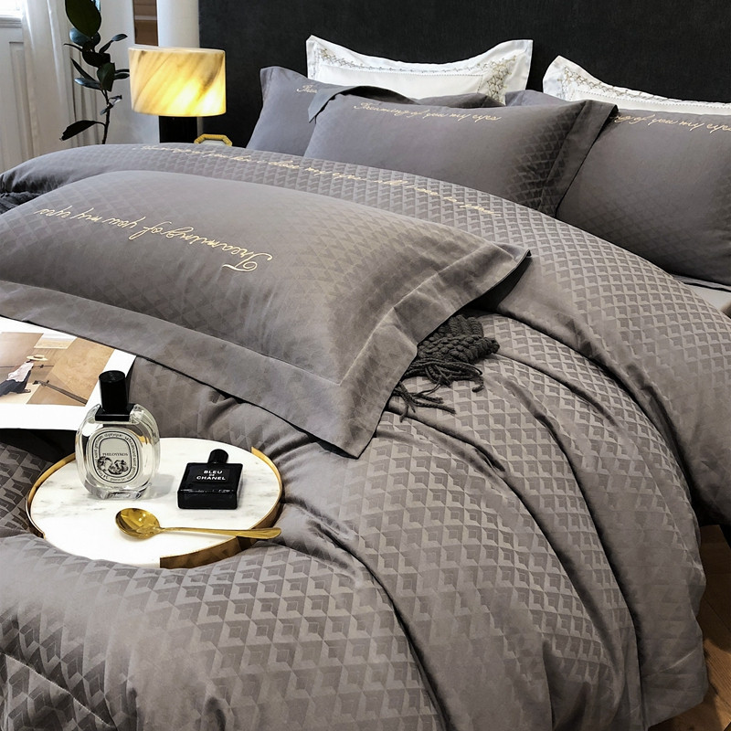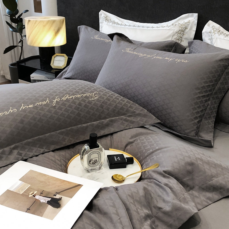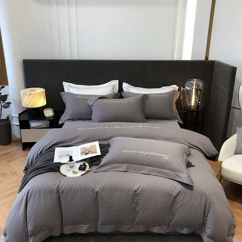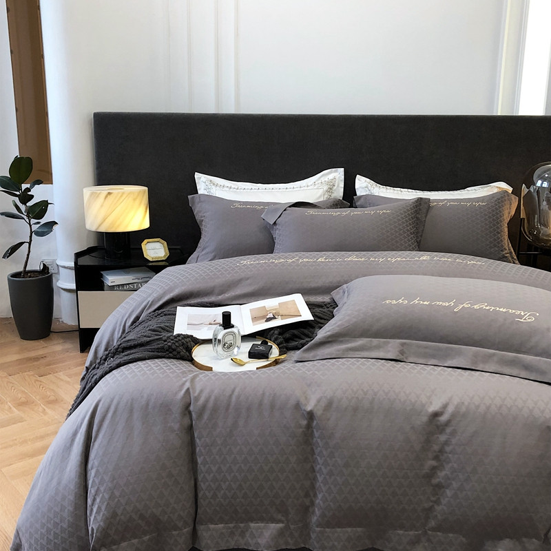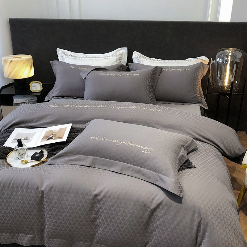 玖玖爱家纺 2022新款120支贡缎磨毛水洗提花四件套 素简高级灰