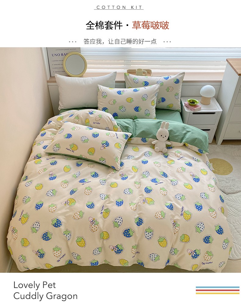 麦伦 2022新款13372全棉儿童卡通系列四件套 草莓啵啵
