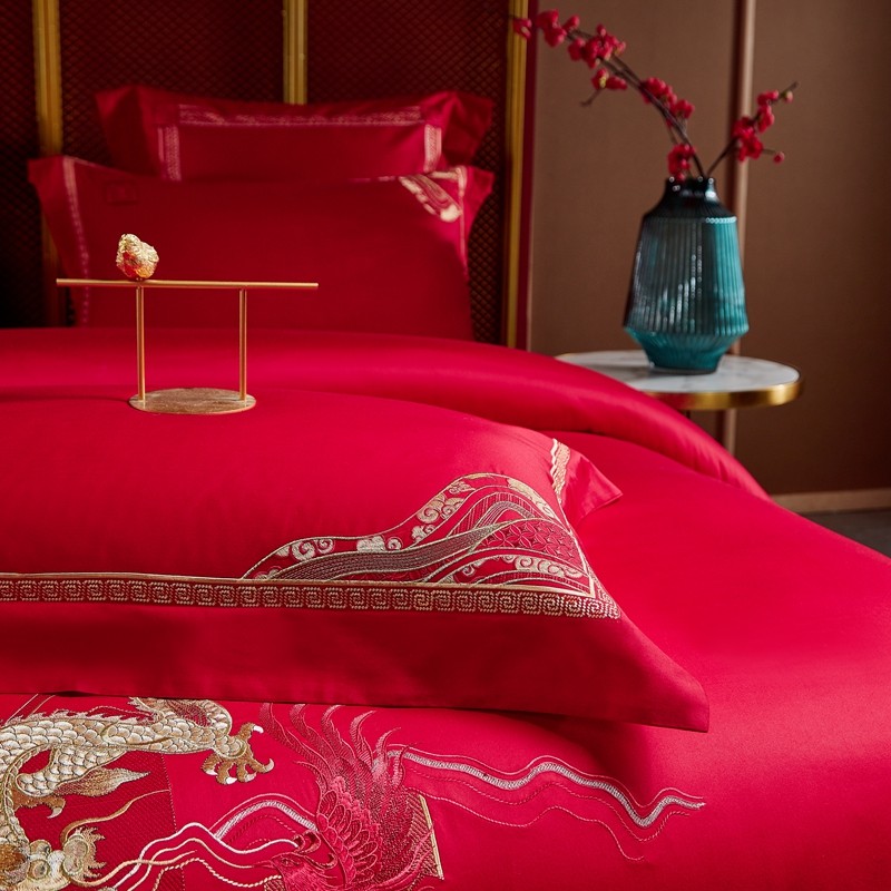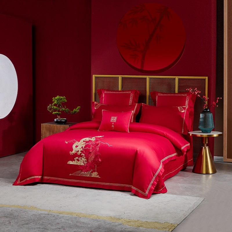 当前位置: 91家纺网 > 商品网购 > 床品套件 > 四件套 > 婚庆四件套 > 总高大尚2022新款40s全工艺喷气纯棉婚庆多件套-恩恩爱爱