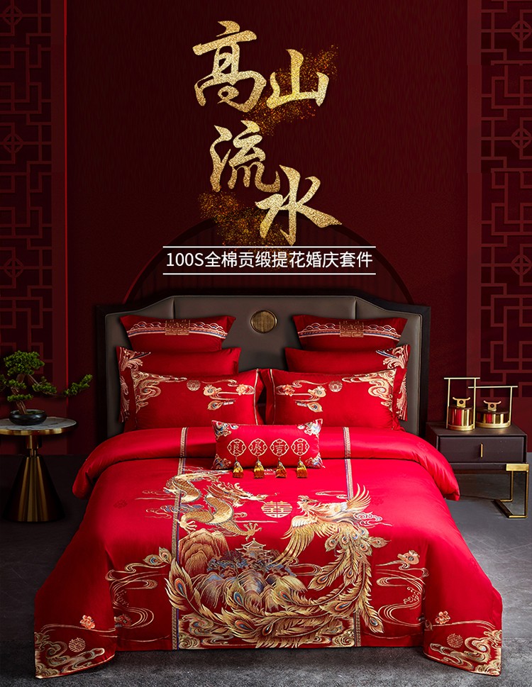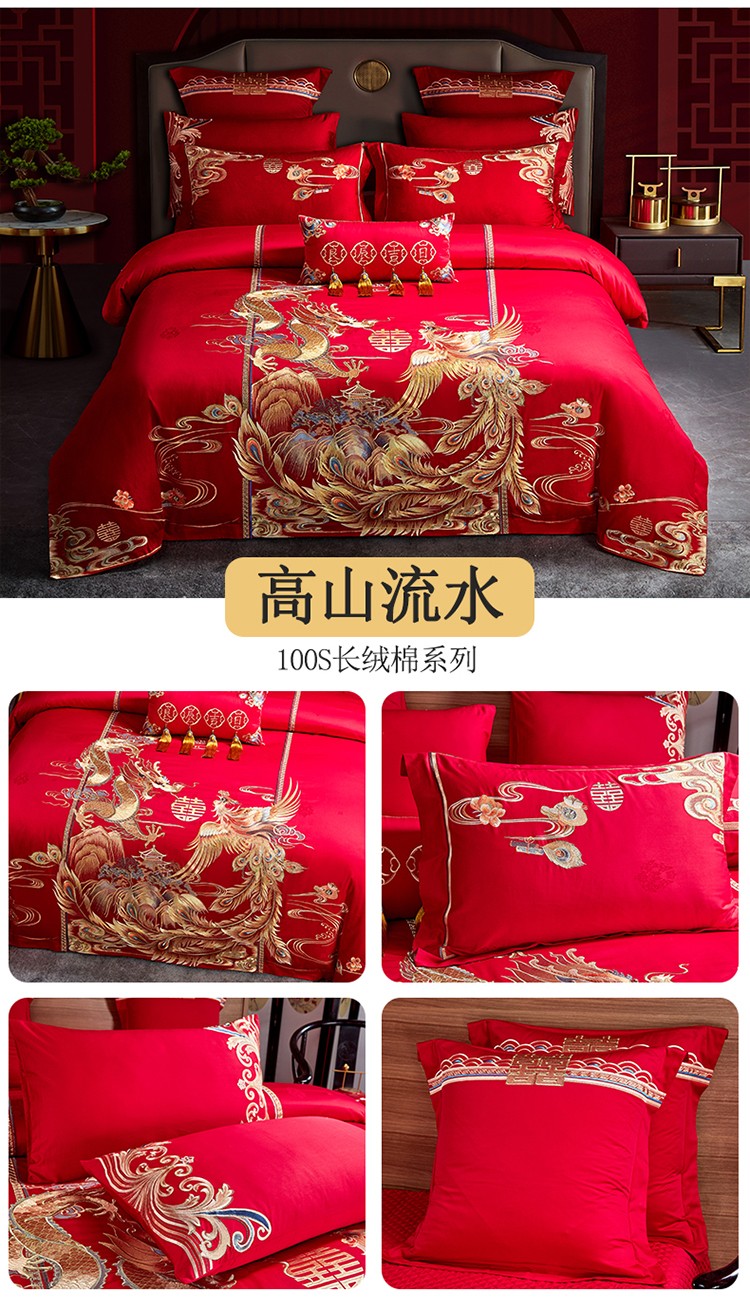 当前位置: 91家纺网 > 商品网购 > 床品套件 > 四件套 > 婚庆四件套 > 2022新款高支高密长绒棉婚庆套件 高山流水