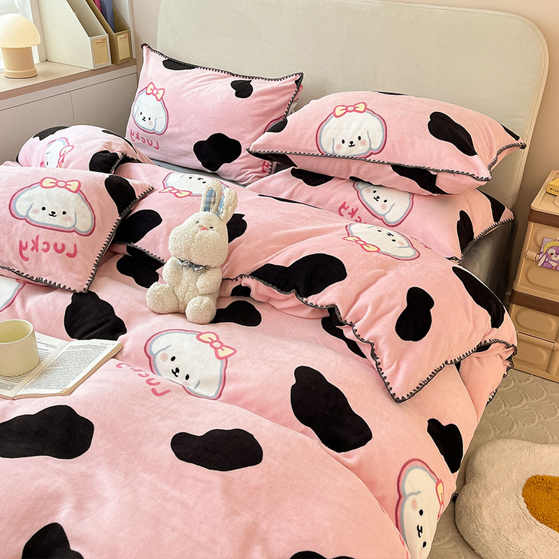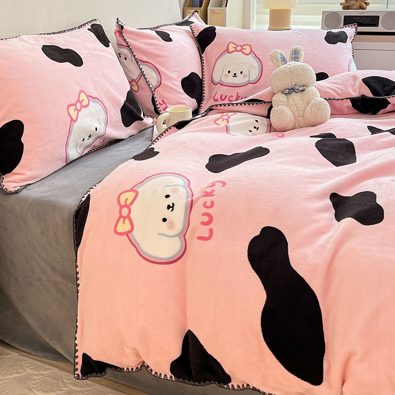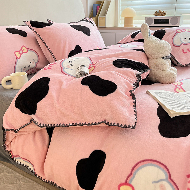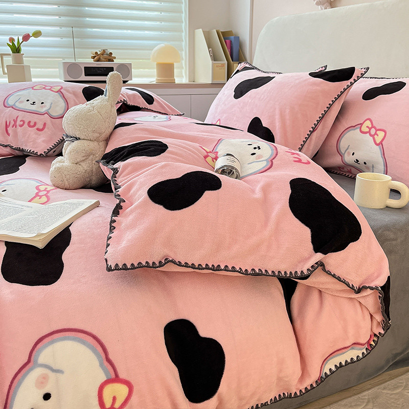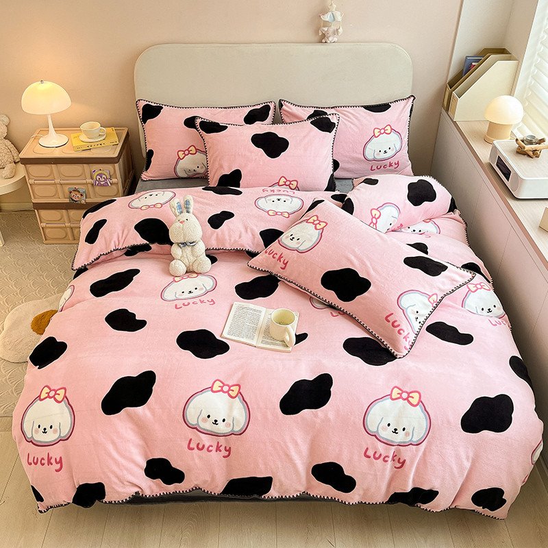 当前位置: 91家纺网 > 商品网购 > 床品套件 > 四件套 > 牛奶绒四件套 > 安哆啦 新款贝壳边工艺牛奶绒珊瑚绒四件套单被套 豹纹小萌狗