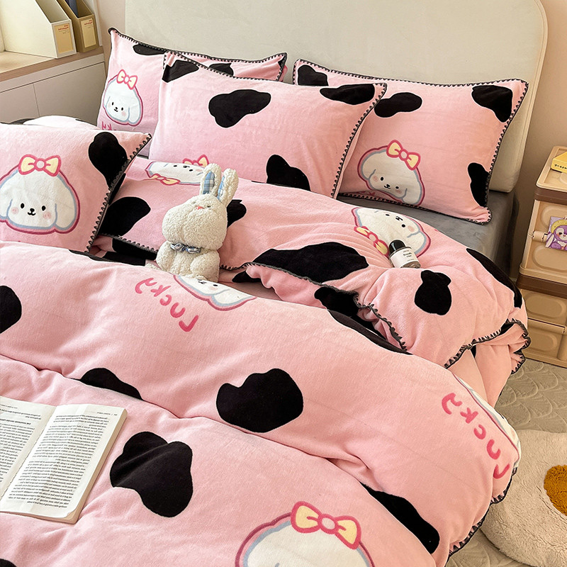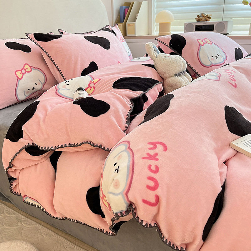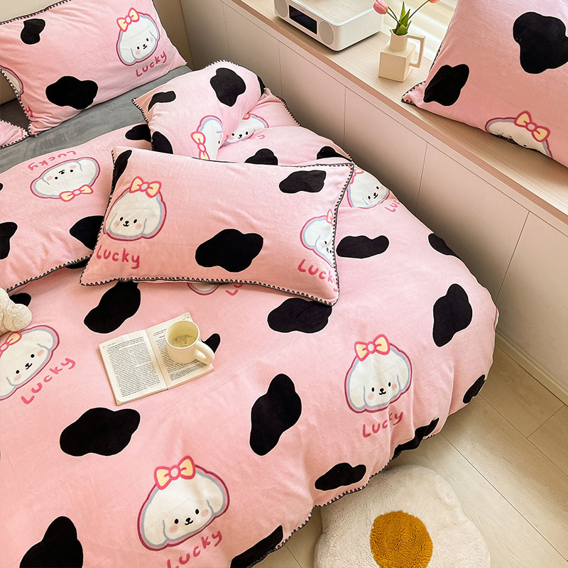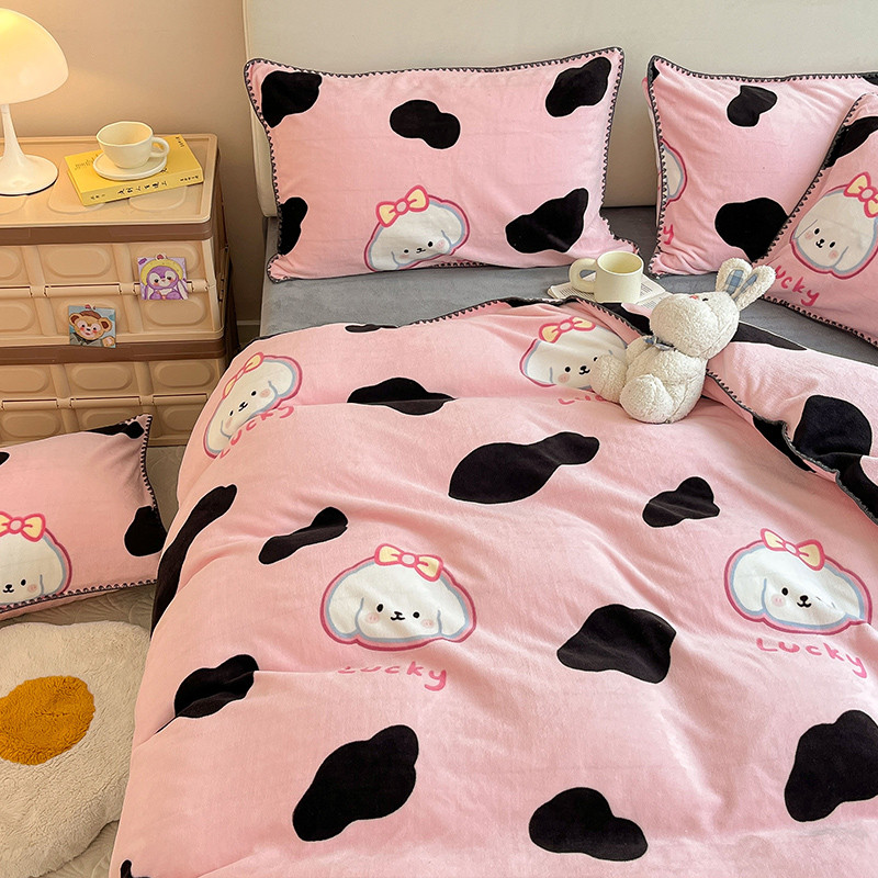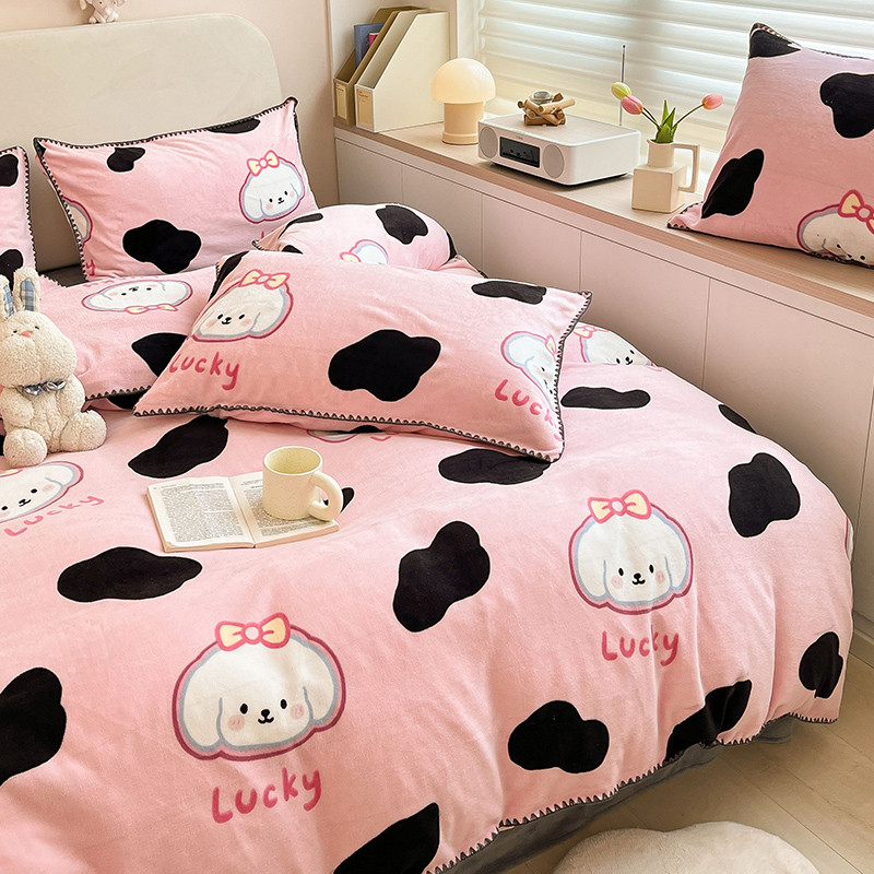 当前位置: 91家纺网 > 商品网购 > 床品套件 > 四件套 > 牛奶绒四件套 > 安哆啦 新款贝壳边工艺牛奶绒珊瑚绒四件套单被套 豹纹小萌狗