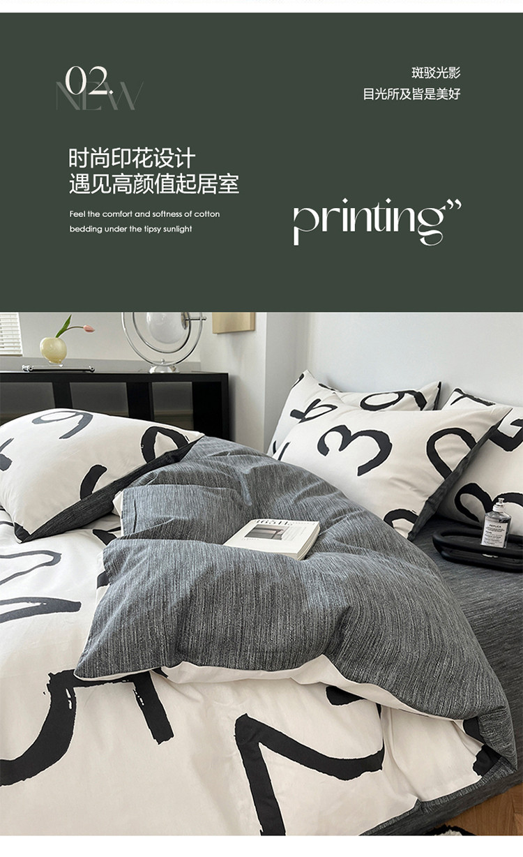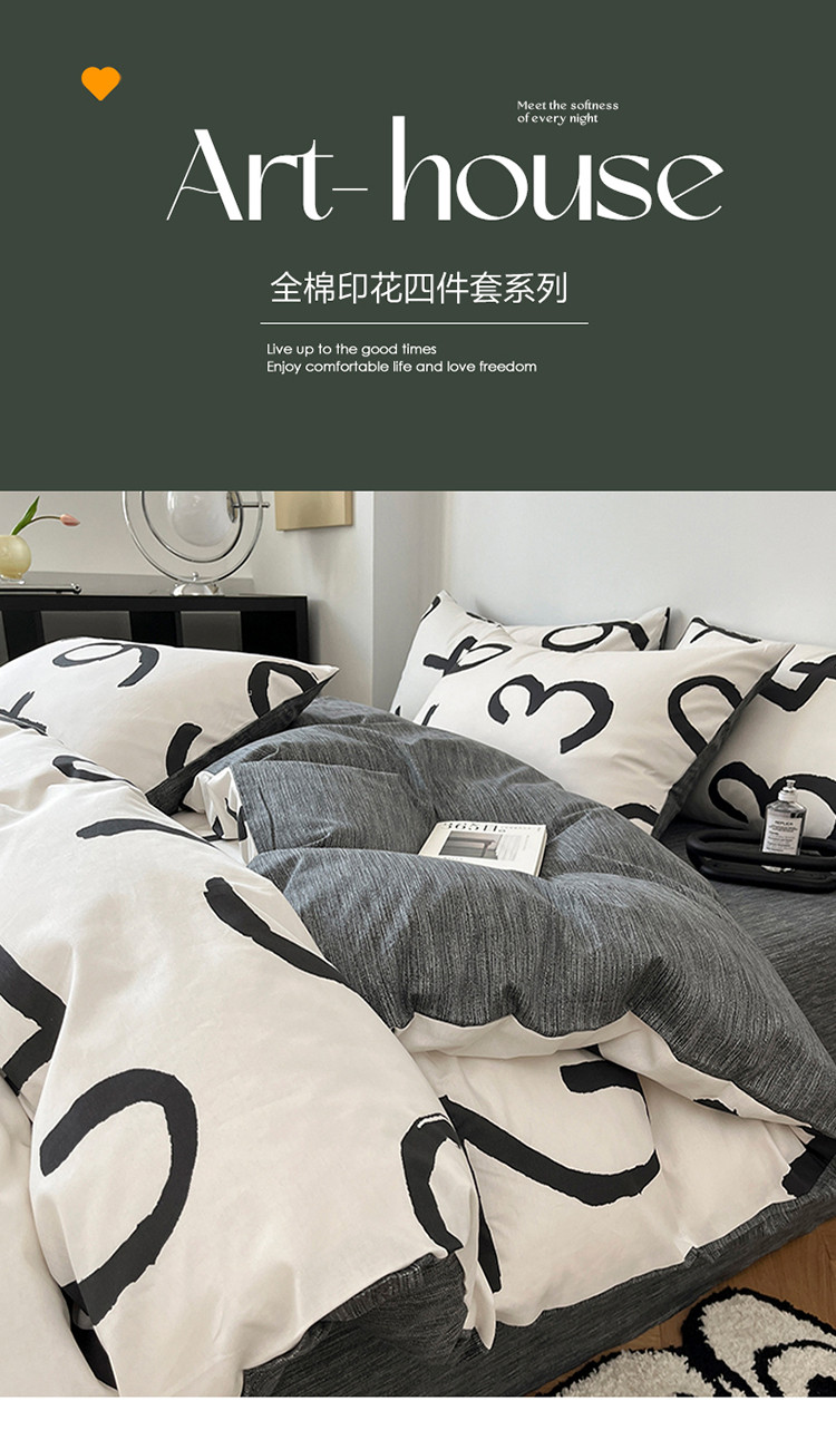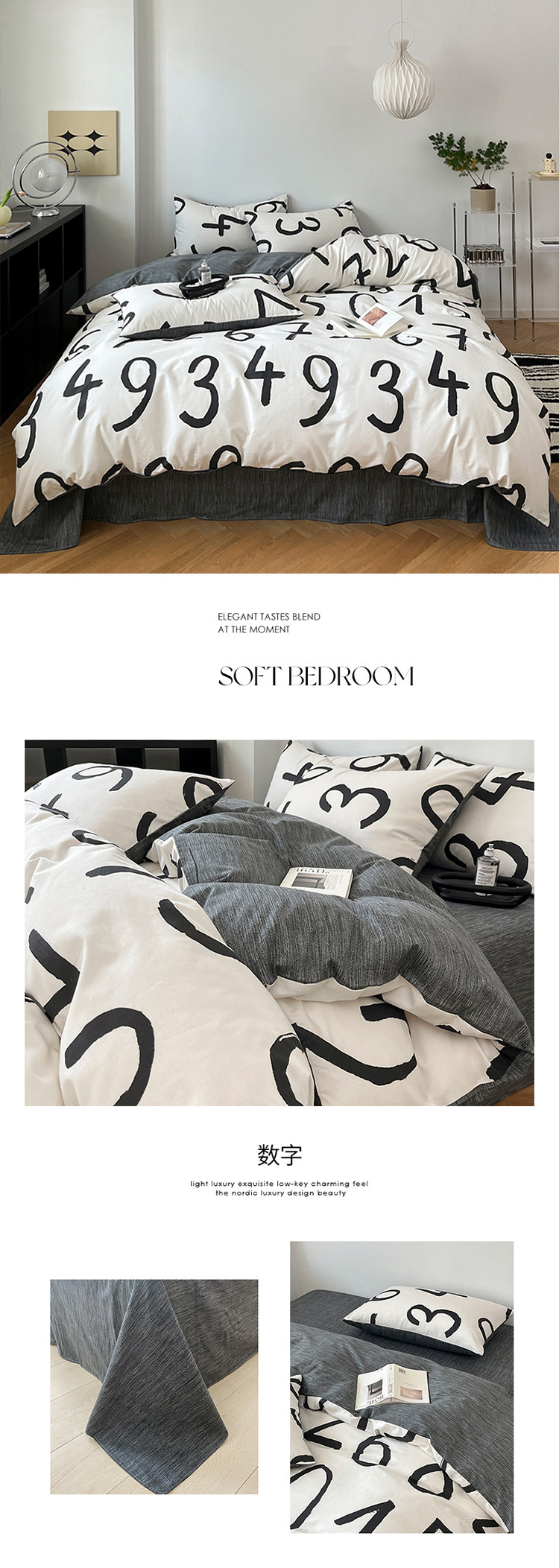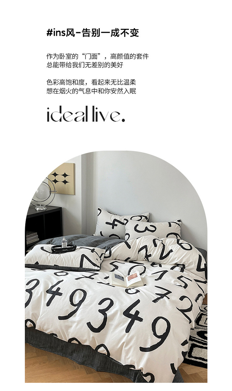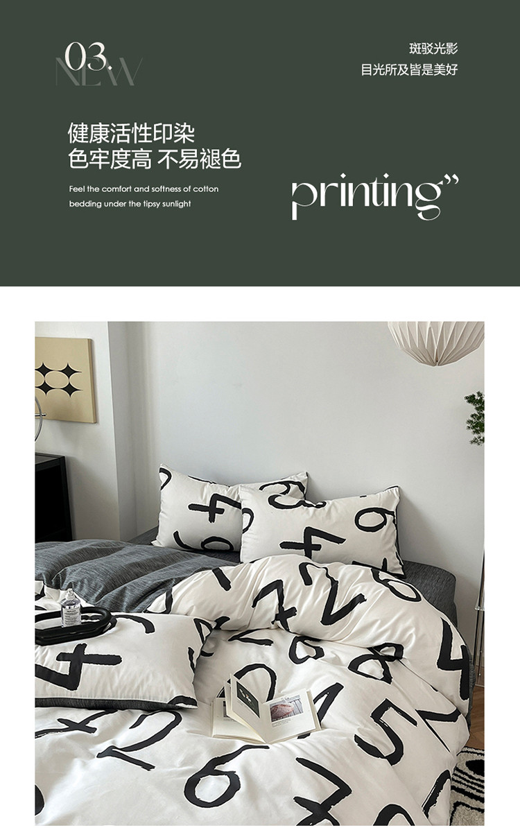 雅居纺家纺 2022新款13070全棉印花四件套 数字