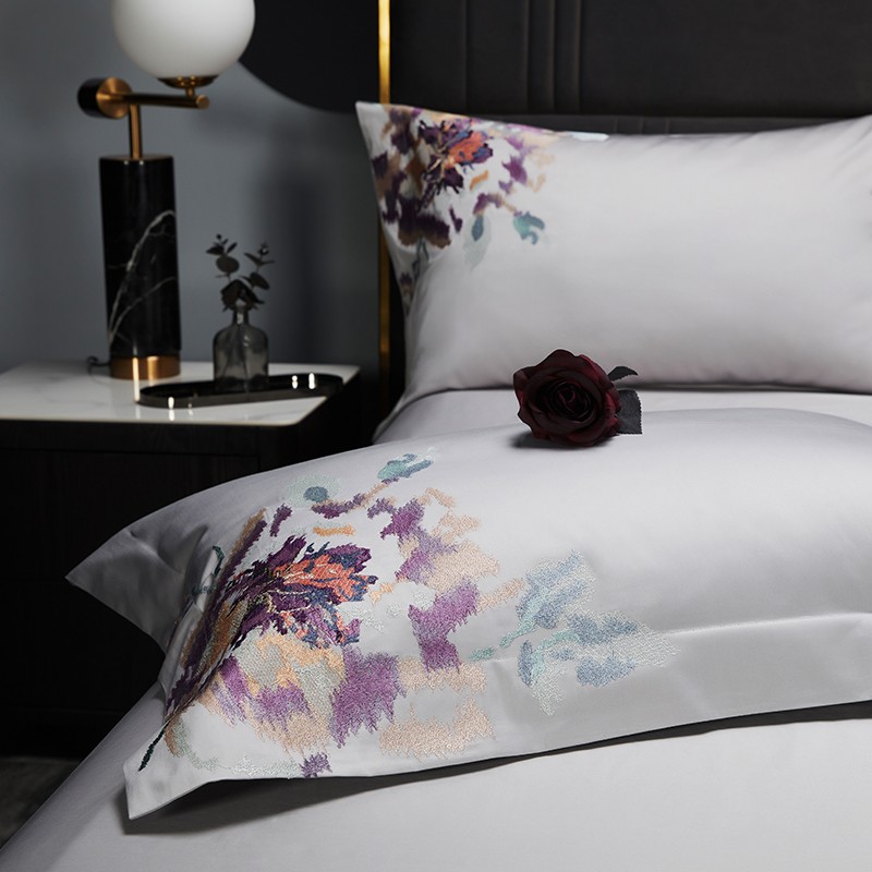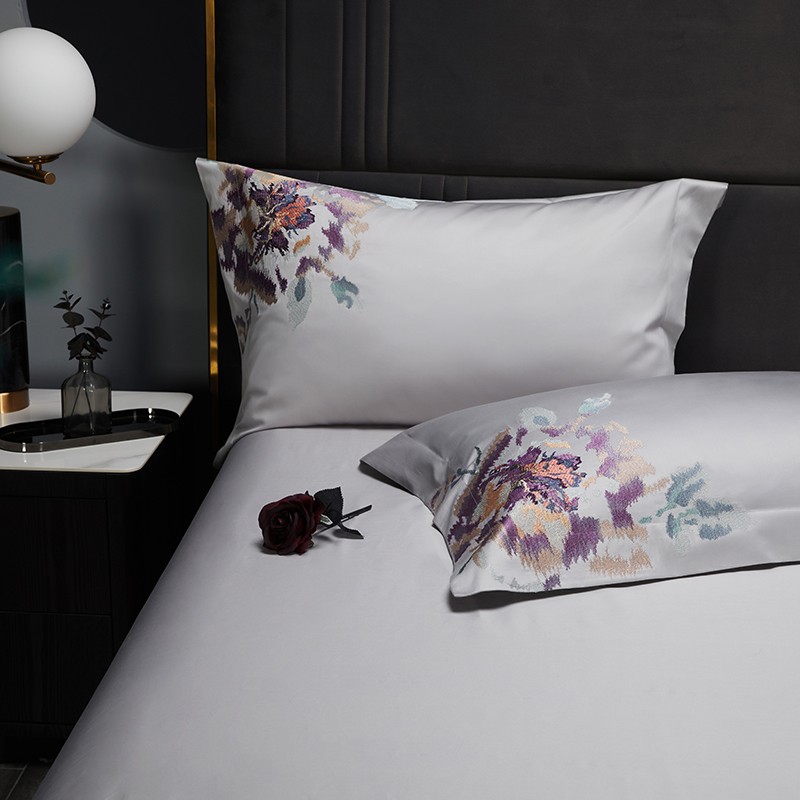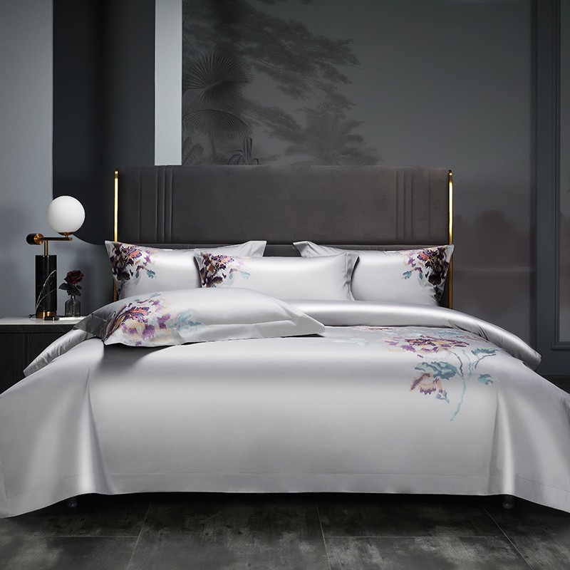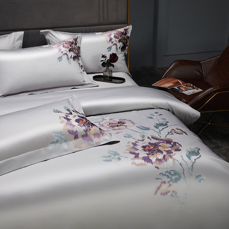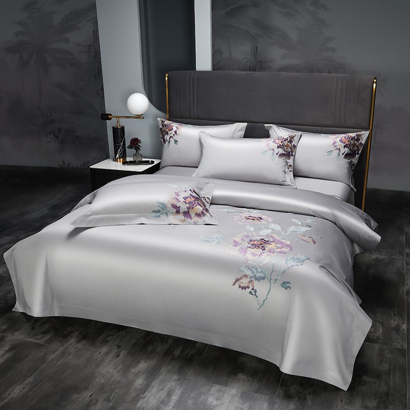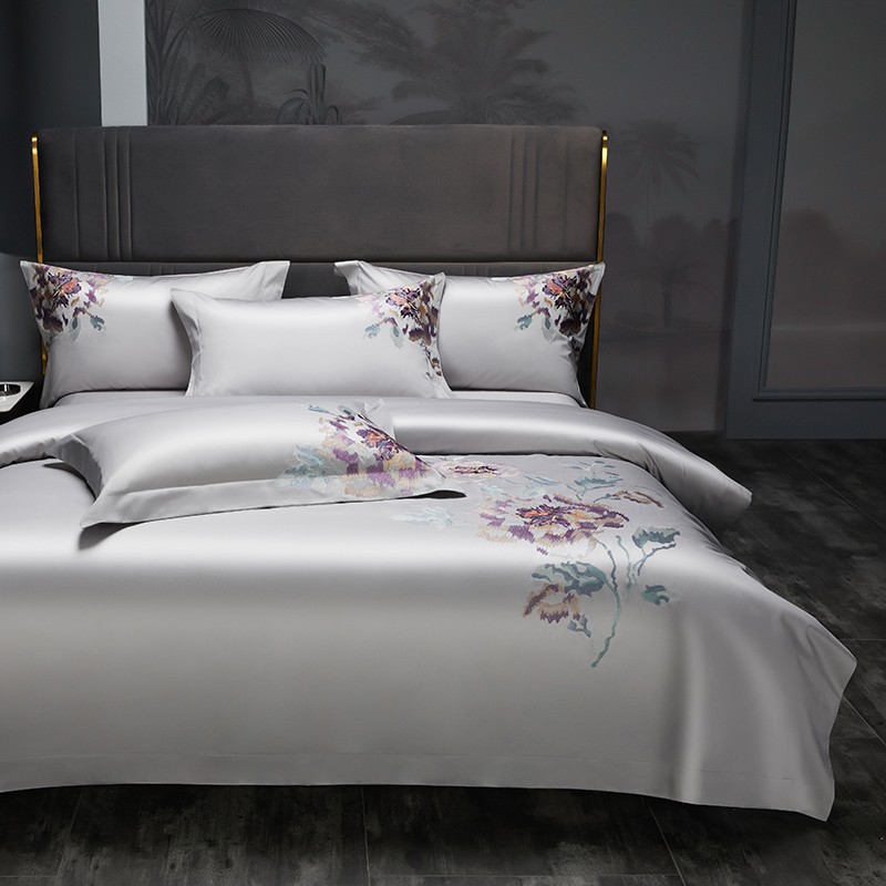缔缦 2022新款100s澳棉全工艺秋冬居家四件套-花影伊人 高级灰
